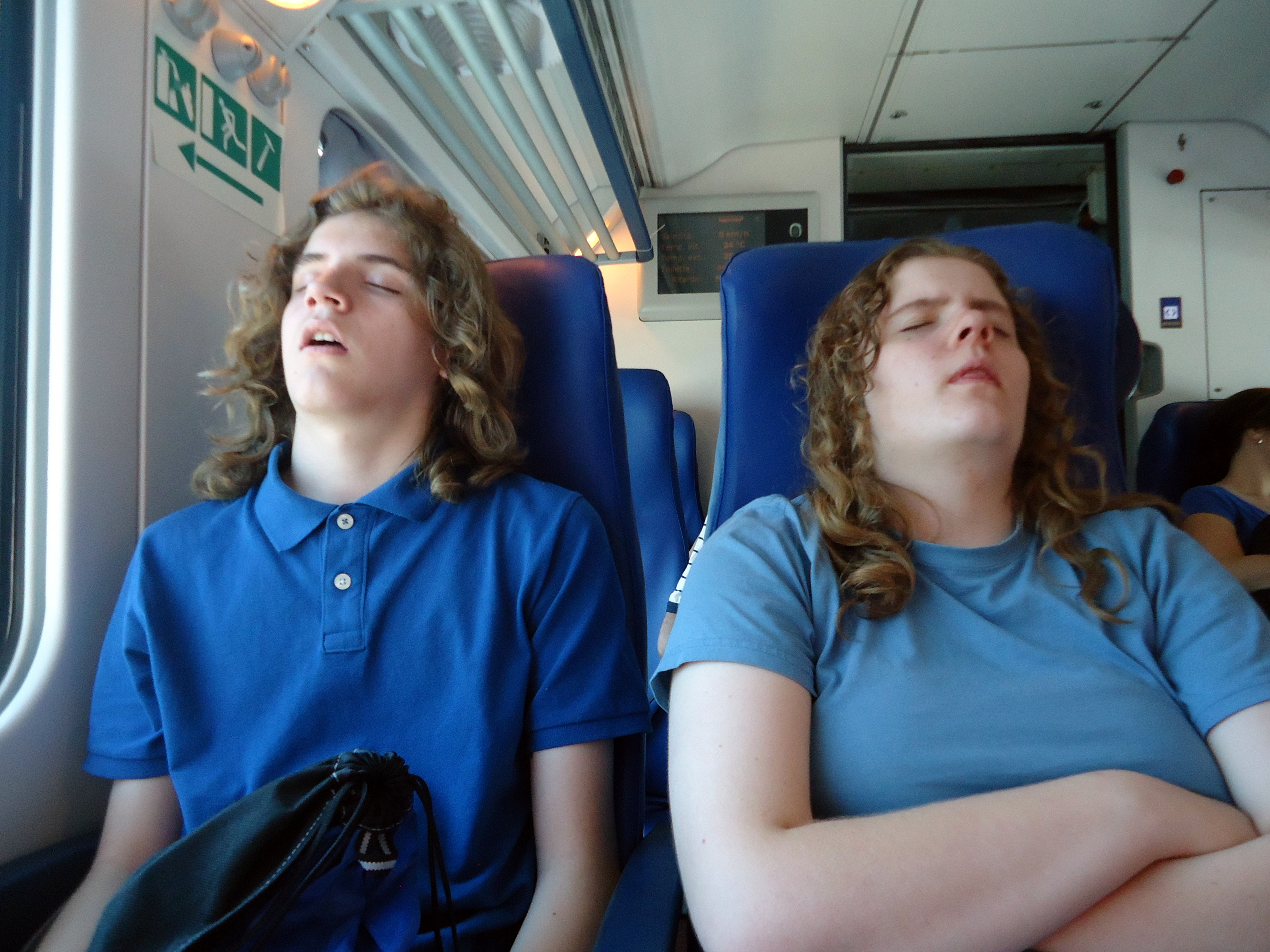 We made the train, and the kids dropped off to sleep fairly quickly — obviously they are already seasoned travelers!