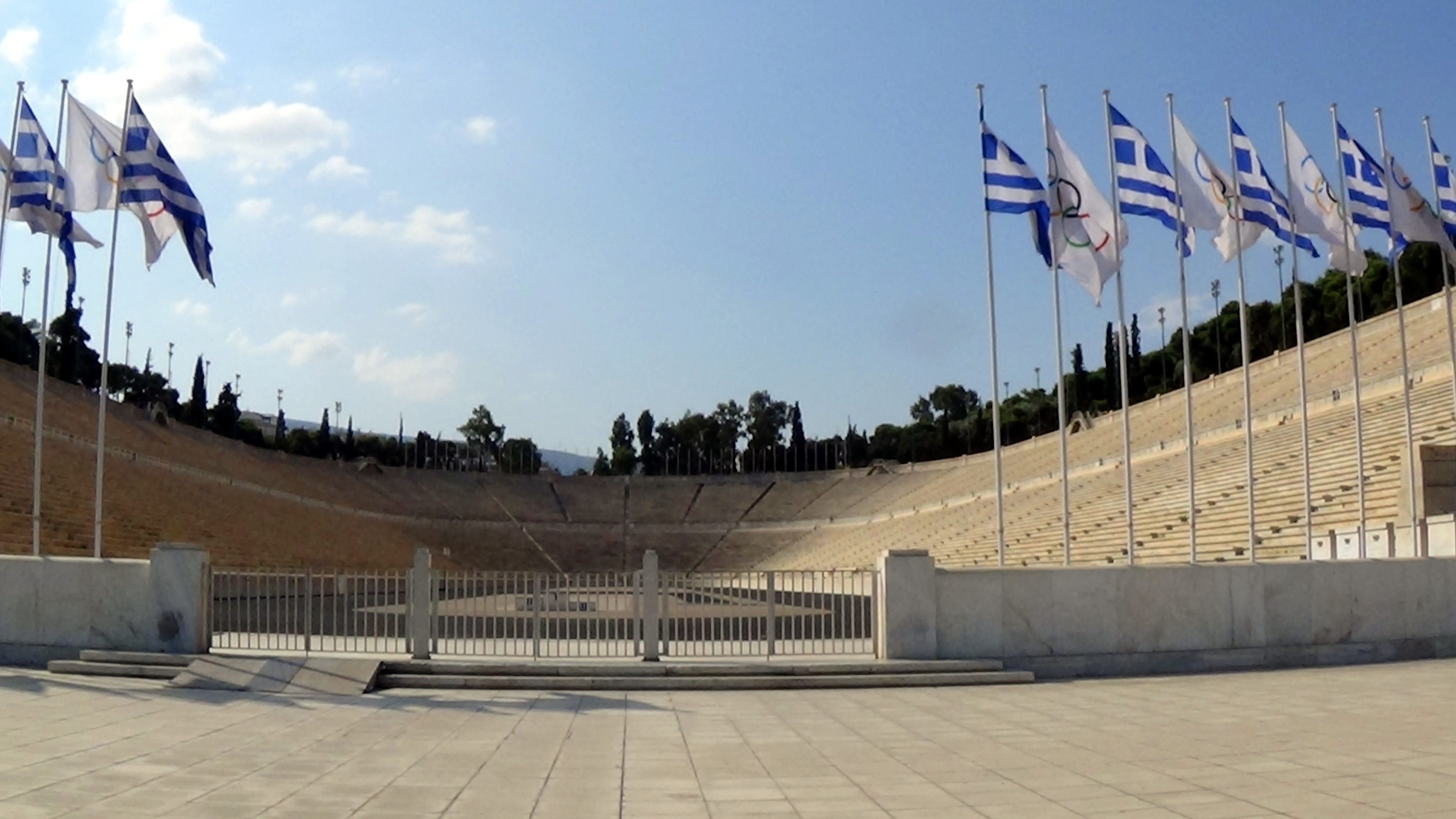 Along the way we stopped at the original (1896?) Olympic Stadium of the modern era. Would have been nicer if we could have walked among the bleachers, but it was interesting to see, looking through the open end of the stadium.