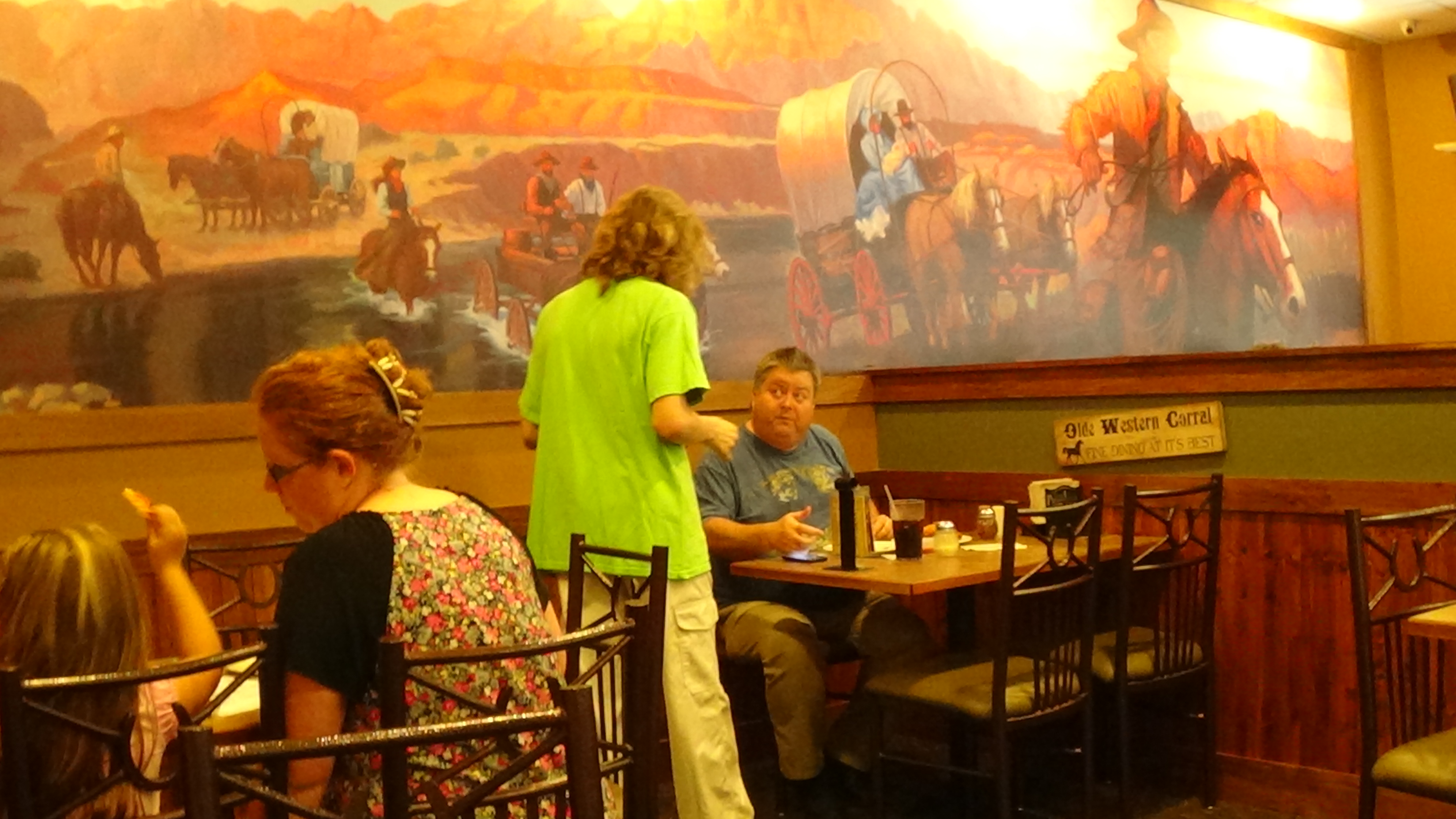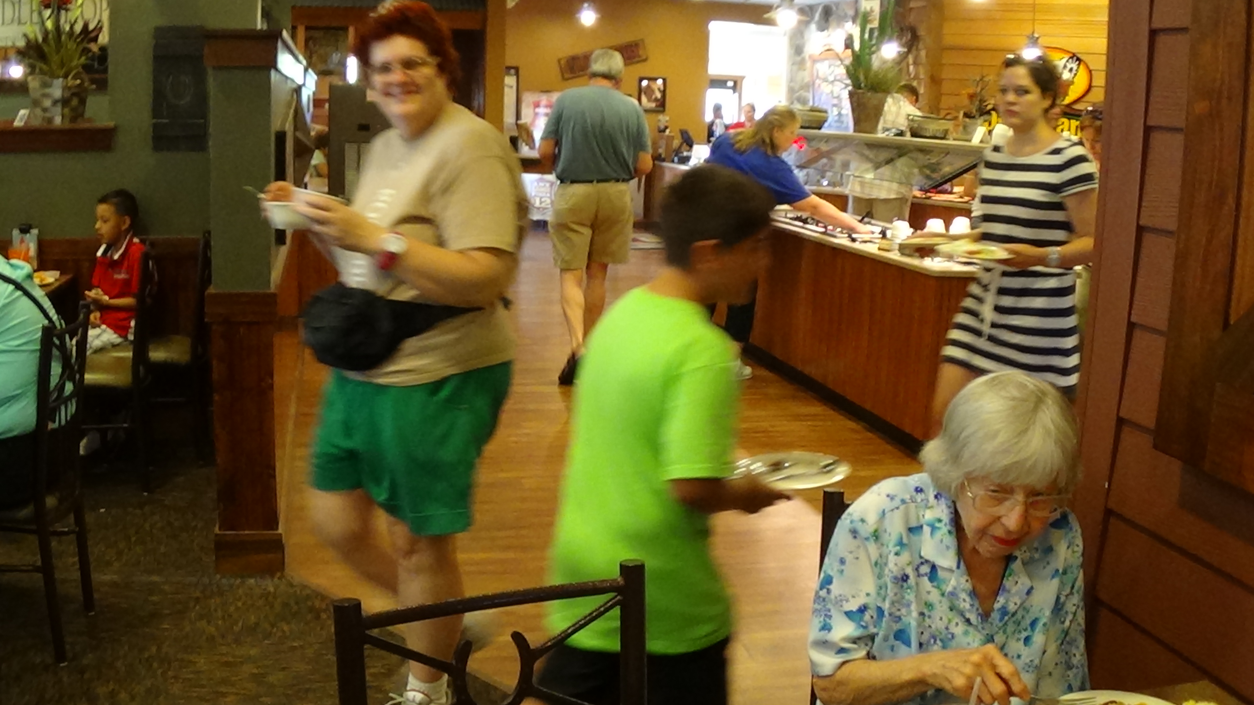 We arrived at 6:45 p.m., so I could catch the kids in action, before giving them their supper break. We seemed to be arriving near the end of the heavy rush. The restaurant seemed full of customers, and movement of green Avondale shirts was visible throughout.