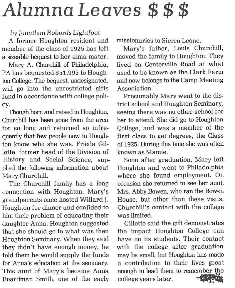 As I do a review of my writing, and the editions of the Houghton Star, I see that most of my articles Freshman year were of the “press release” type, rewriting and fleshing out basic informational articles.