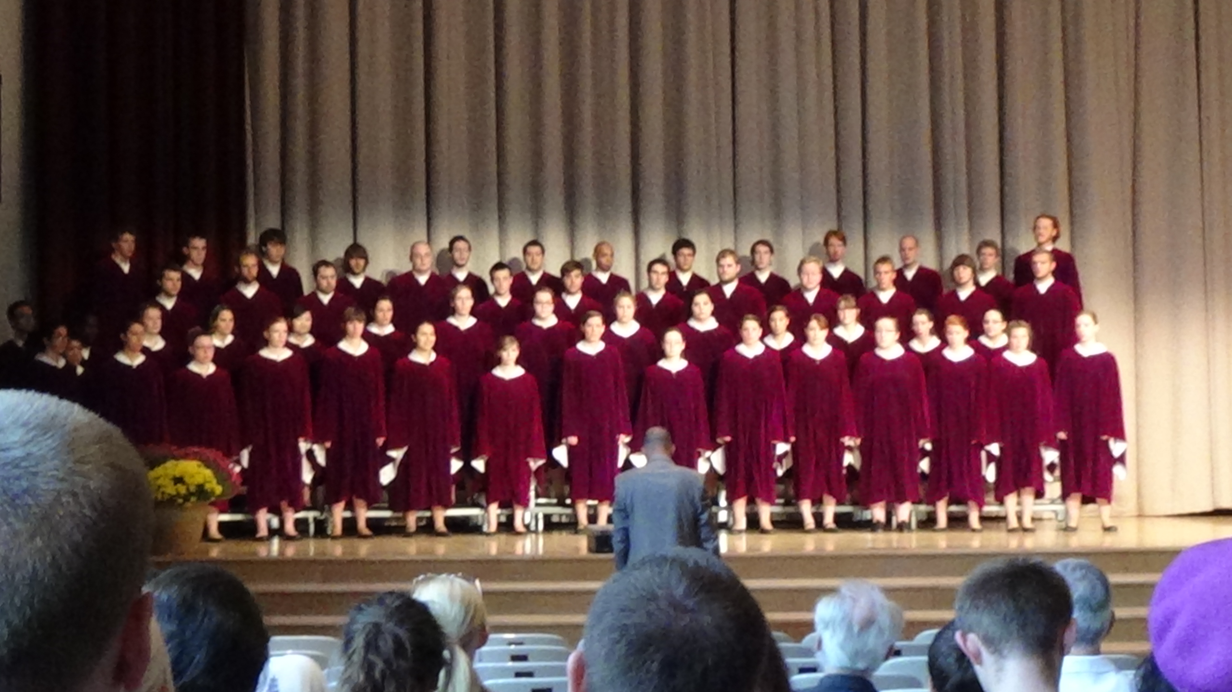 The Houghton College Choir sang at chapel. As an Alum of both college and choir, I was very interested, and very pleased, to hear them sing. I have even taped and uploaded the video of them on the class Facebook site. But the part I was also interested in was their robes. They looked very good in the burgundy/purple robes. I remember the black “sack” dresses the ladies wore during my day, and the tuxes we men wore. I think robes are a much better option.