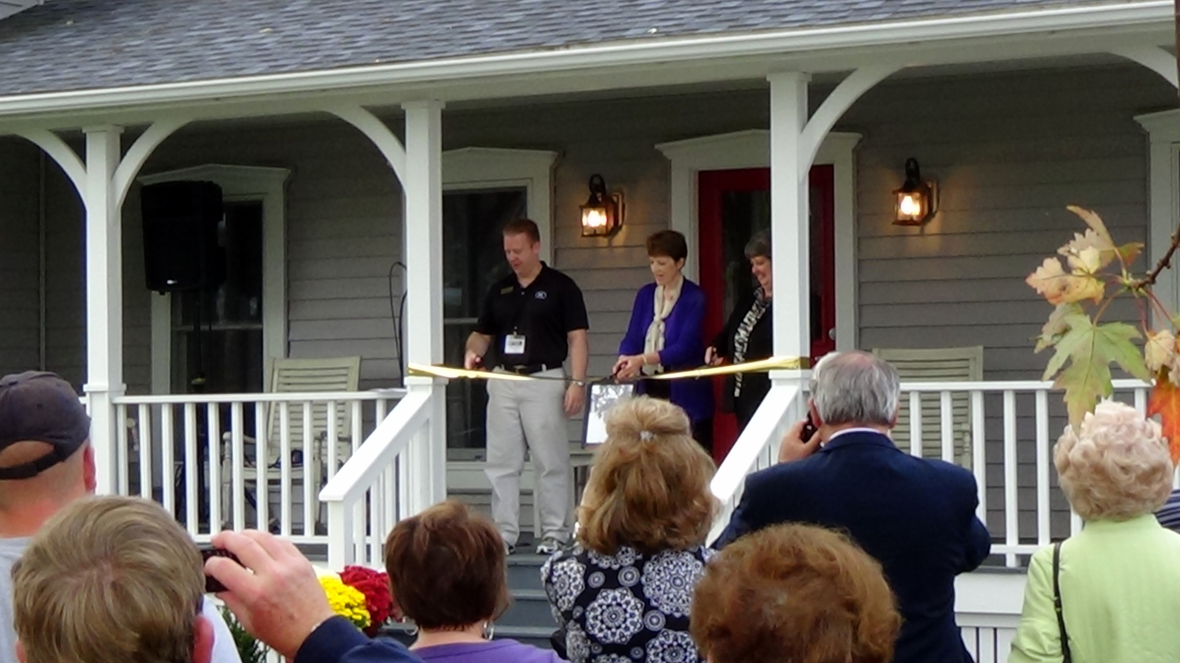Lunch was next (there was a lot of food over the weekend), and then Betsy and I went down to the ribbon cutting for the new Alumni house. The old Walldorf house was now renovated and refurbished into the alumni house.  It looked really neat inside — a lot of bedrooms decorated well.