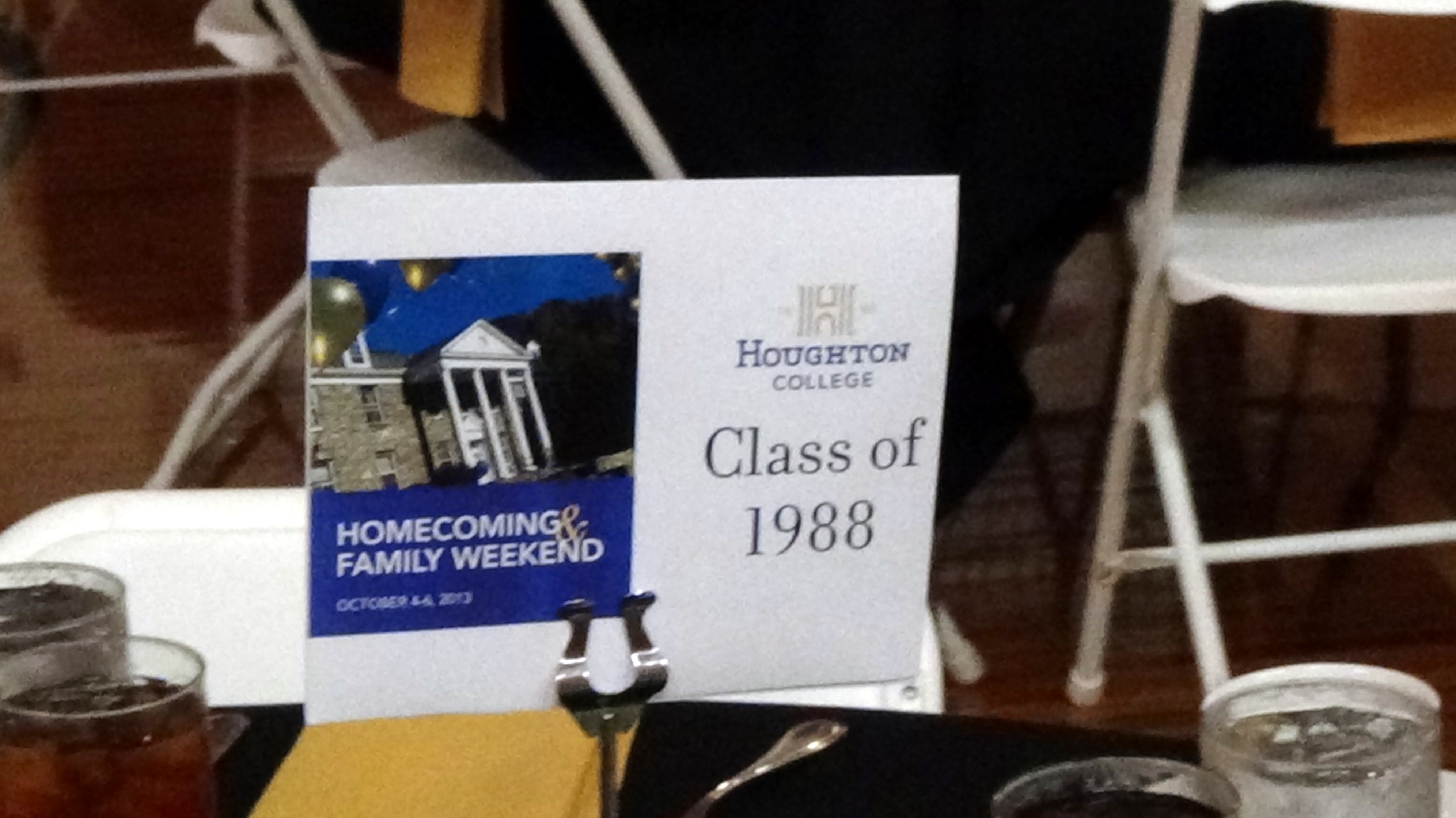 For we alumni, the day consisted of breakfast, followed by a “chat” with President Mullen in Gillette (translated East) Hall lounge. Topics of the chat, which was a Q&A, included the impact of Obamacare on the college (answer, don’t think it will have a big impact, but like most people we don’t really know the full impact), how Houghton was reacting to Moody Bible Institute’s allowing smoking and drinking by its employees, and what response the college had to people’s complaints about students that attend a Christian College and end up “losing” their faith.