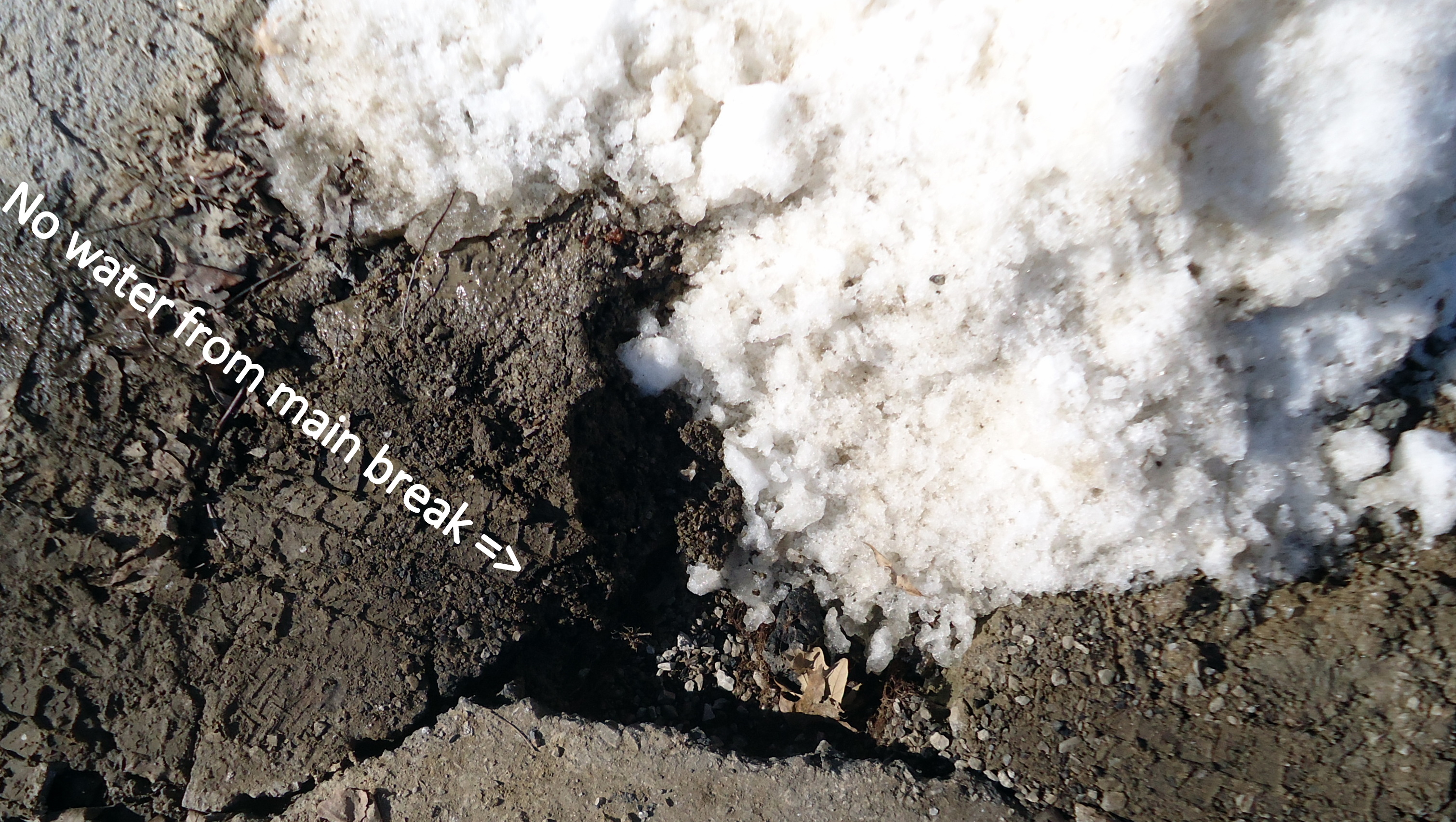 Our water main is no longer running like a gushing fire hydrant down our street and across our driveway. After my last update, the culvert pipe under our driveway became partially unclogged and the water started flowing under the driveway again. Then it started slowly silting back up until by Friday some water was starting to flow over the top again.