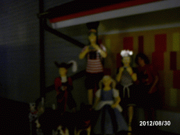 and the last one was at DisneyWorld — Next to large Lego creations. You can see his sister slipping in and out as he poses.