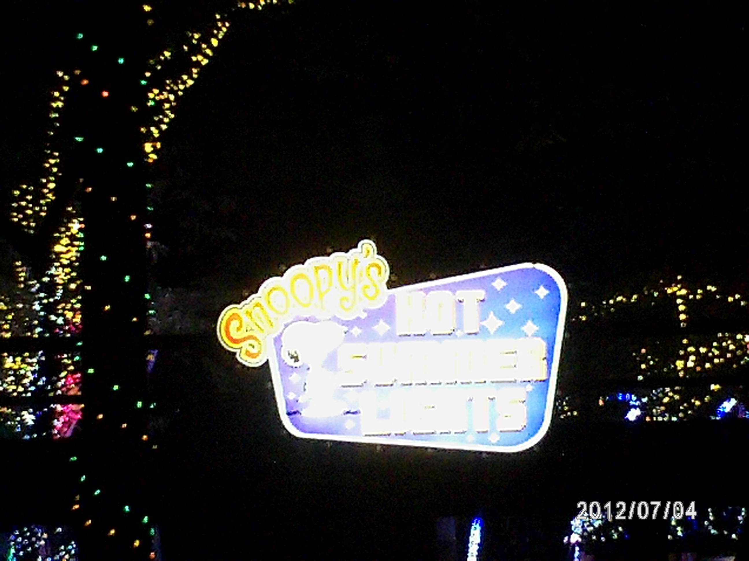 Warm today. Made me think of “Snoopy’s Hot Summer Lights” at Worlds of Fun. So here are a few pictures from a couple of years ago ….