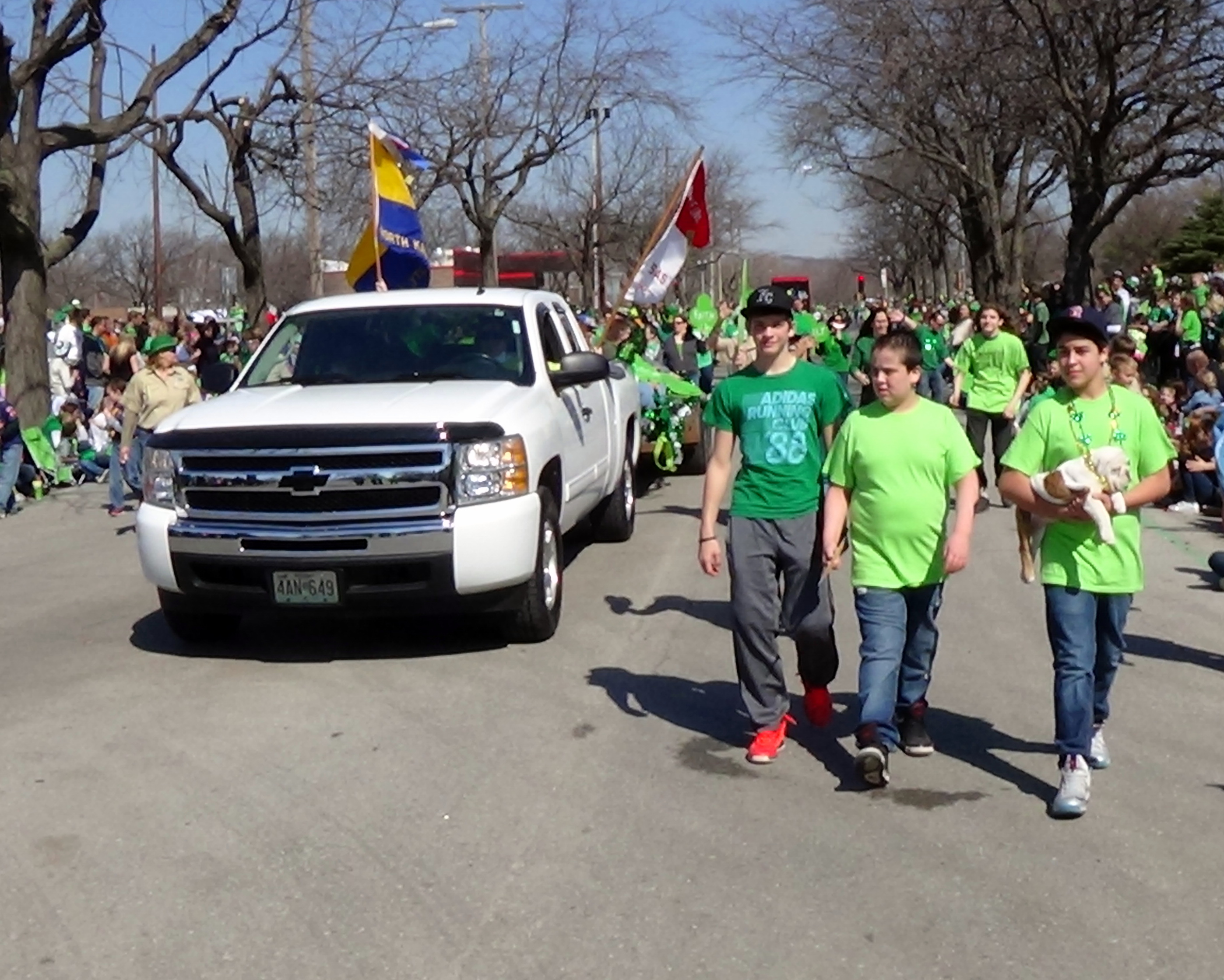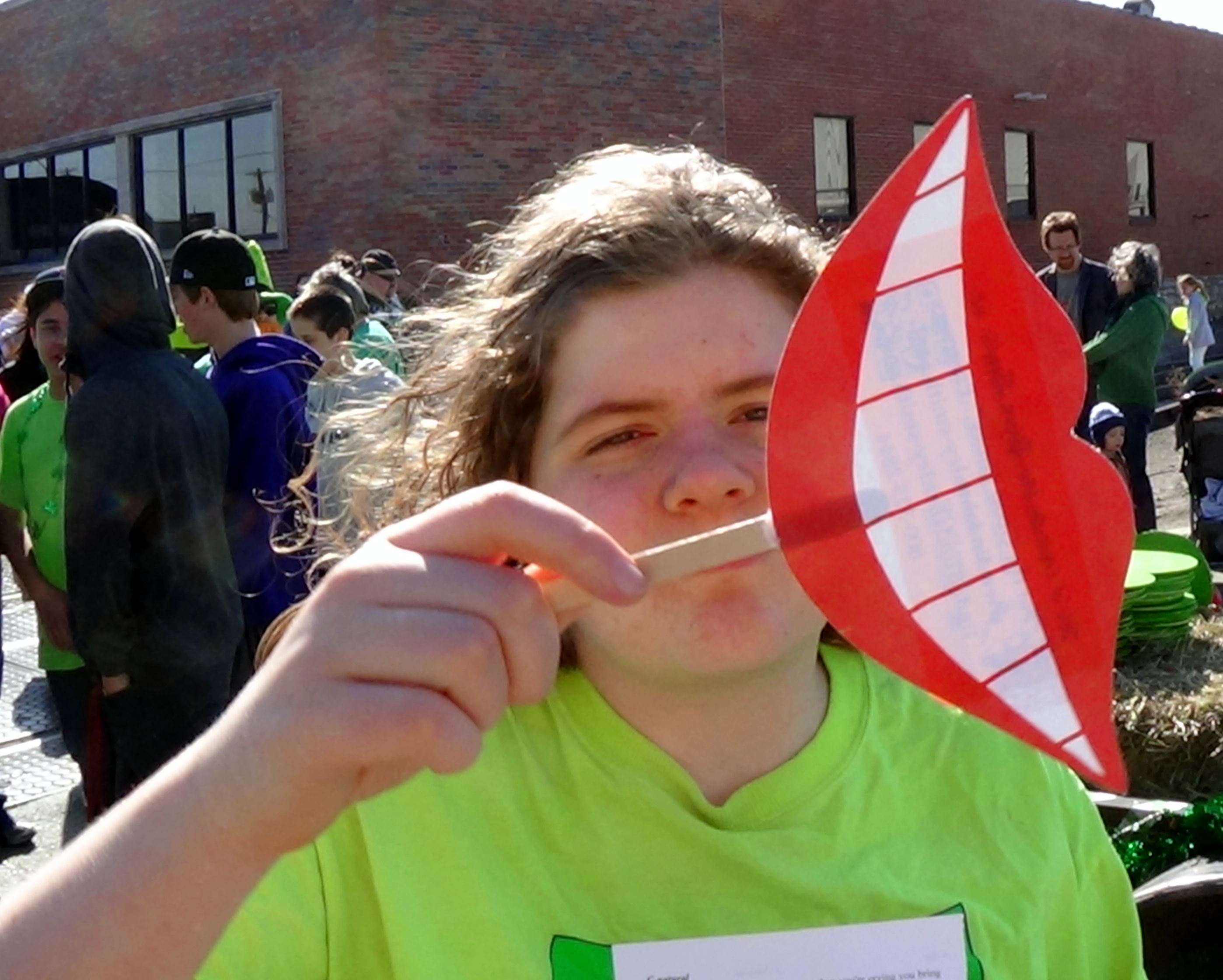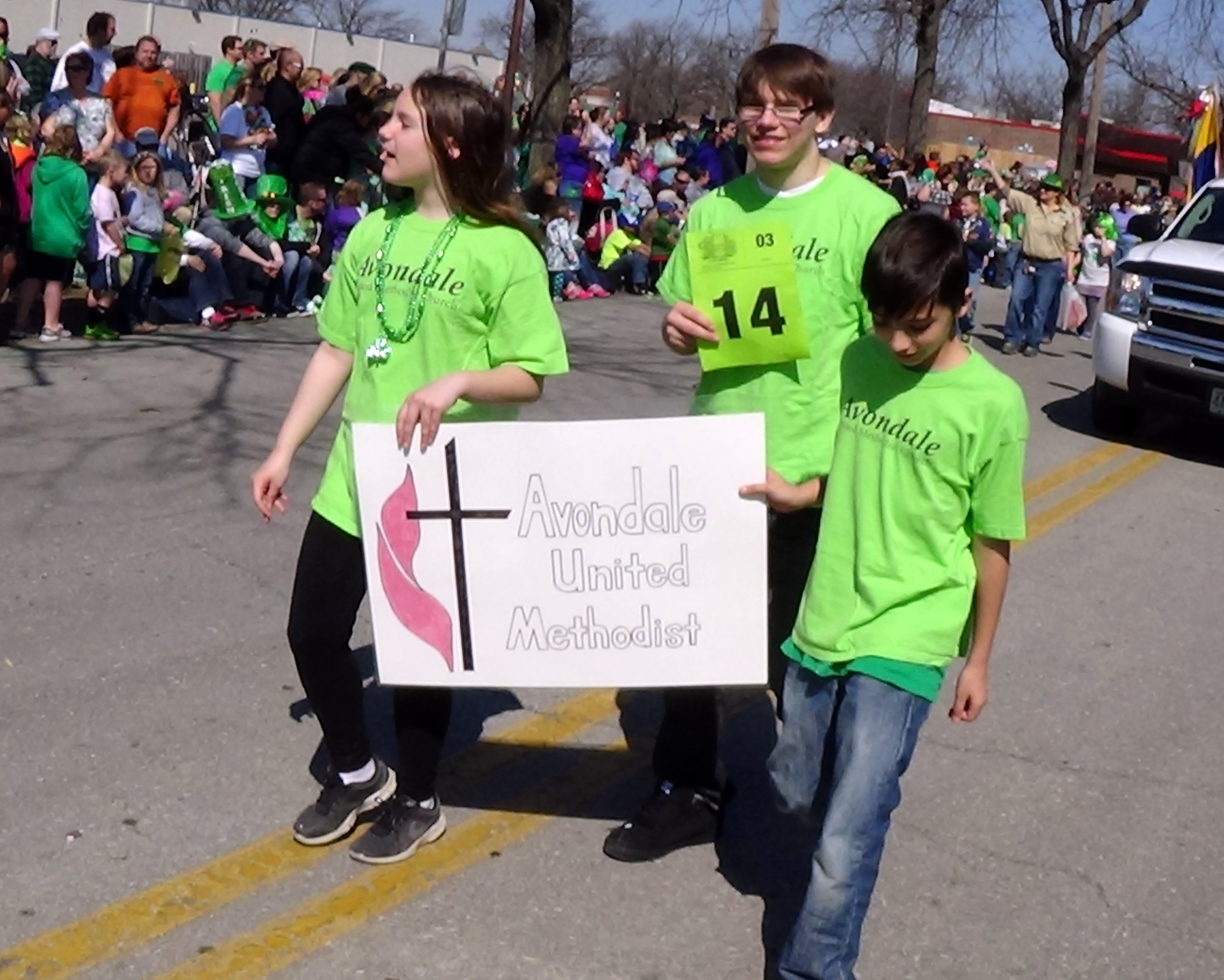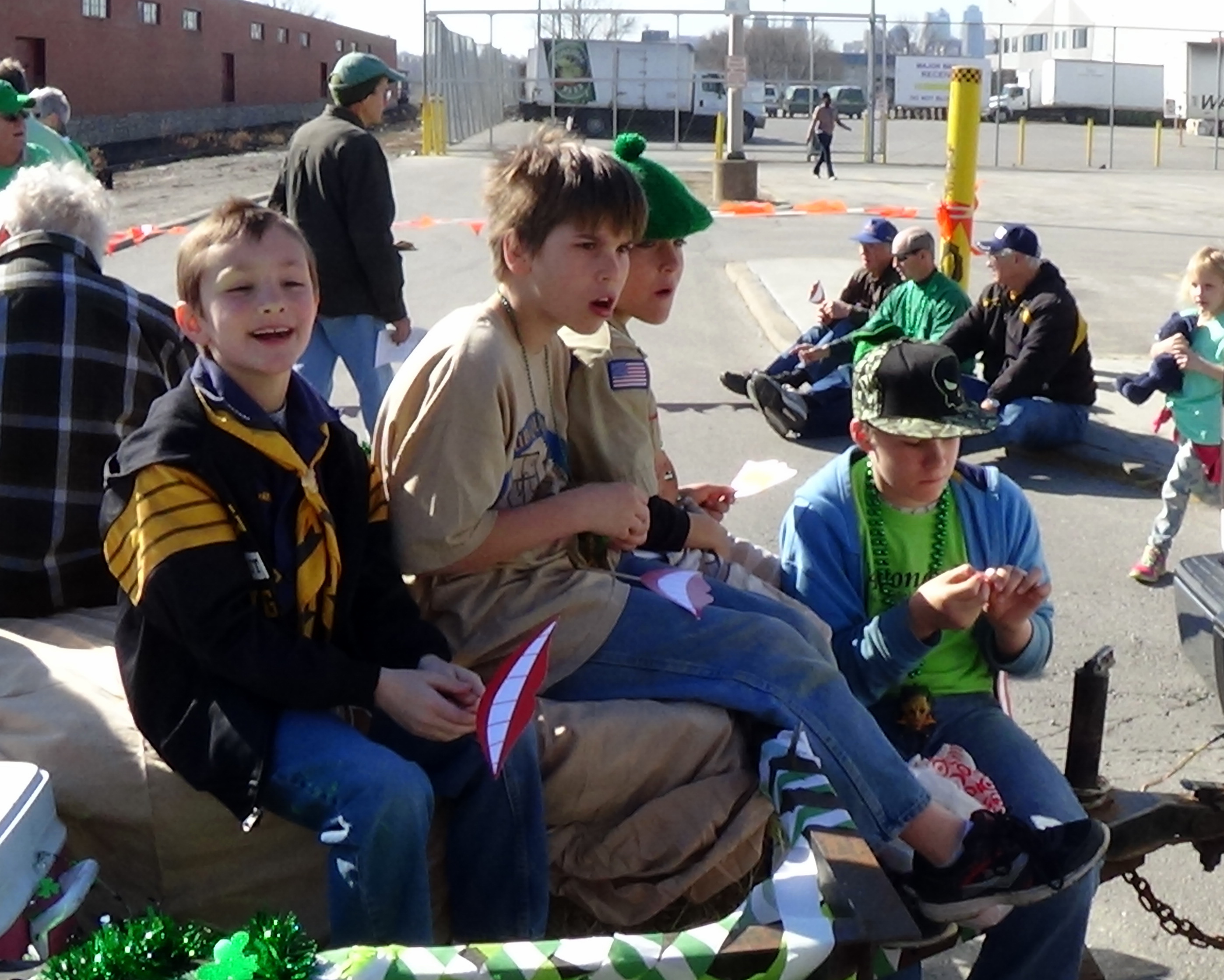 Everyone gathered on 14th Ave., between Iron and Erie, where we were float 14 in Section 3, to wait the 11 a.m. start of the parade. Everyone was handed a stick with a smile on it, and their were shamrocks with Faith, Family, or Freedom written on them.