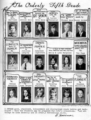 (Let me give credit and thank you to Kelly Margeson Sill for the photos with this blog. I misplaced my fifth grade yearbook and she kindly scanned pages from hers that I could use to illustrate this blog.)