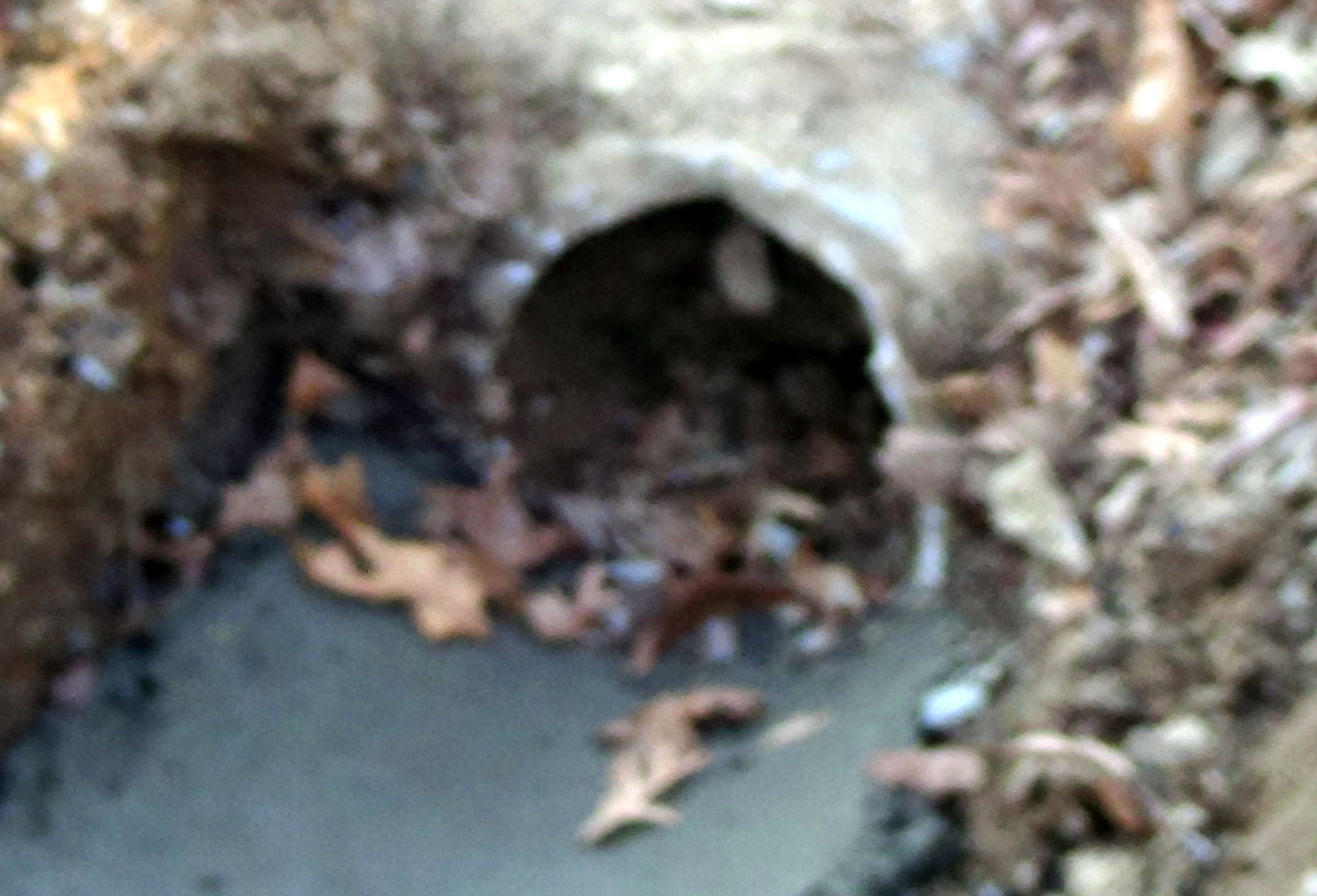 As you look at the pictures, you will notice there are footprints on the concrete. When Betsy left the house at 12:23 there was a backhoe in the ditch digging it down and shaping it. Between then and when the boy got home from school around 3:30, they dug the ditch down to the level of the culvert pipe and lined it with concrete, and were puttering around with other things. By the time Betsy got home at 5:08, someone had walked in the concrete and put the footprints in it — we don’t know who.