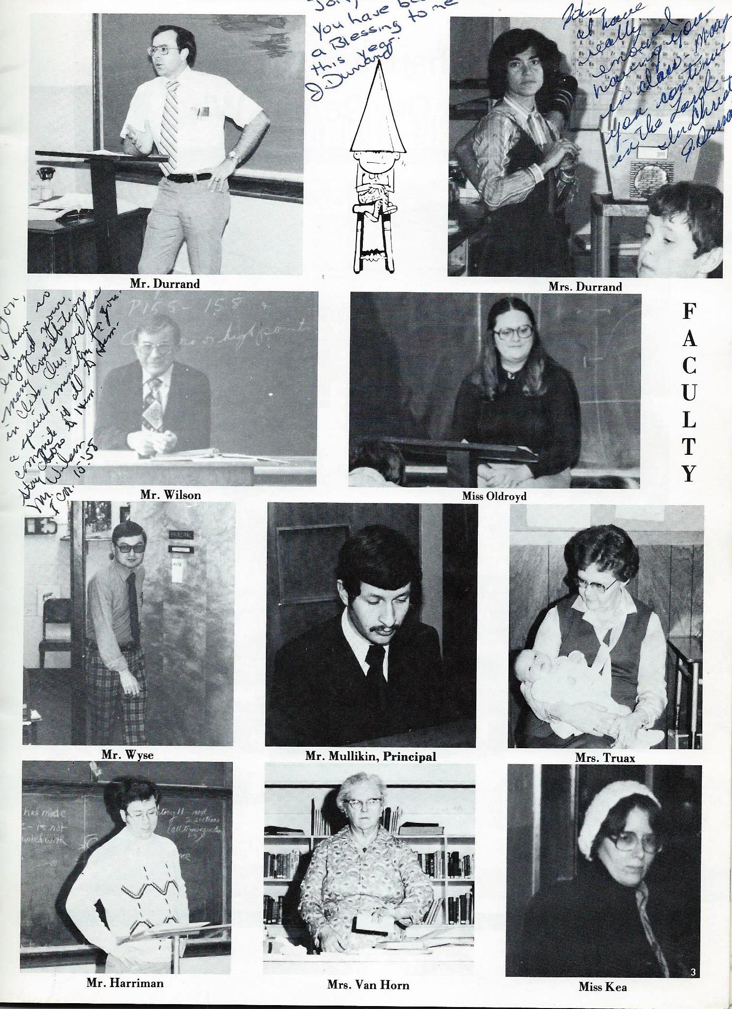 Our class count was up to 25 this year. I also notice on the faculty page of the yearbook they got Mr. Wyse and Mr. Mullikin’s names backwards. Probably a big thing then, but small to the web story I saw today about the yearbook for an Arizona high school release here in 2014 — with the year 2013 on it, a quote across someone’s face, all sorts of wrong names, etc. After seeing that web-clip, I am glad for the efforts put in by the people who put our yearbooks together all these years, to help us have these recorded memories (before the days the web made everything “saved forever”).