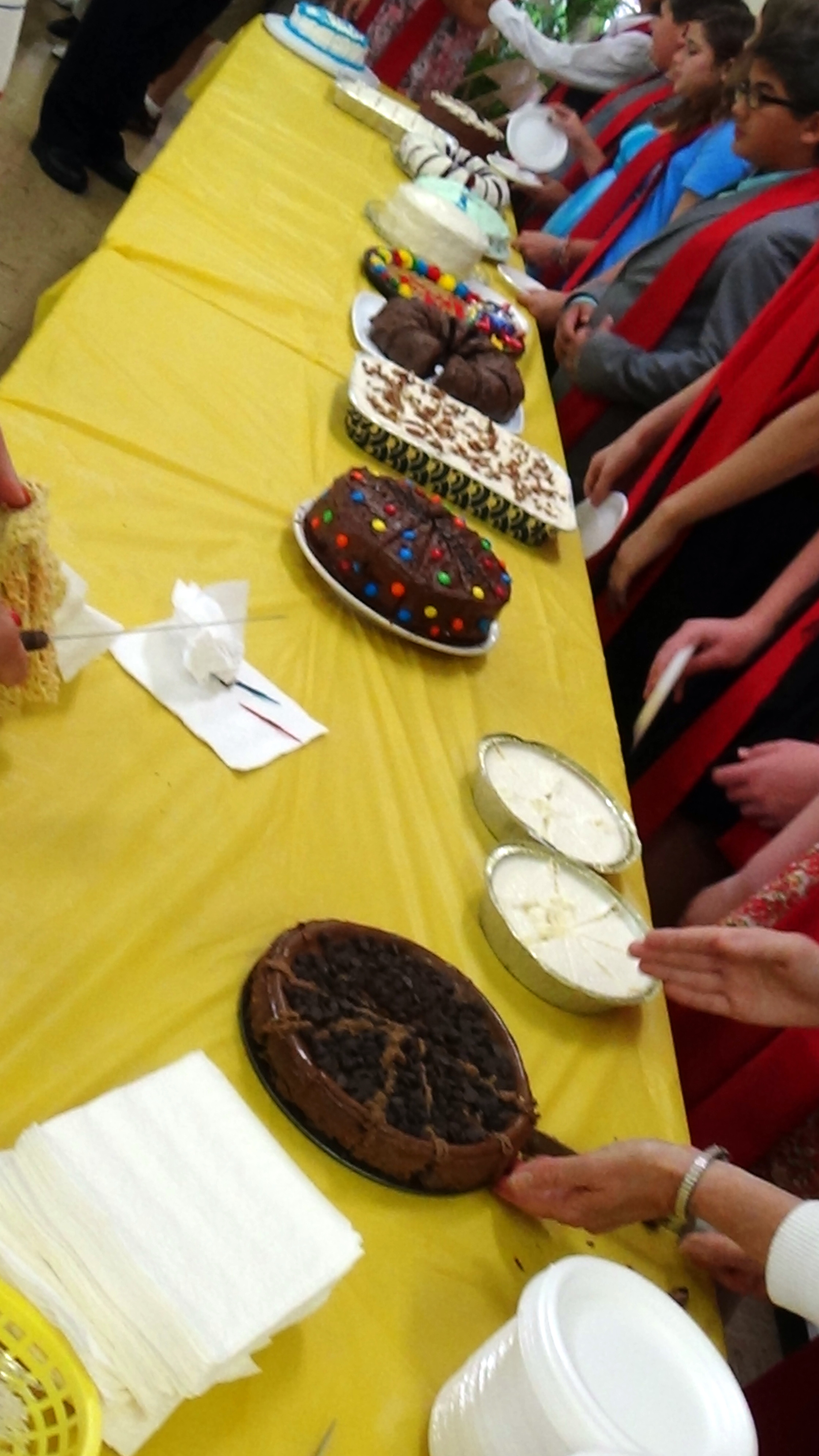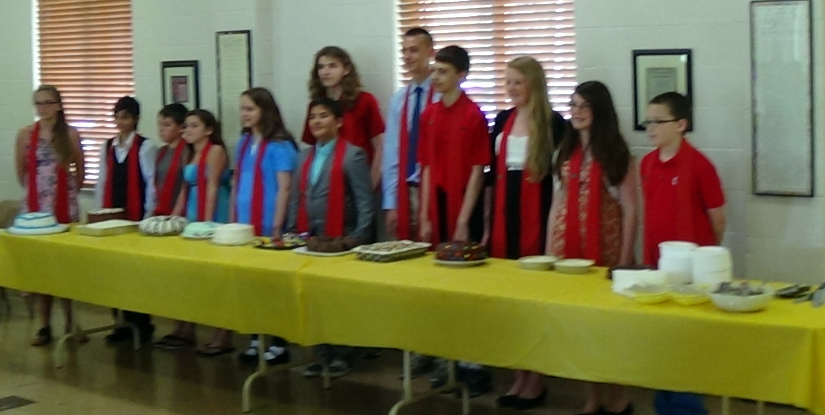 After the service, there was a reception in Wesley Hall, where each confirmand was represented by their favorite type of cake, and also had a display table of items about themselves to help the congregation get to know them better.