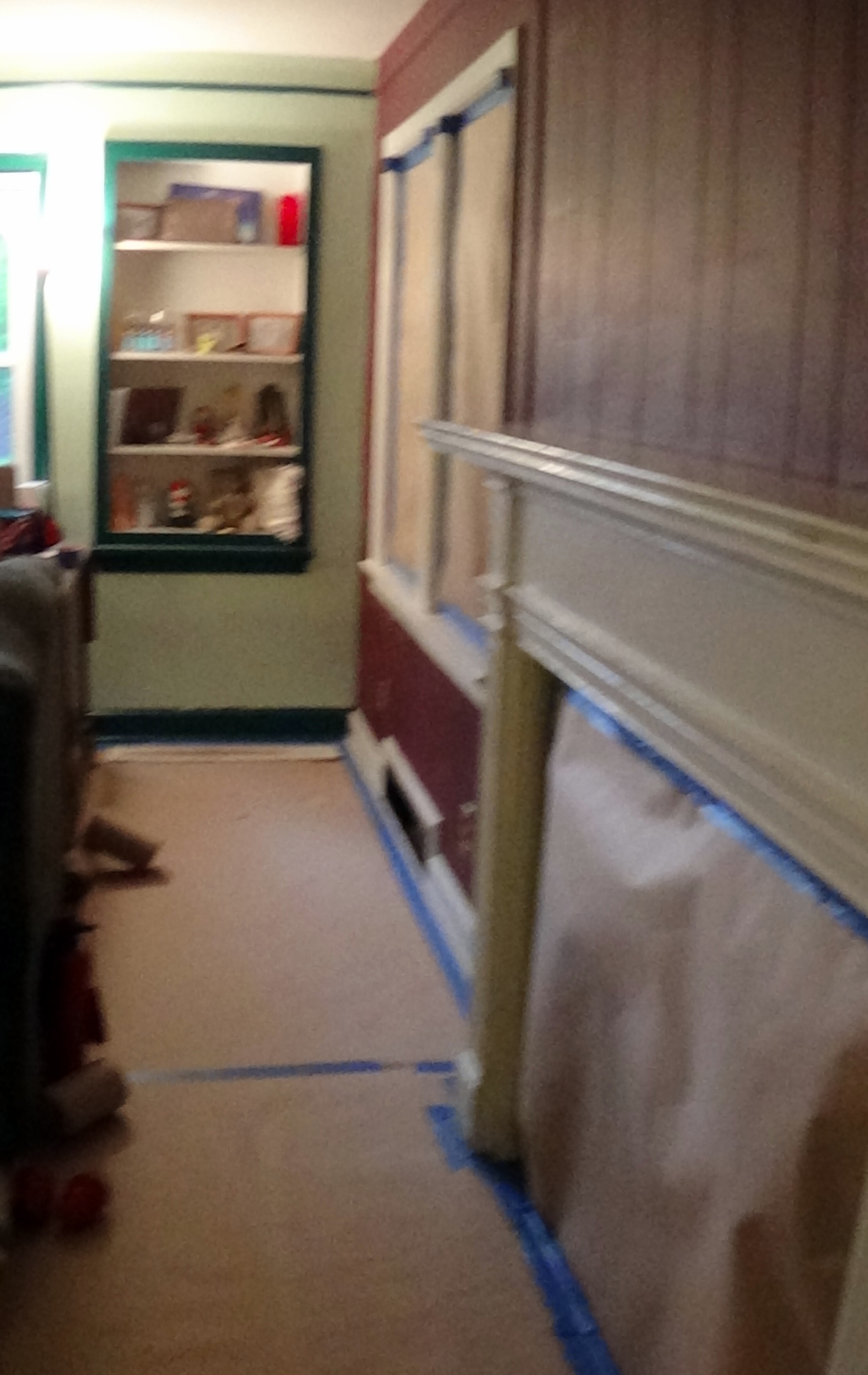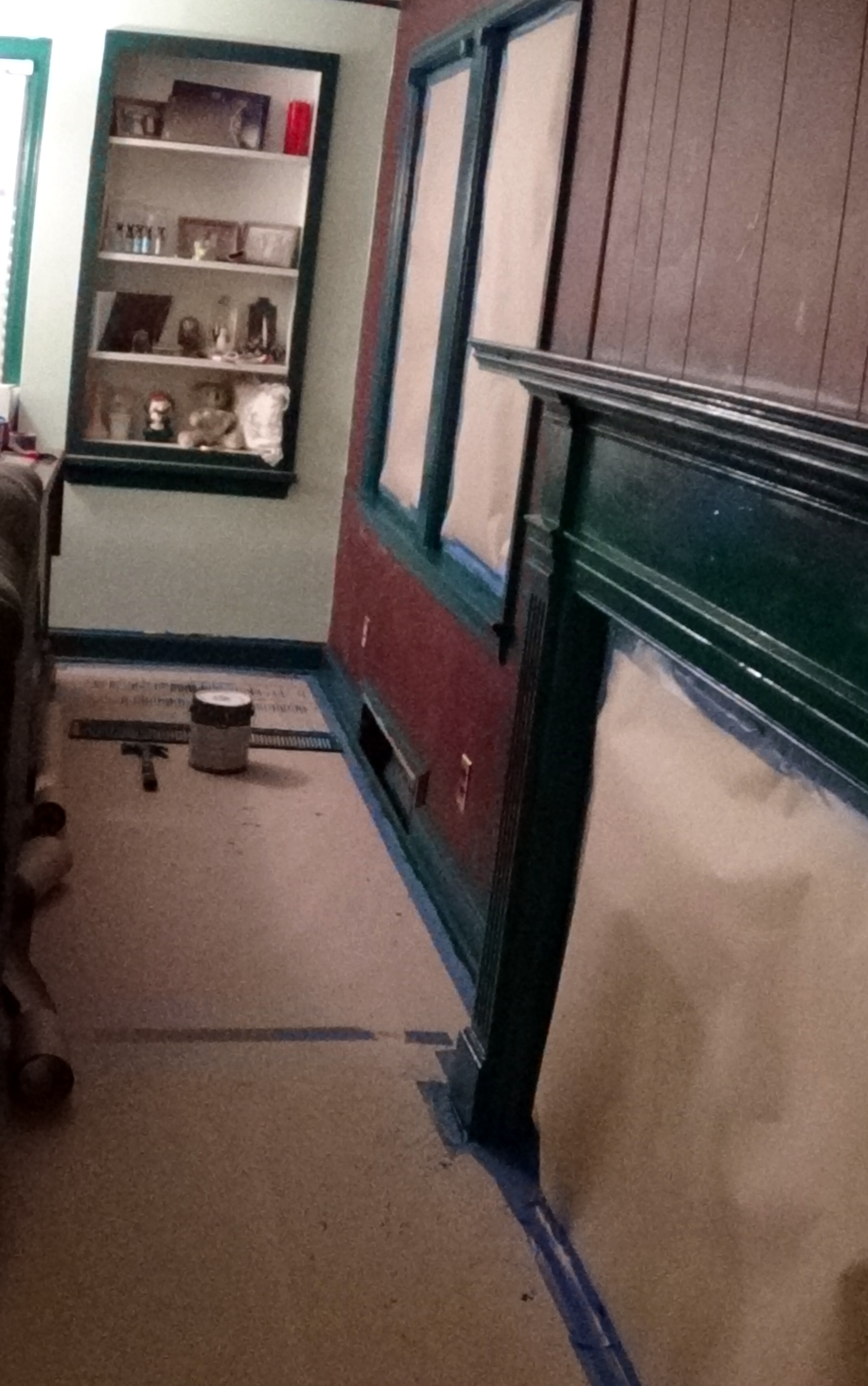 So per the pictures, you can see the transformation of one wall from dark burgundy to light green. Now we have three light green walls and one burgundy wall. But you can’t see much of the burgundy, we have so many bookcases and other things against it, though that should be changing soon (another teaser). The room became noticeably brighter two years ago, and is moderately brighter now — especially at night. When we turn on the lights in the evening it reflects off the light green walls a lot better than it did off the burgundy.