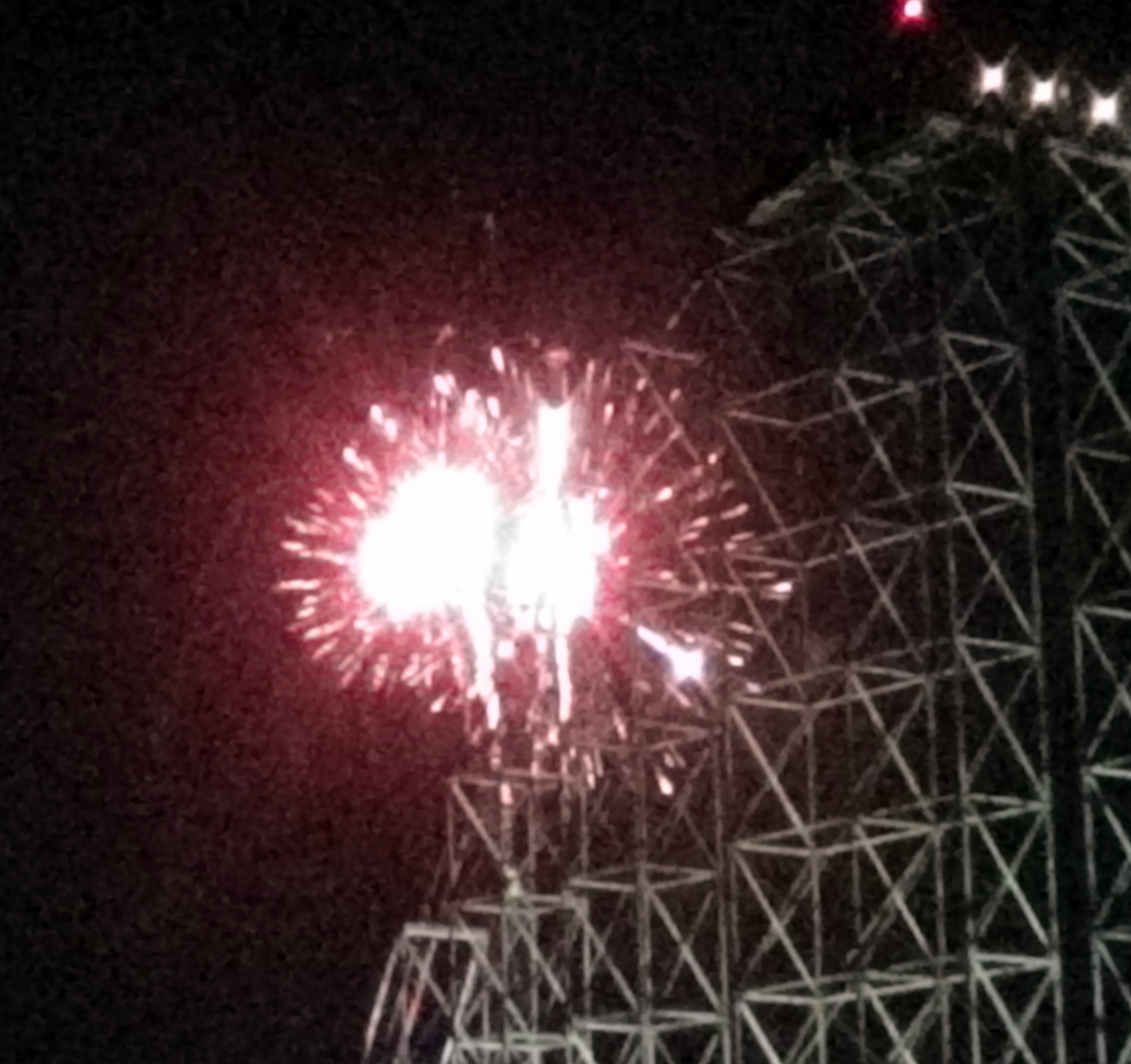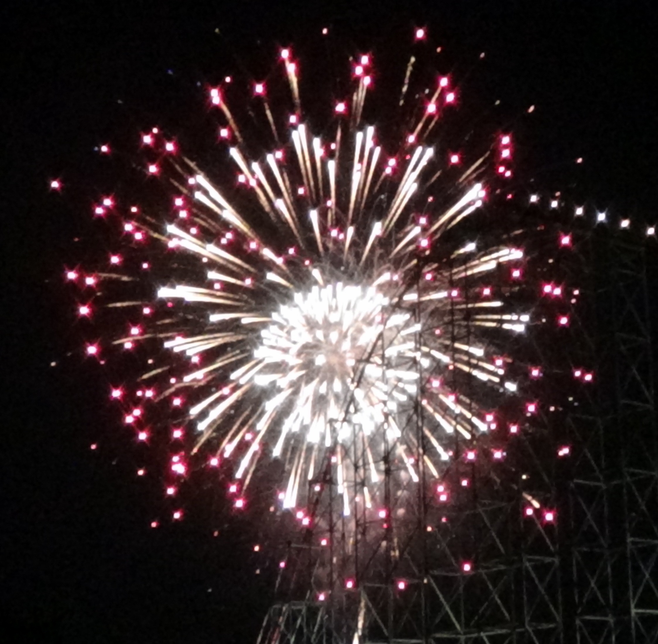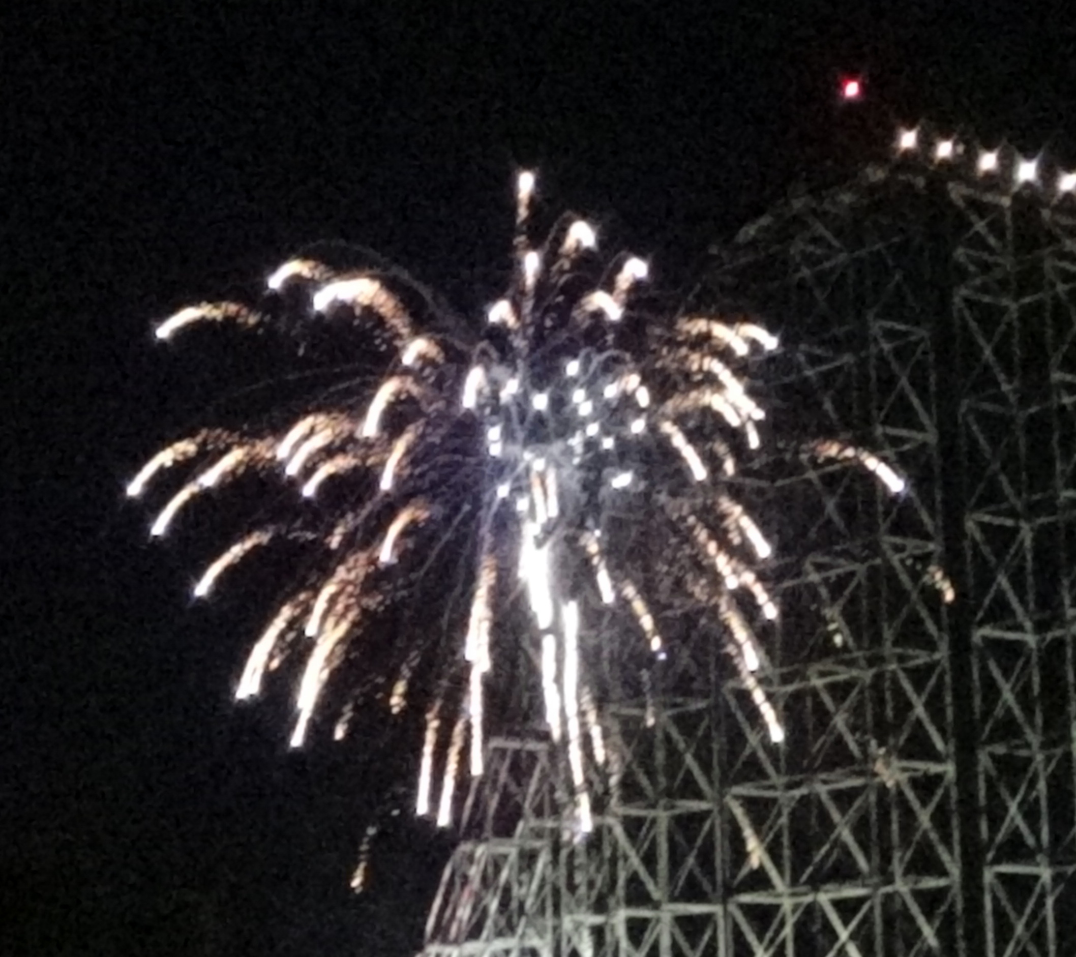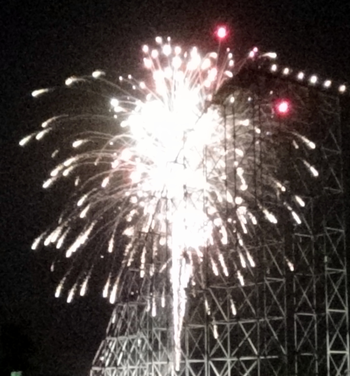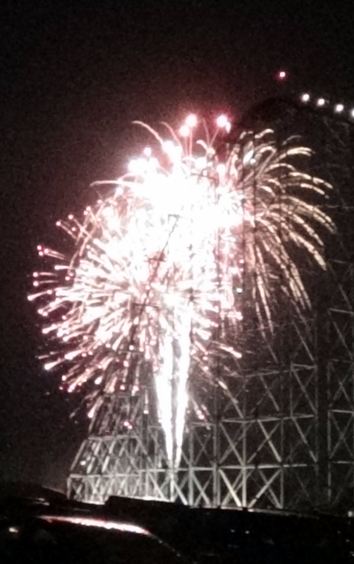 Today I am giving a large gallery of fireworks photos. Worlds of Fun had a good 20 minutes fireworks show. Then it took us 40 minutes to get out of the parking lot, 30 of them standing perfectly still in the same spot. Some people with SUV type vehicles started driving over the curb and across the grass to get out of the line we were stuck in.