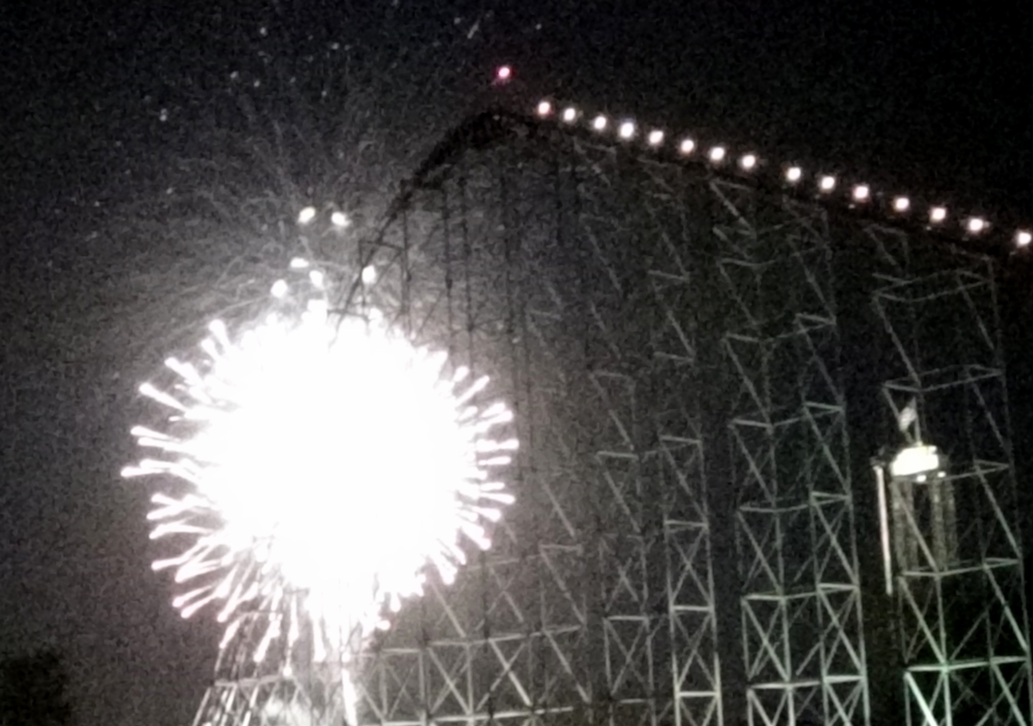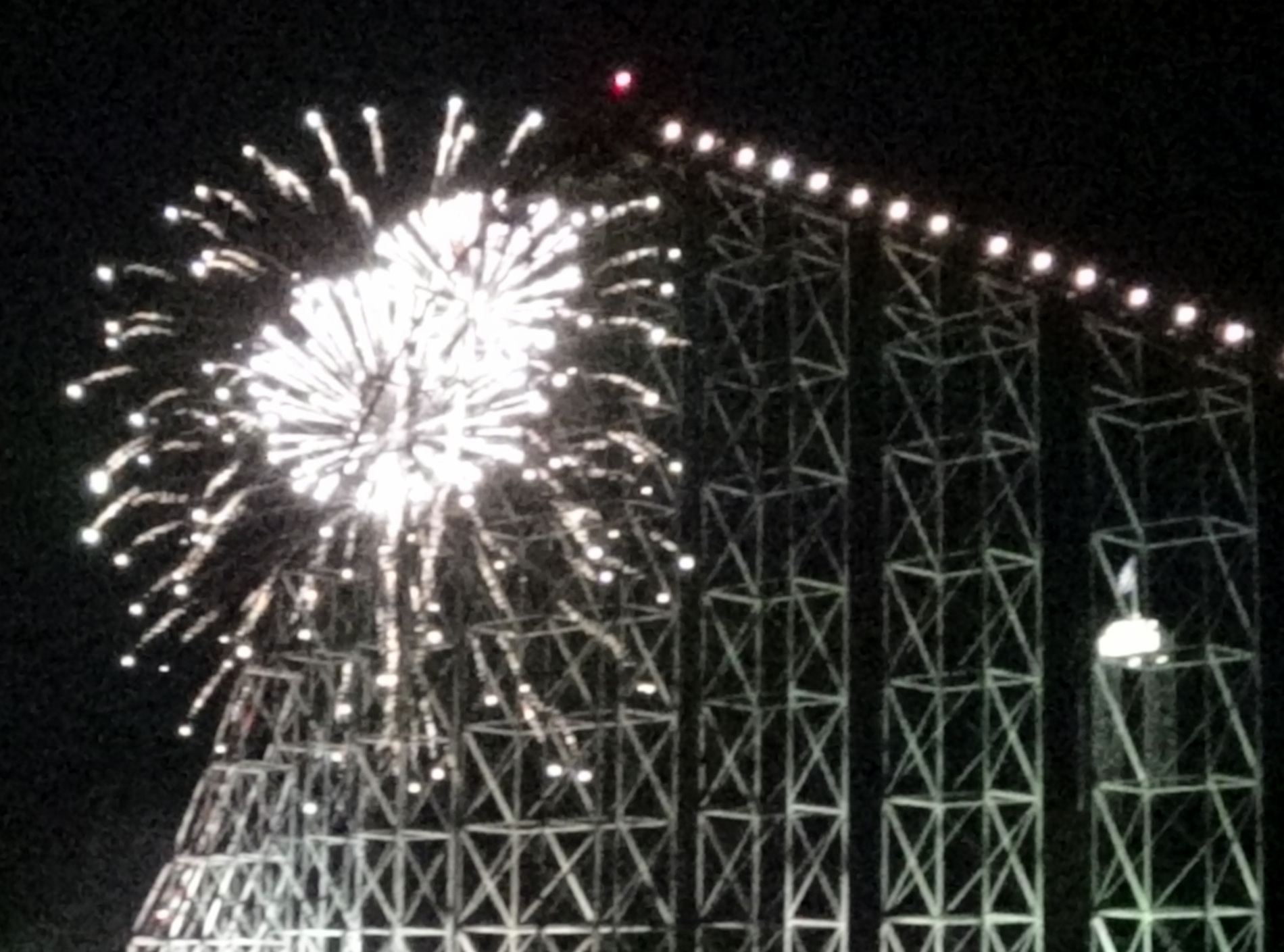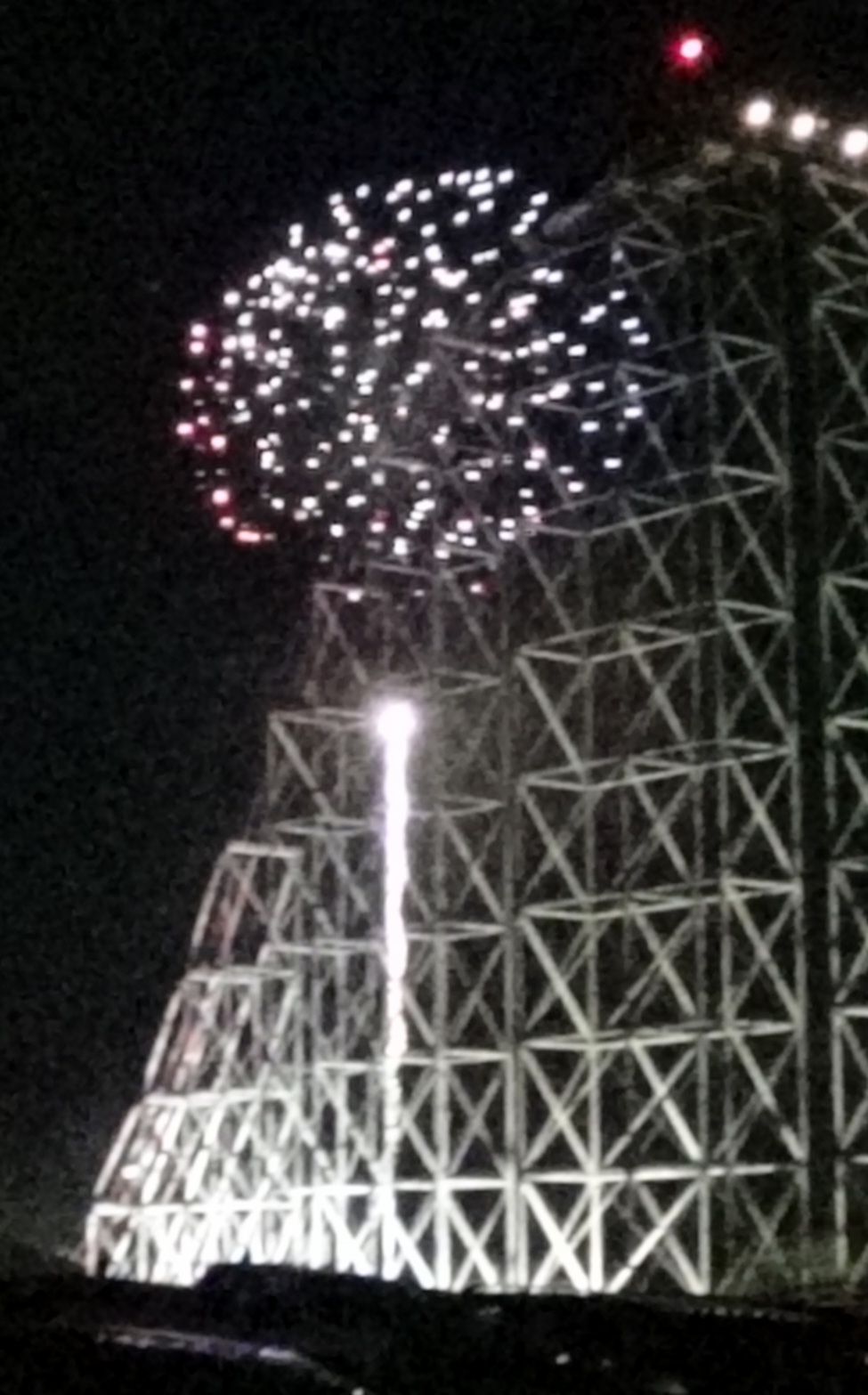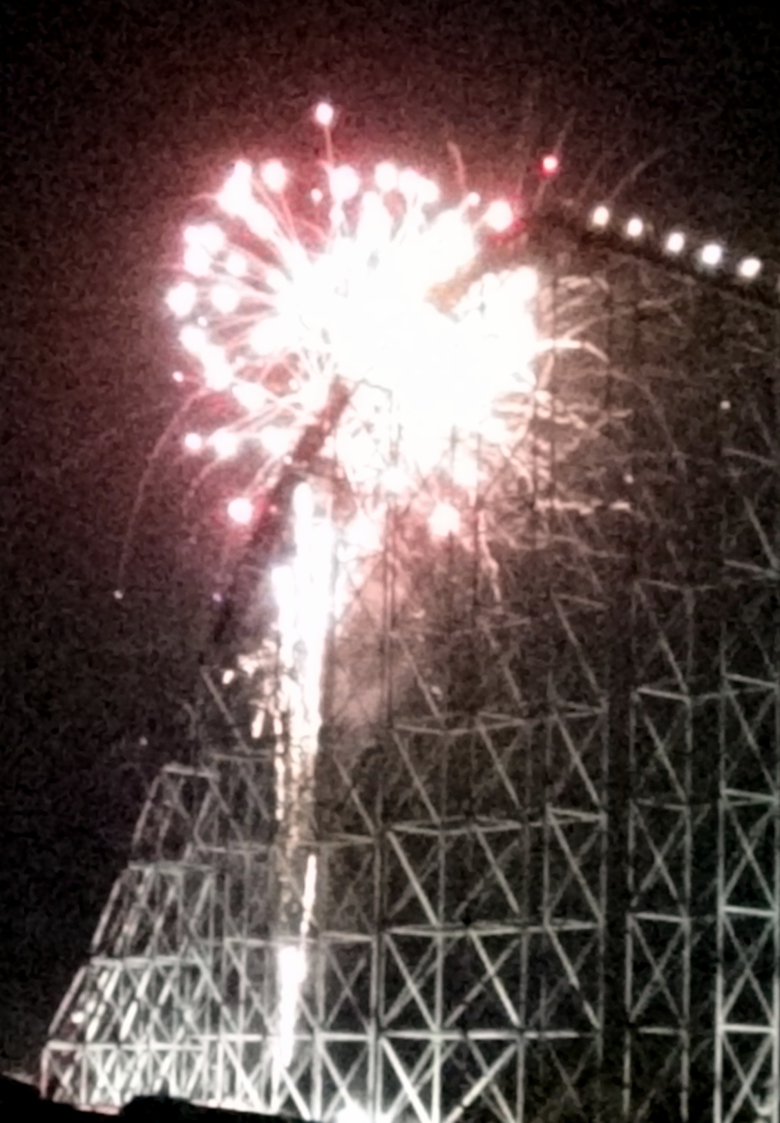 Today I am giving a large gallery of fireworks photos. Worlds of Fun had a good 20 minutes fireworks show. Then it took us 40 minutes to get out of the parking lot, 30 of them standing perfectly still in the same spot. Some people with SUV type vehicles started driving over the curb and across the grass to get out of the line we were stuck in.