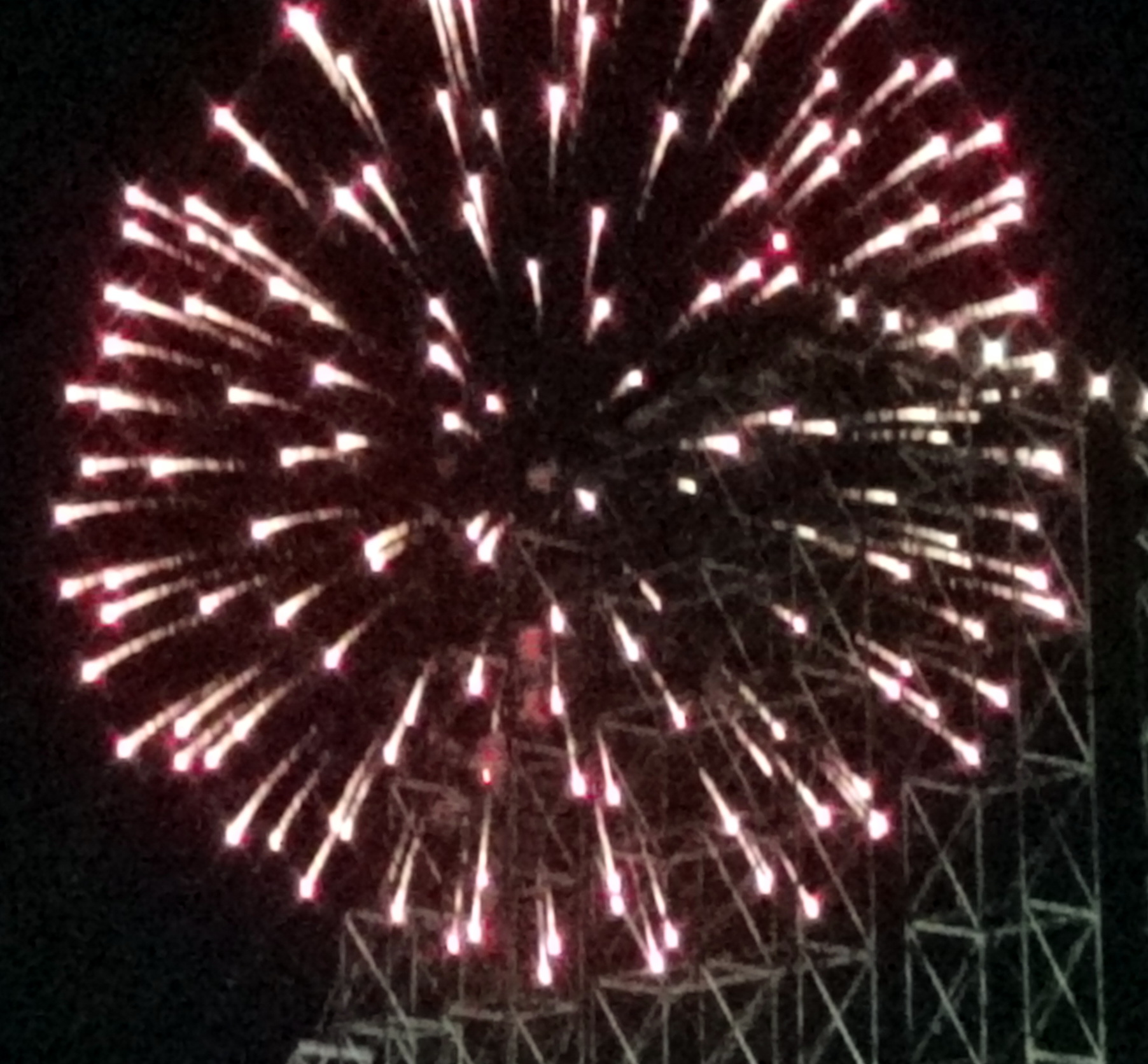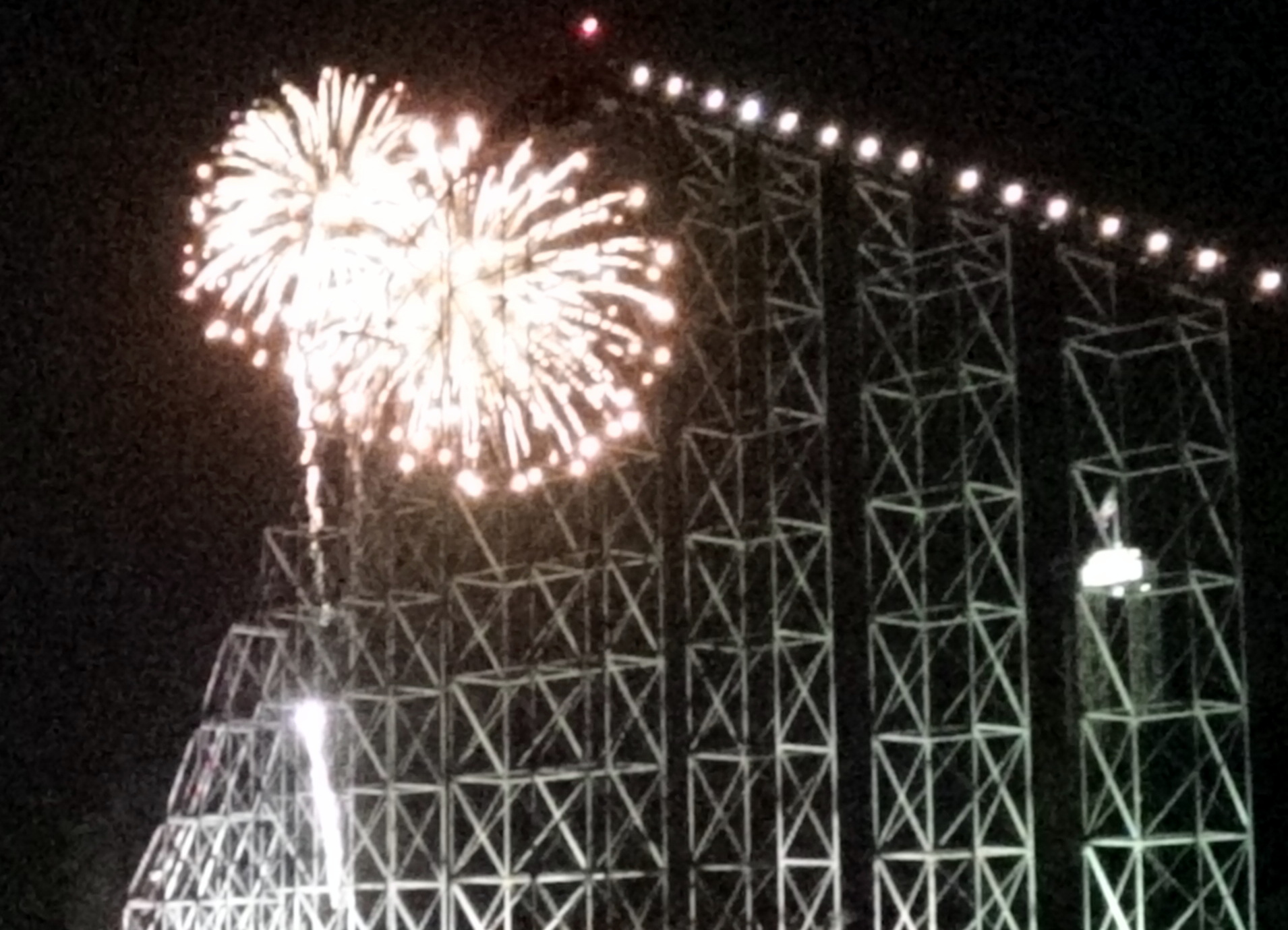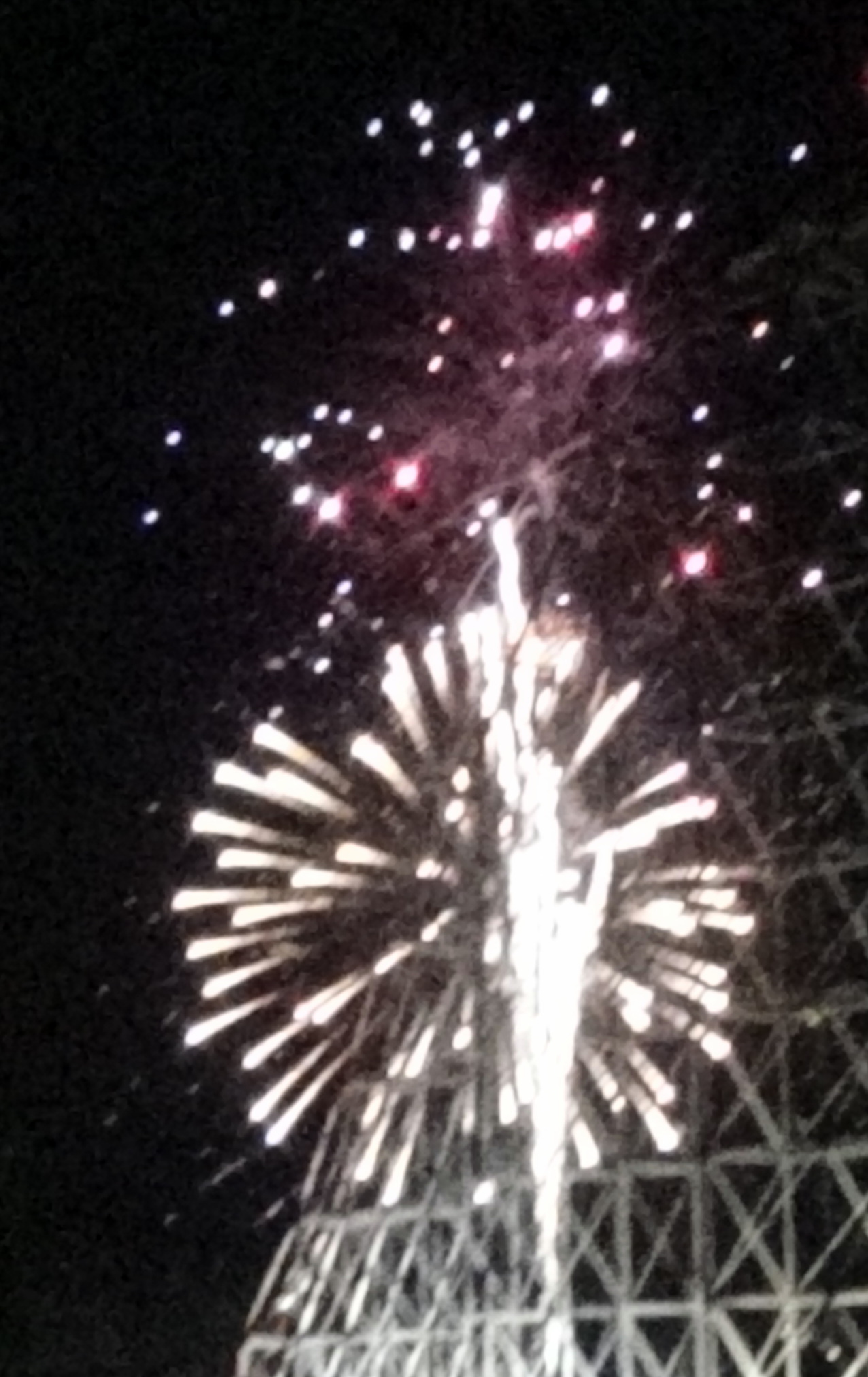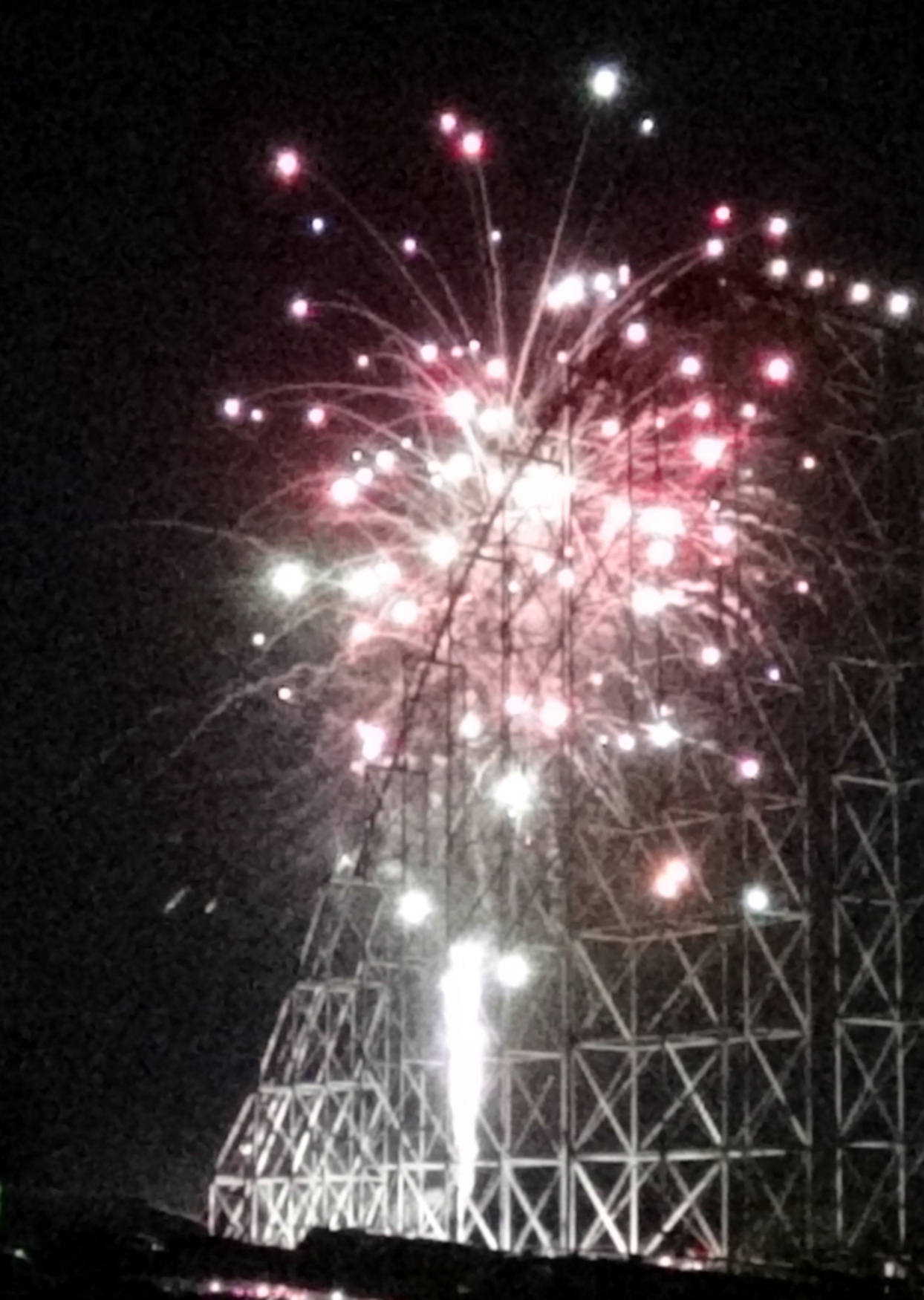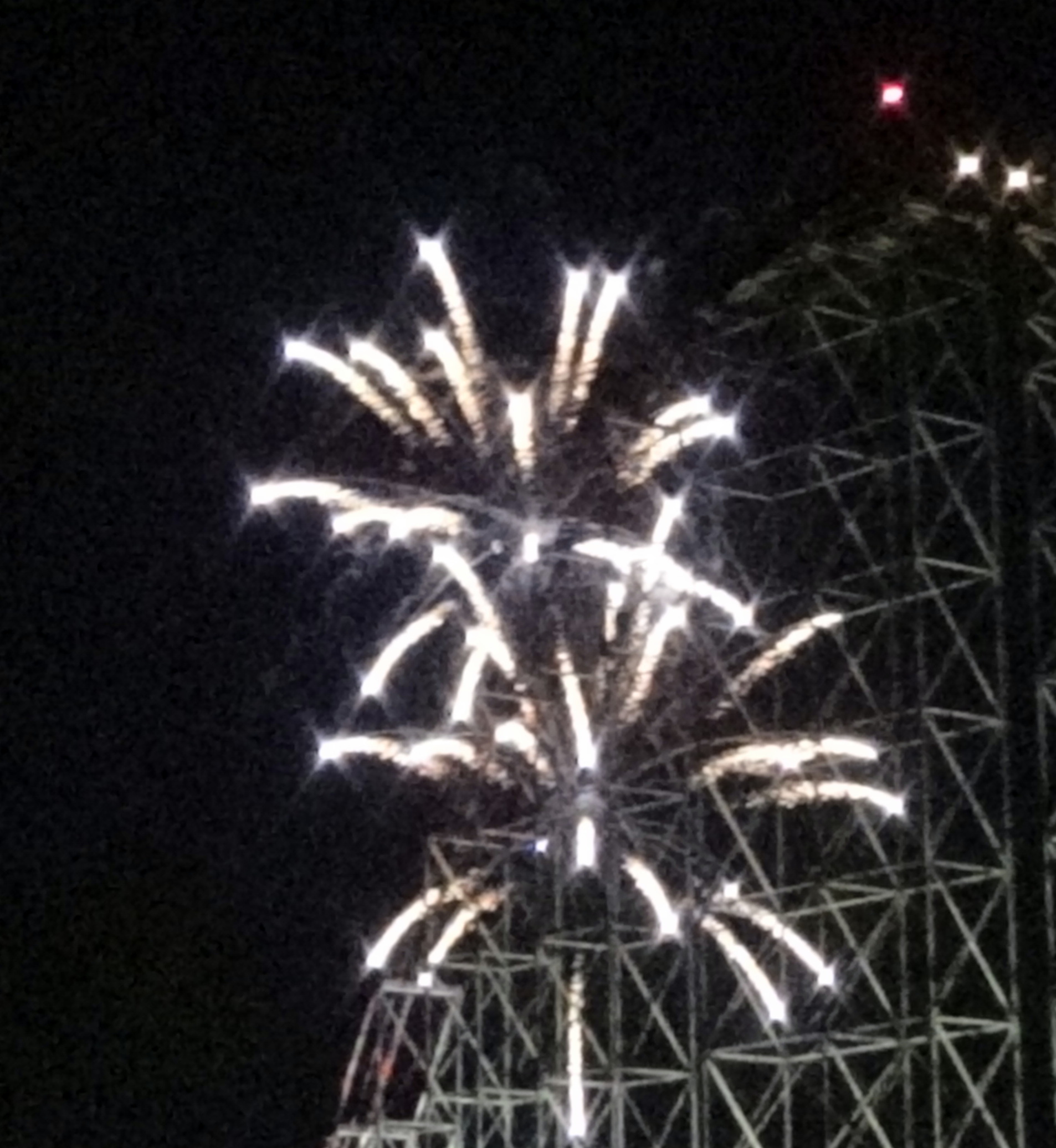 Today I am giving a large gallery of fireworks photos. Worlds of Fun had a good 20 minutes fireworks show. Then it took us 40 minutes to get out of the parking lot, 30 of them standing perfectly still in the same spot. Some people with SUV type vehicles started driving over the curb and across the grass to get out of the line we were stuck in.