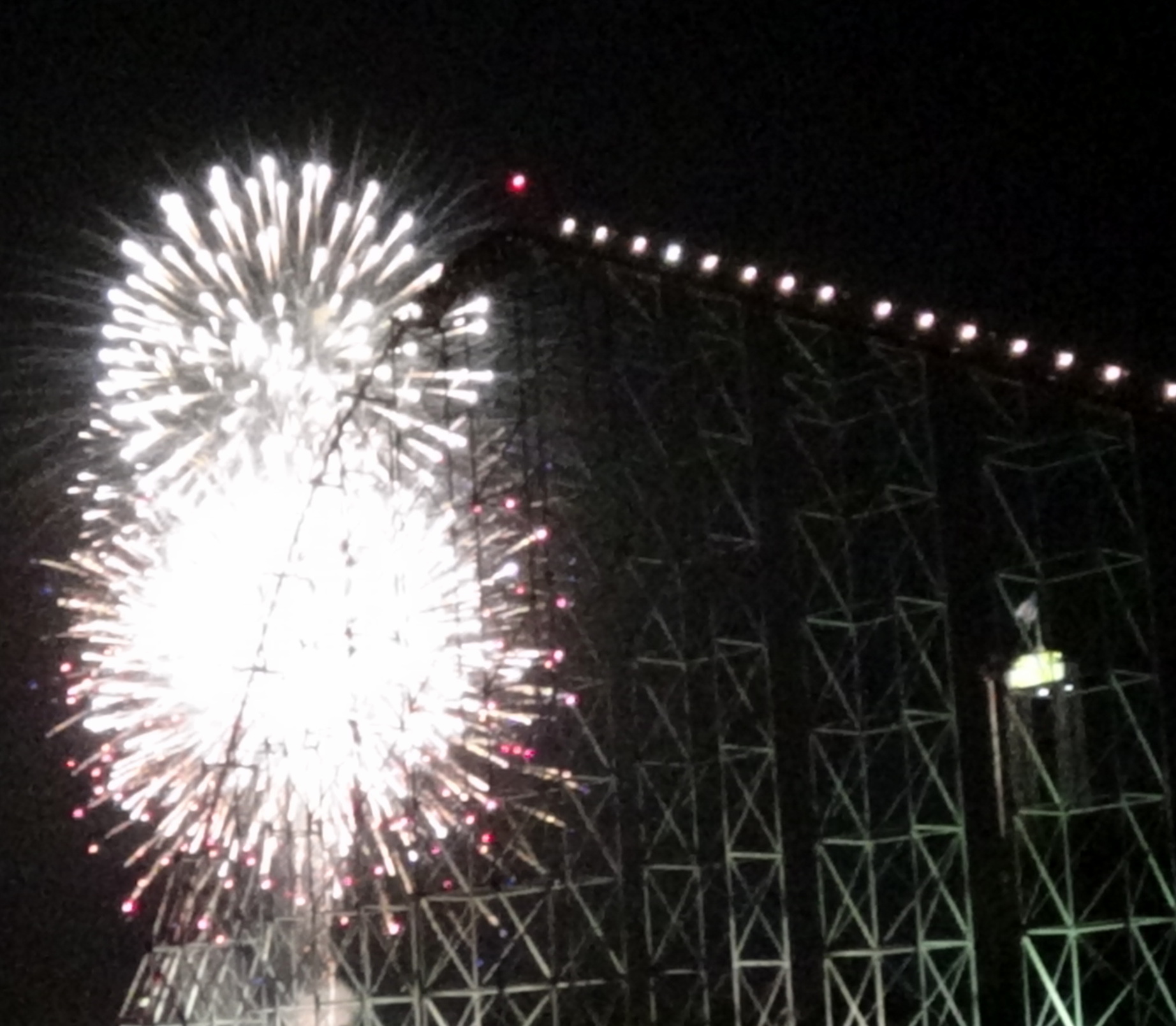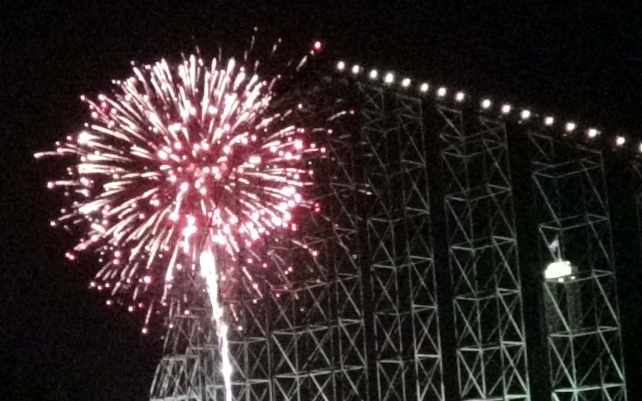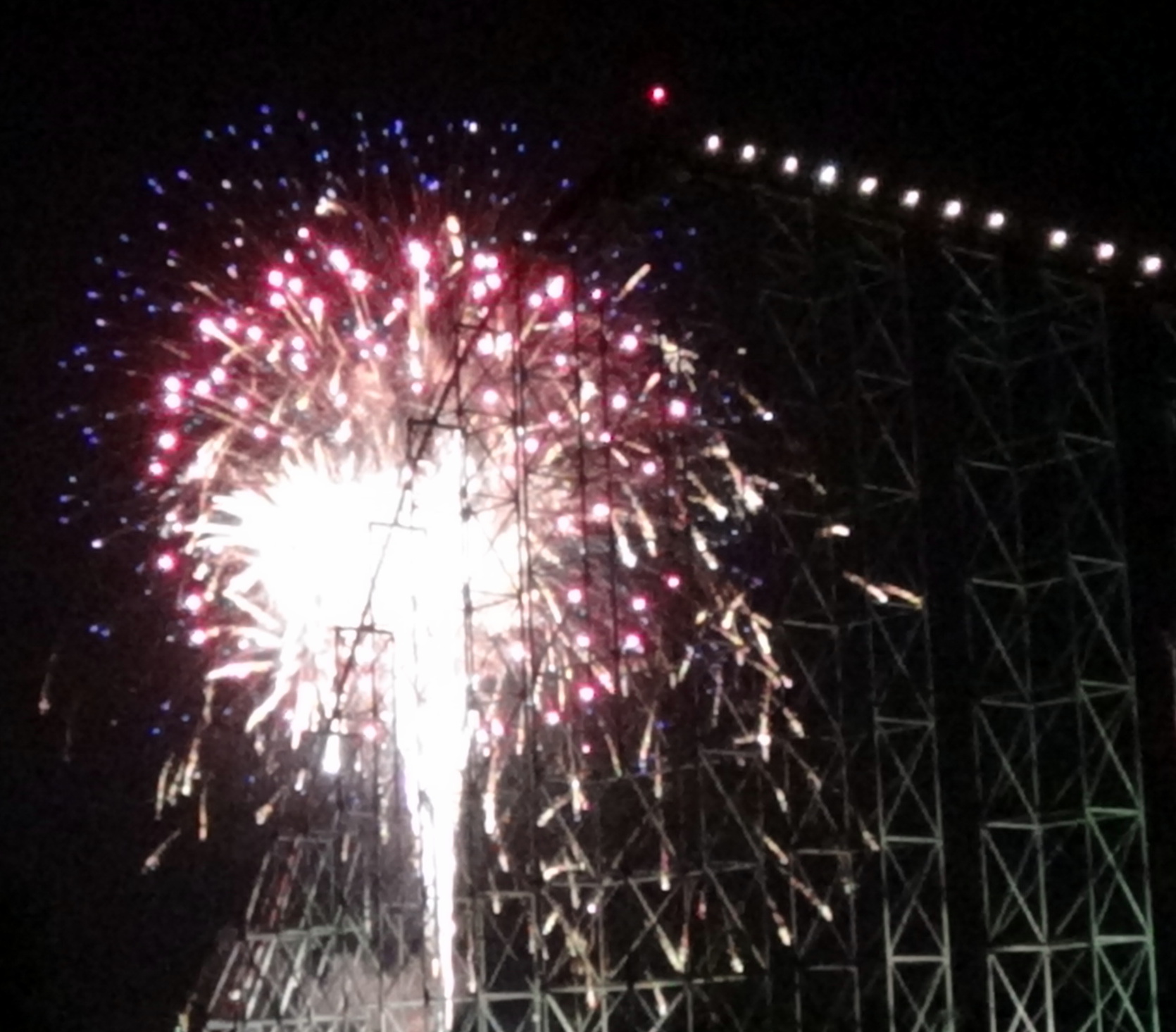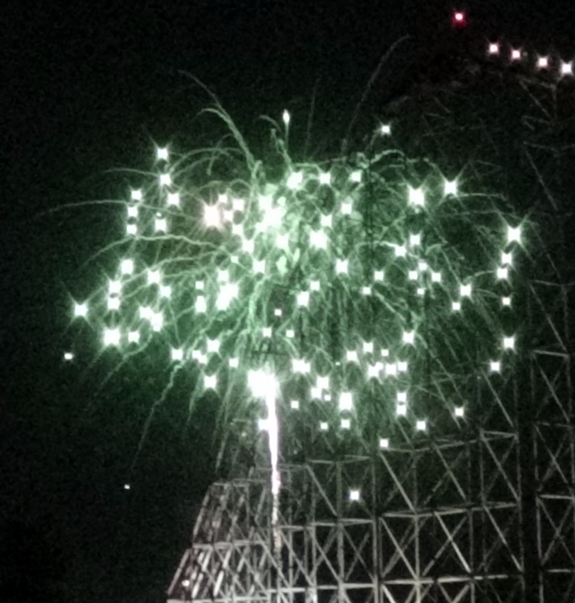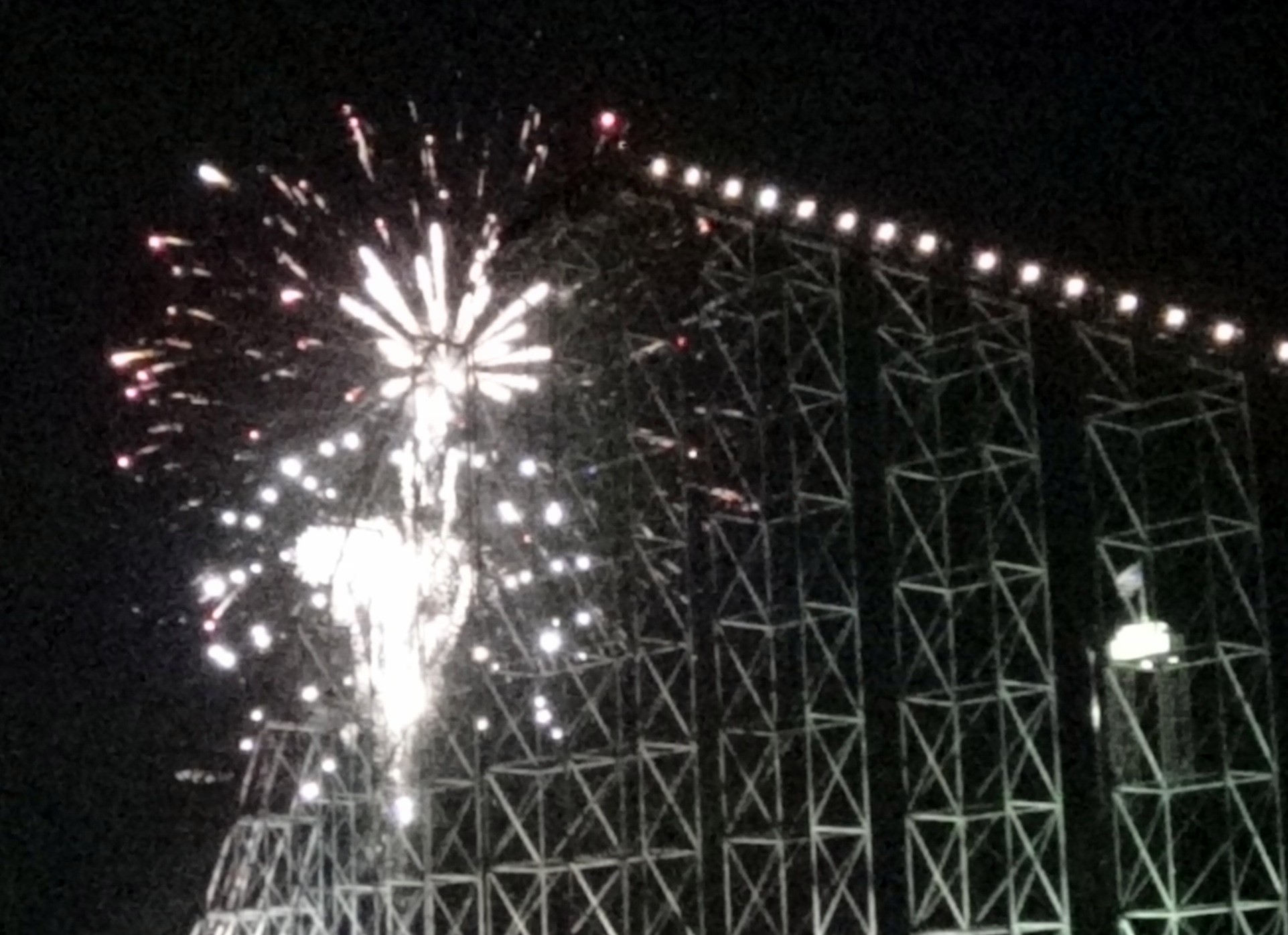 Today I am giving a large gallery of fireworks photos. Worlds of Fun had a good 20 minutes fireworks show. Then it took us 40 minutes to get out of the parking lot, 30 of them standing perfectly still in the same spot. Some people with SUV type vehicles started driving over the curb and across the grass to get out of the line we were stuck in.