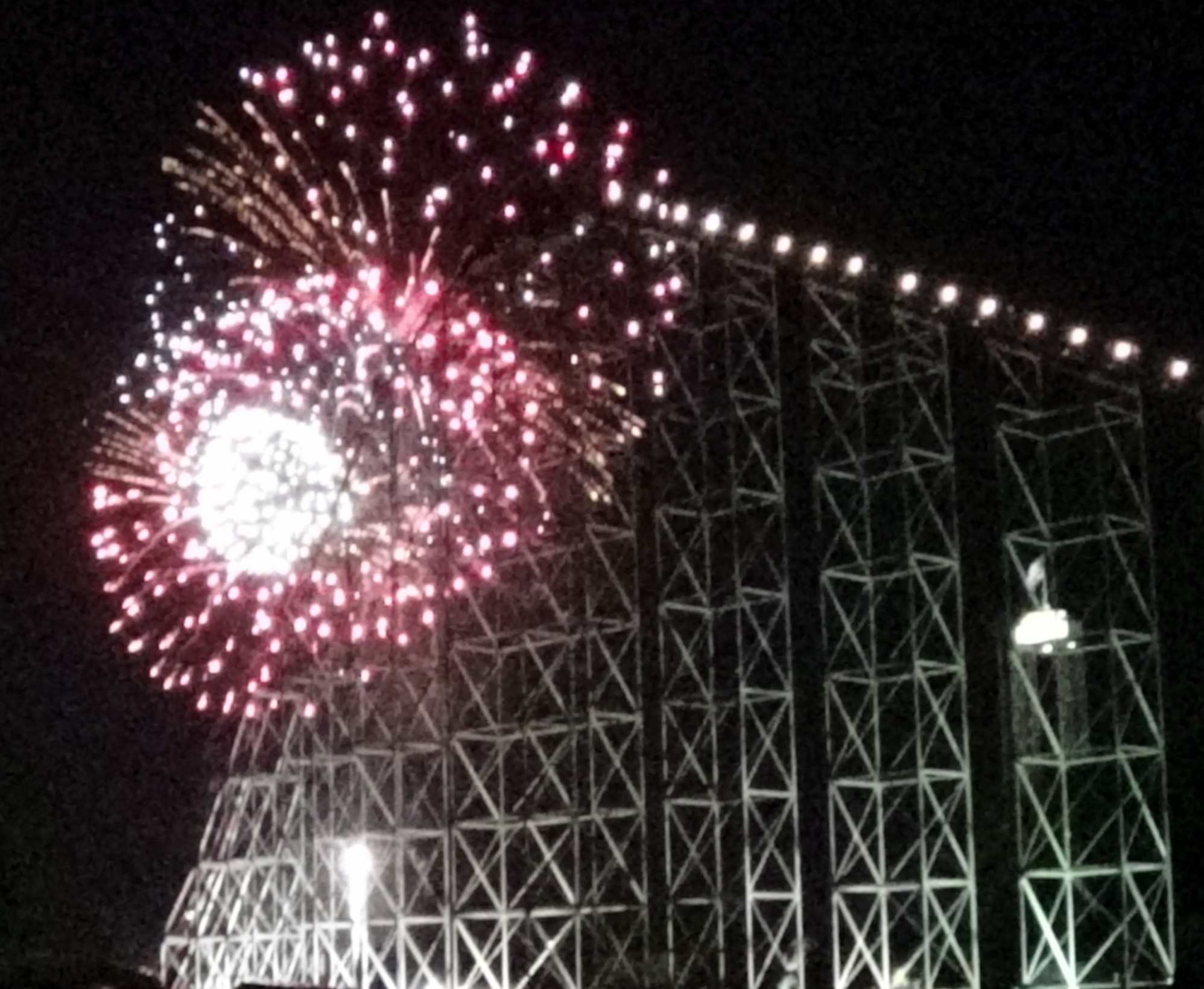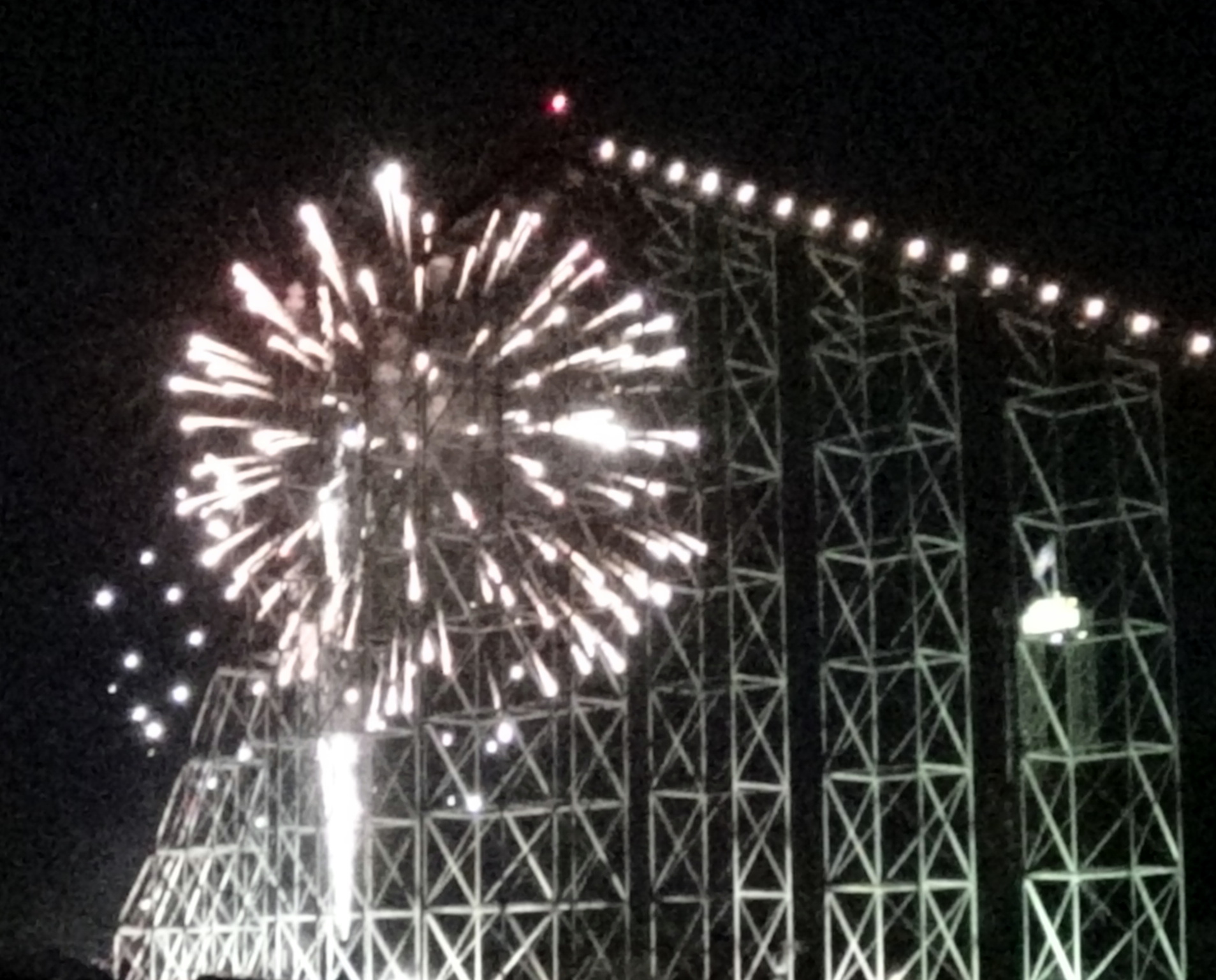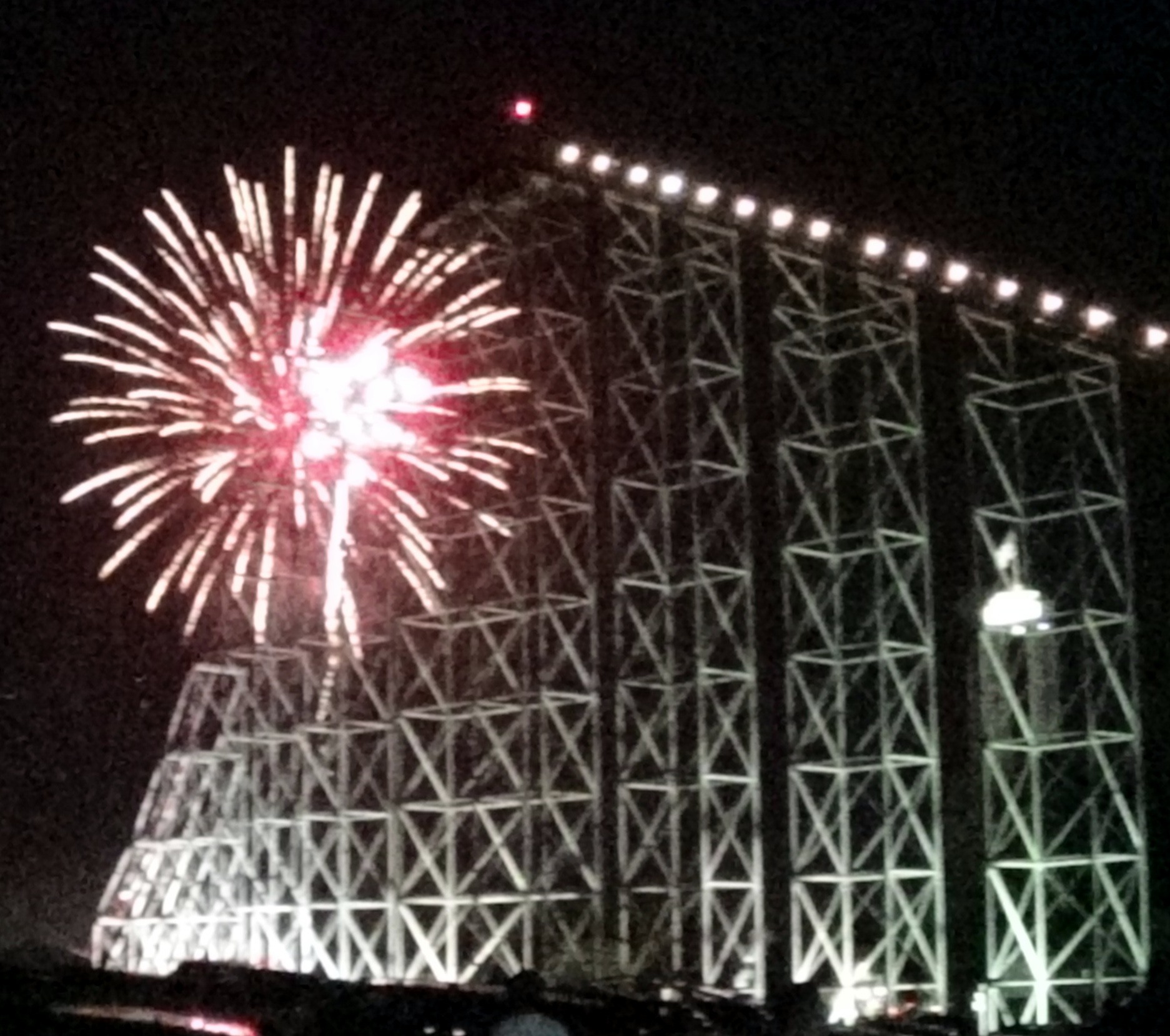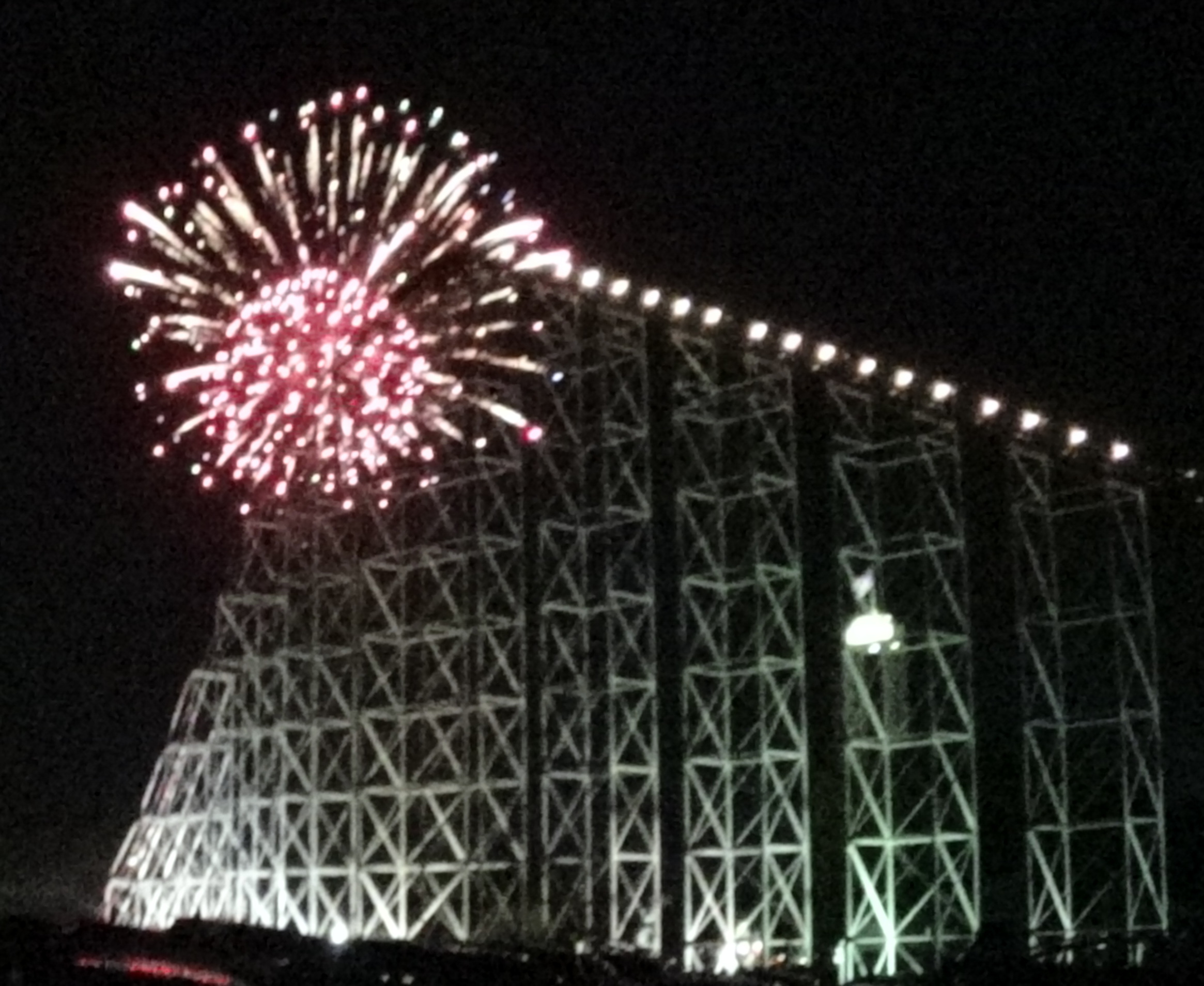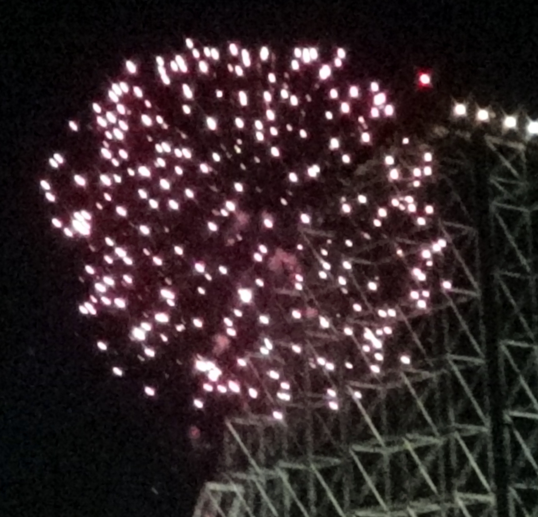 Today I am giving a large gallery of fireworks photos. Worlds of Fun had a good 20 minutes fireworks show. Then it took us 40 minutes to get out of the parking lot, 30 of them standing perfectly still in the same spot. Some people with SUV type vehicles started driving over the curb and across the grass to get out of the line we were stuck in.