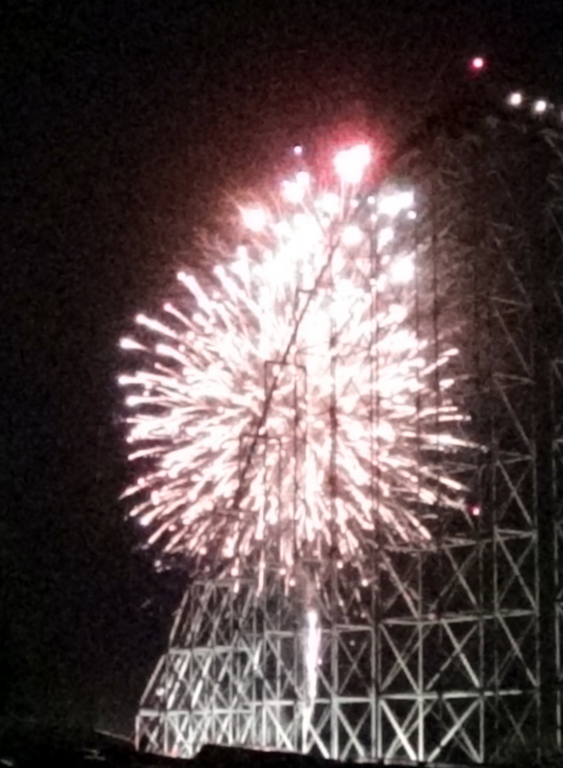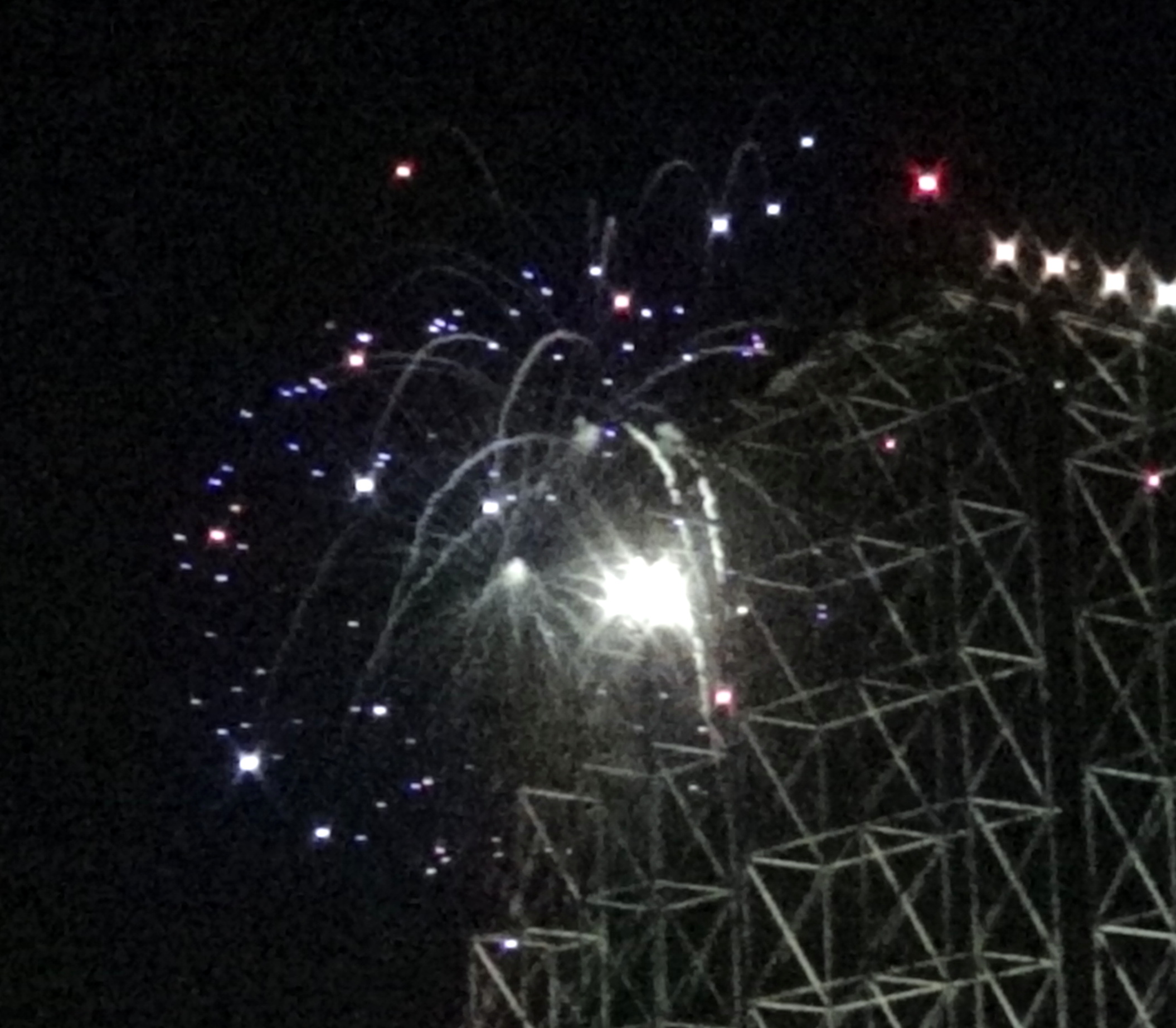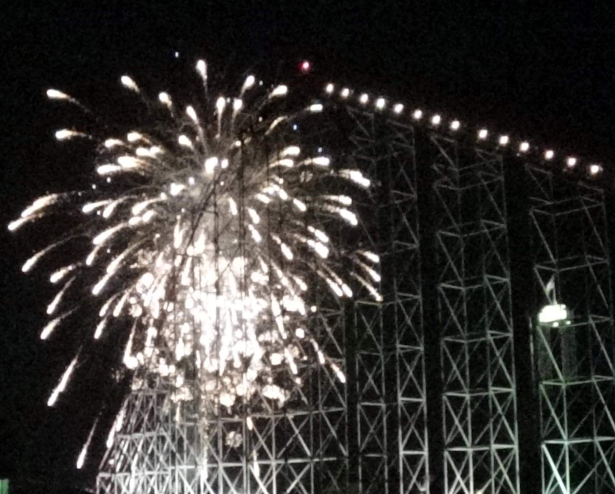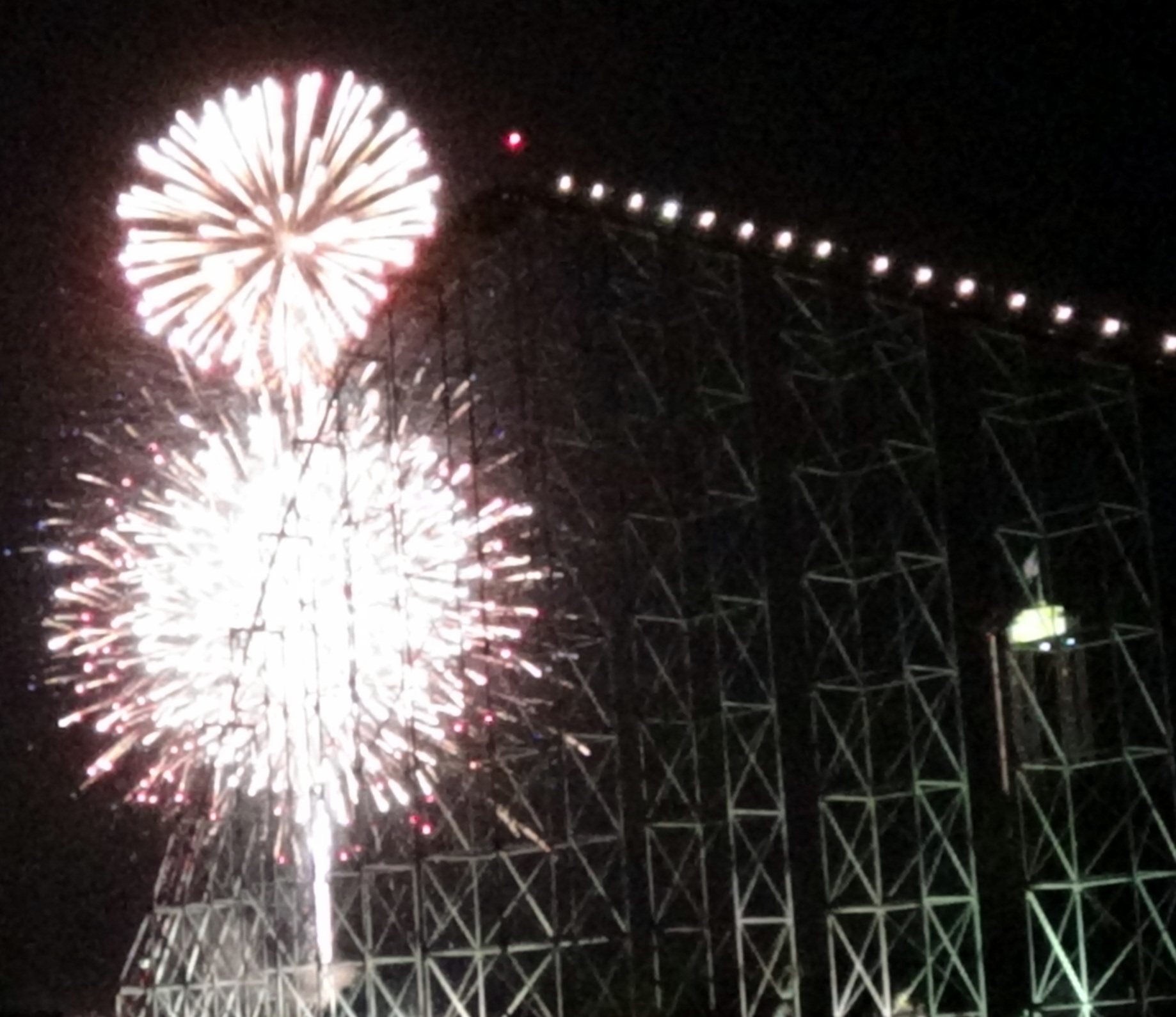 Today I am giving a large gallery of fireworks photos. Worlds of Fun had a good 20 minutes fireworks show. Then it took us 40 minutes to get out of the parking lot, 30 of them standing perfectly still in the same spot. Some people with SUV type vehicles started driving over the curb and across the grass to get out of the line we were stuck in.