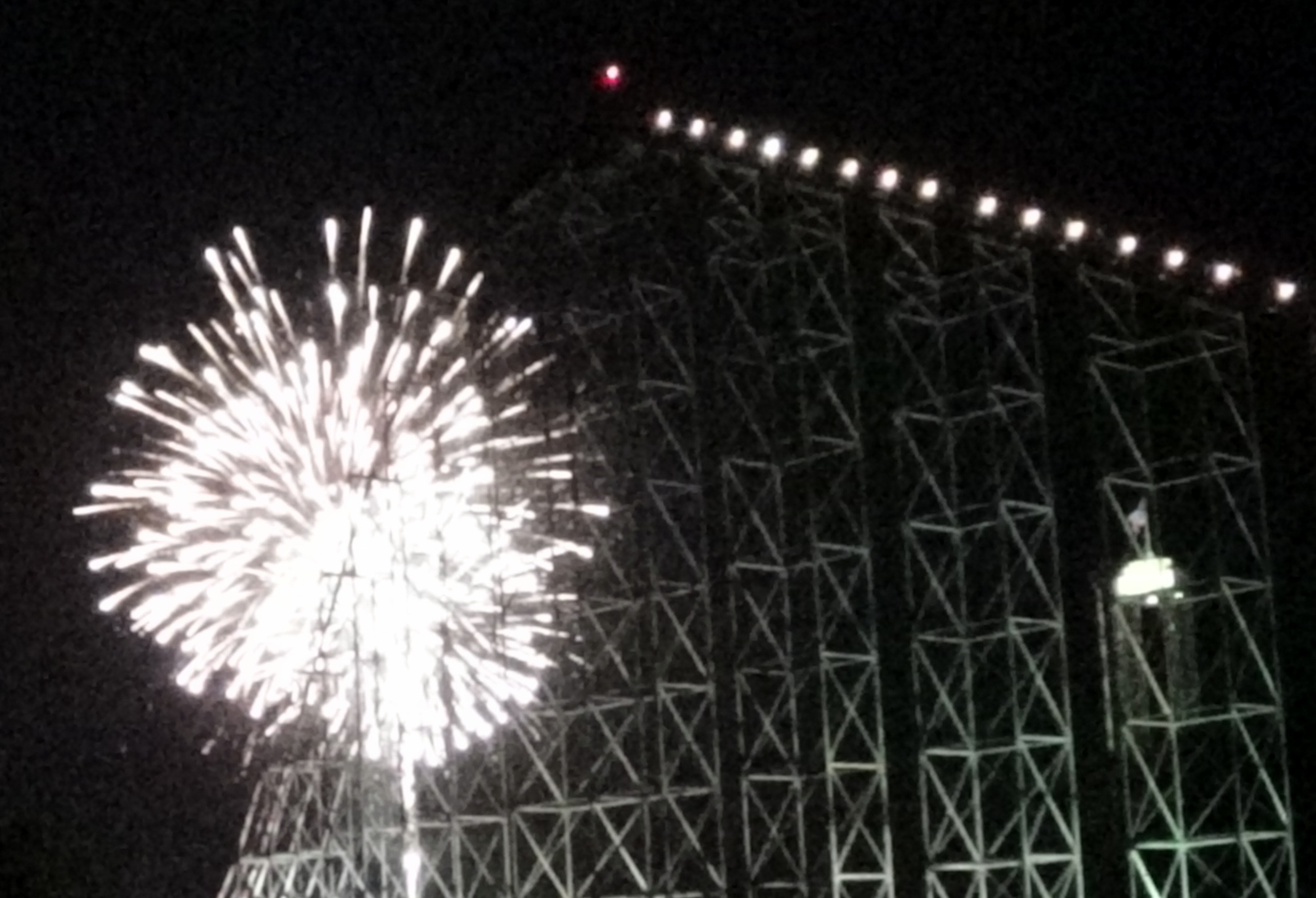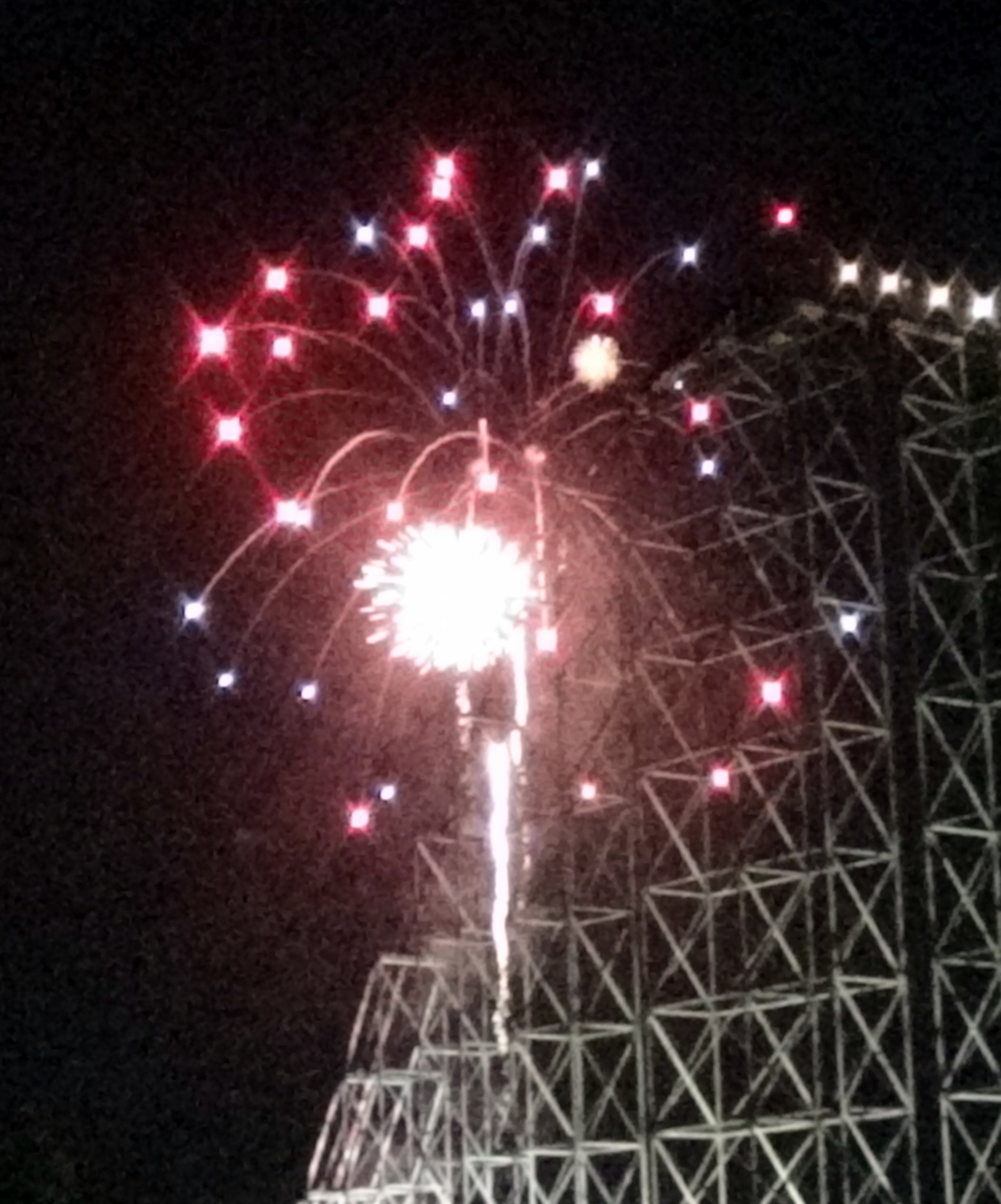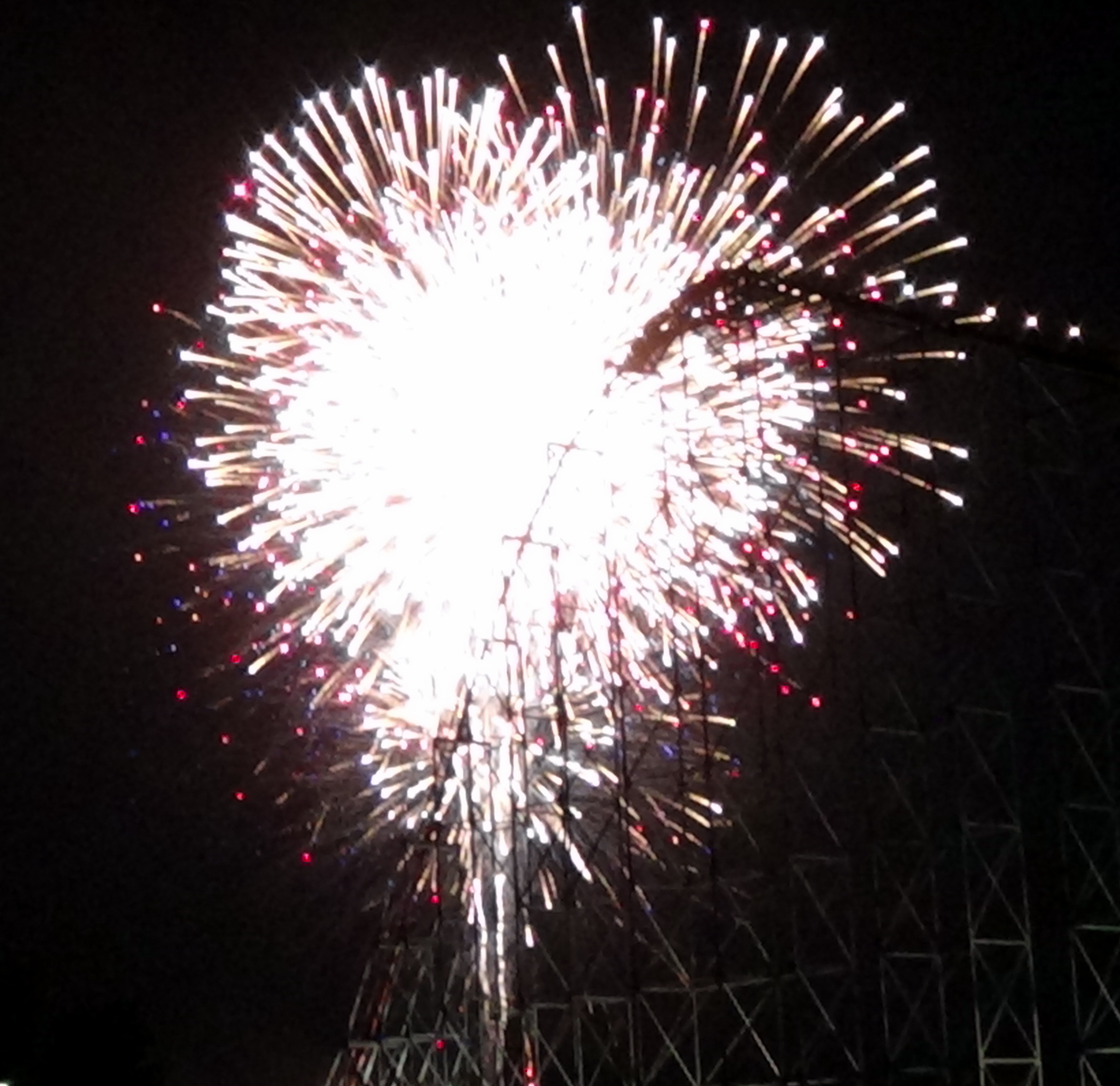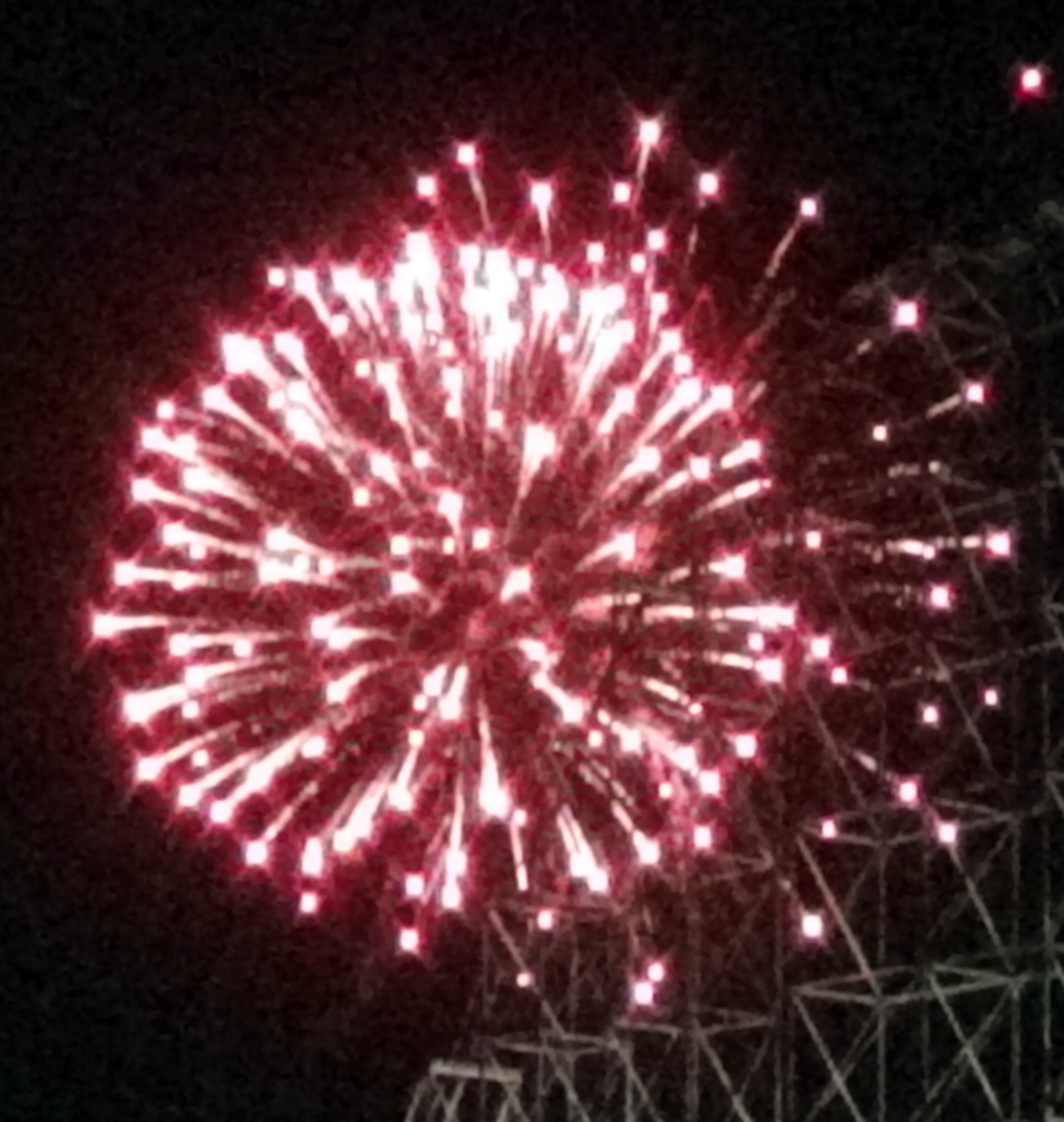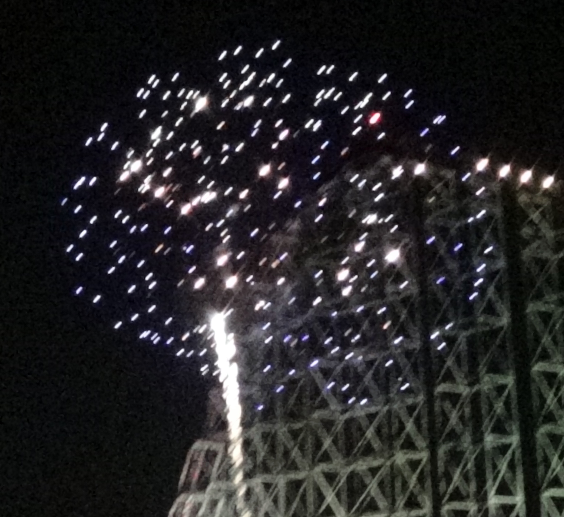Today I am giving a large gallery of fireworks photos. Worlds of Fun had a good 20 minutes fireworks show. Then it took us 40 minutes to get out of the parking lot, 30 of them standing perfectly still in the same spot. Some people with SUV type vehicles started driving over the curb and across the grass to get out of the line we were stuck in.