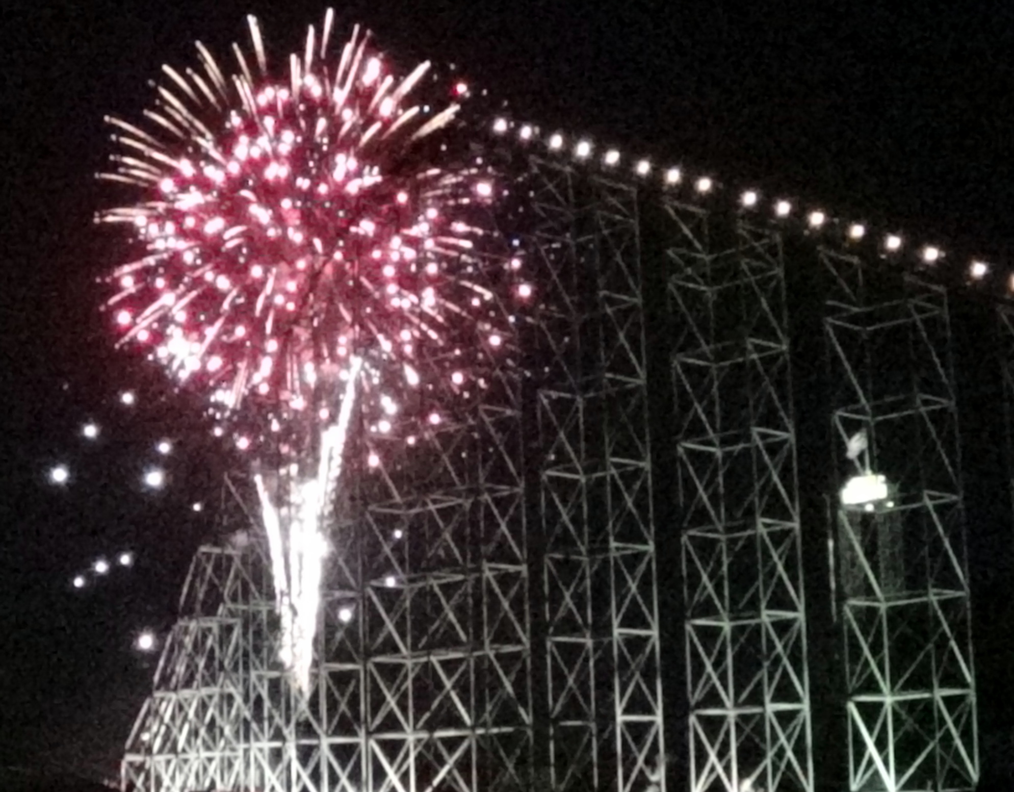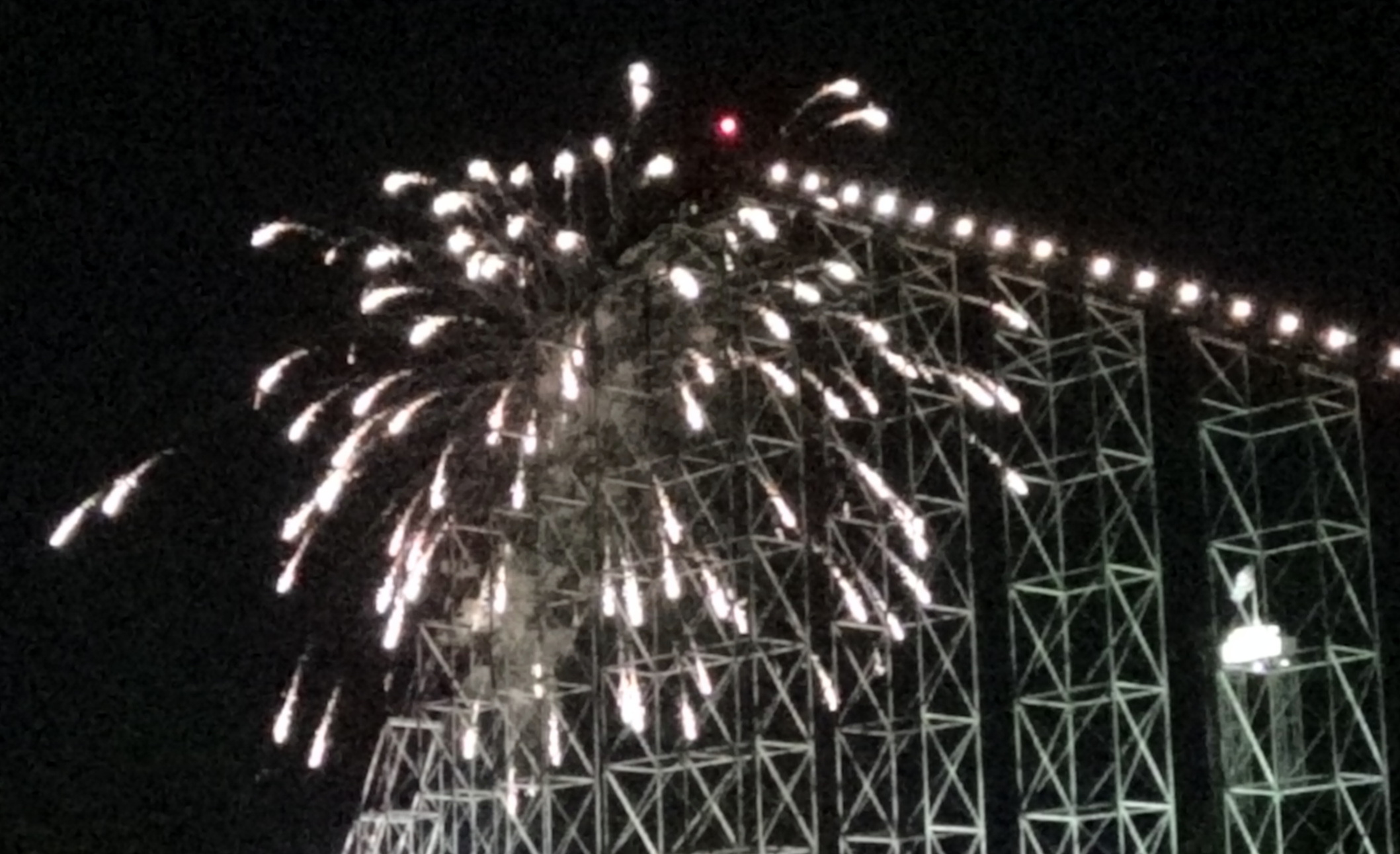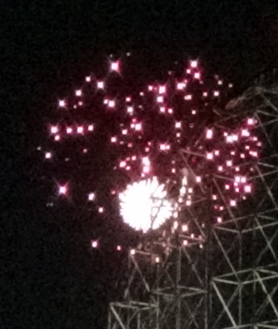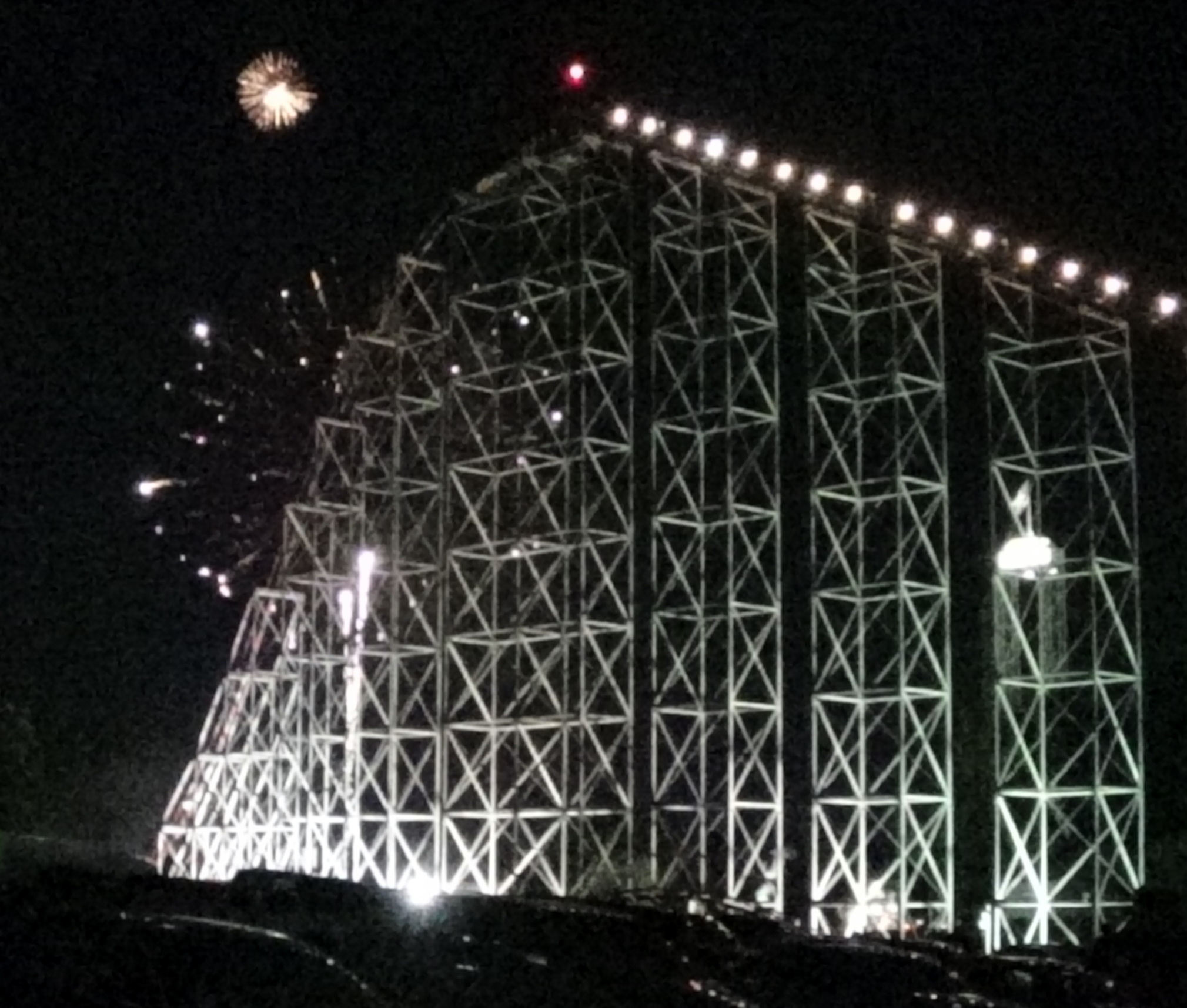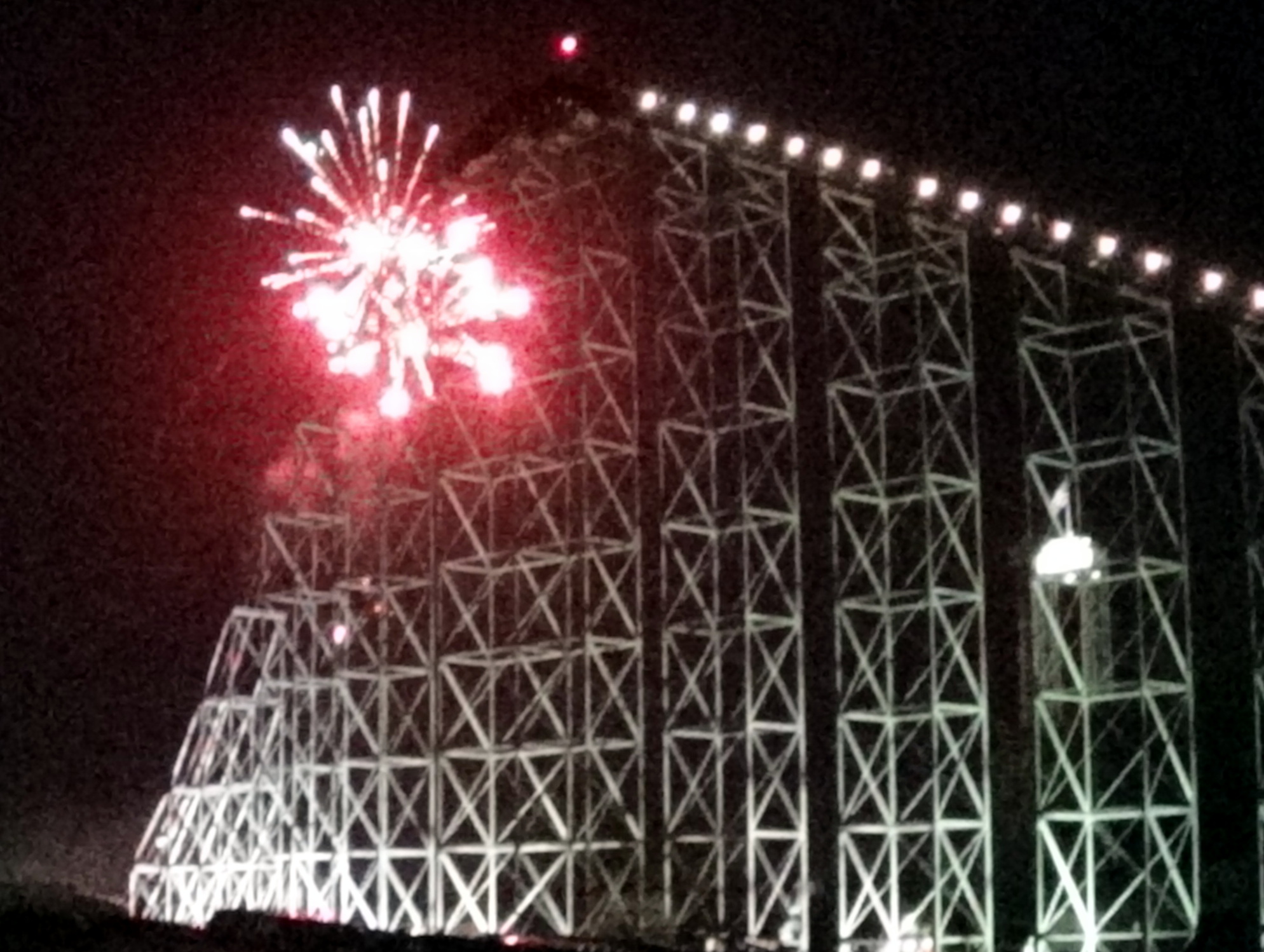 Today I am giving a large gallery of fireworks photos. Worlds of Fun had a good 20 minutes fireworks show. Then it took us 40 minutes to get out of the parking lot, 30 of them standing perfectly still in the same spot. Some people with SUV type vehicles started driving over the curb and across the grass to get out of the line we were stuck in.