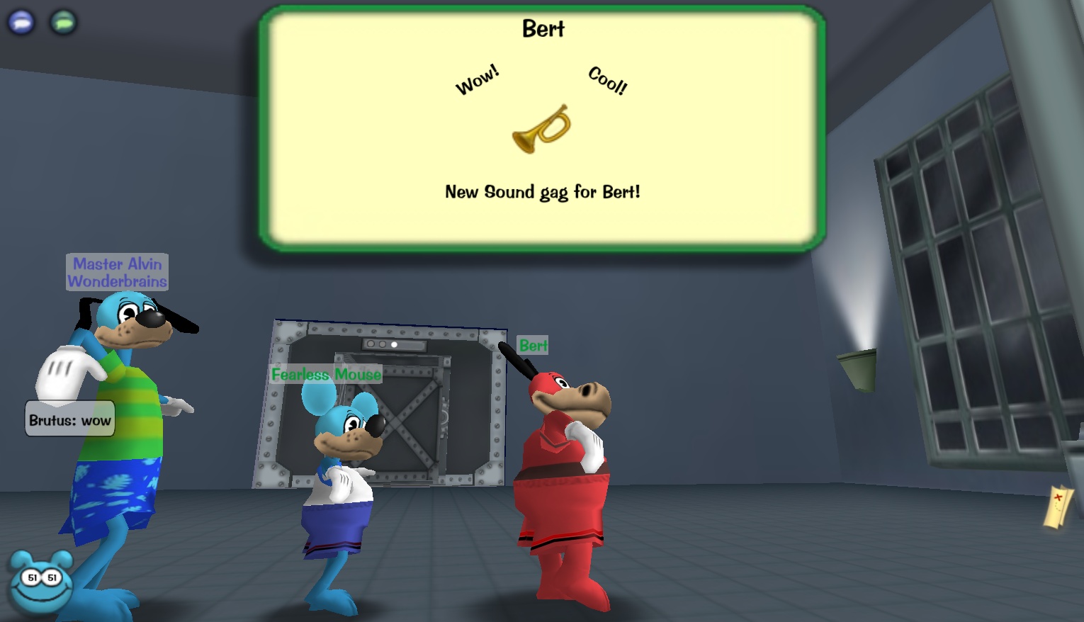 So here are a few screenshots from Toontown Rewritten. The first from tonight, others from other times. All of them for the characters belonging to others that I helped achieve new levels: