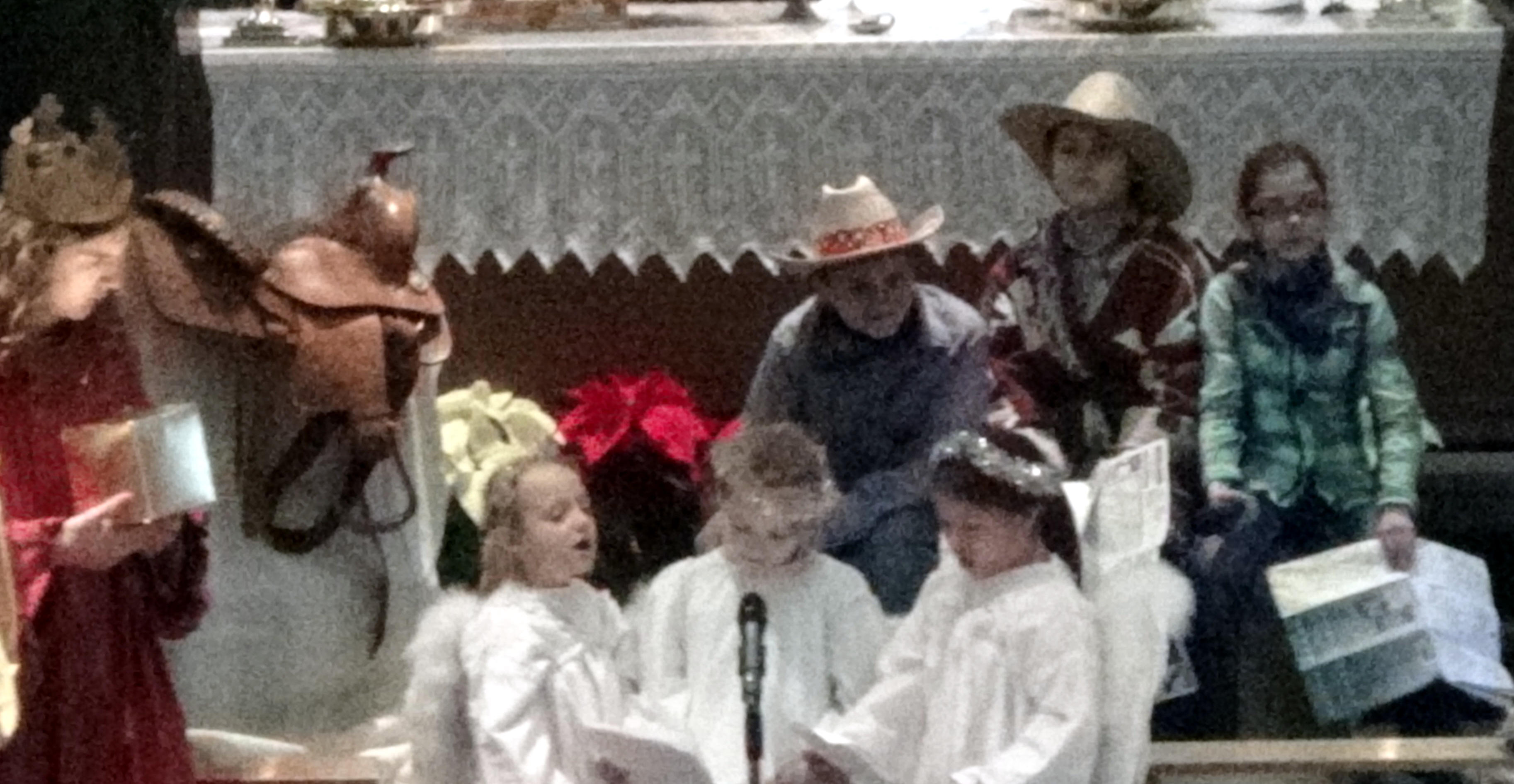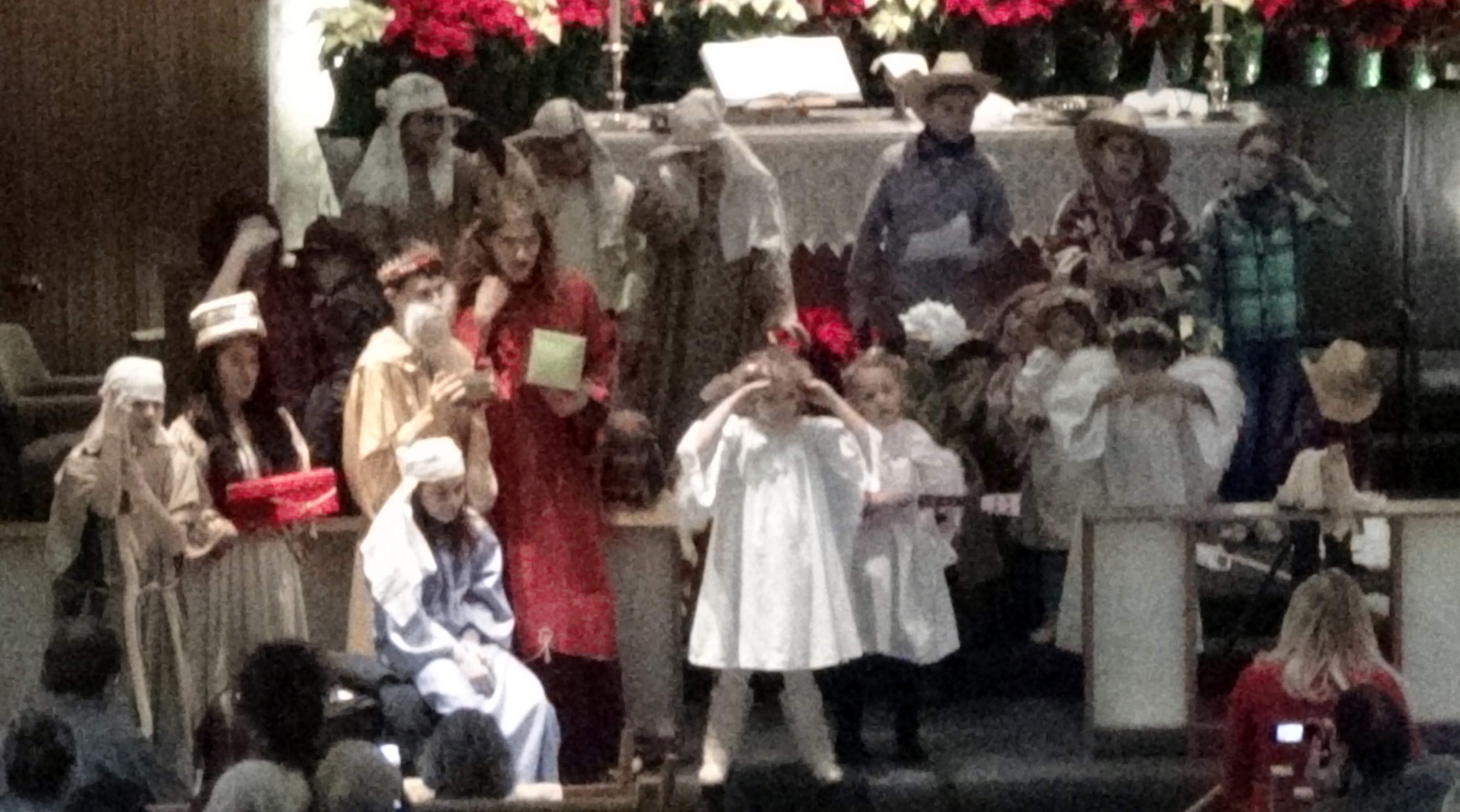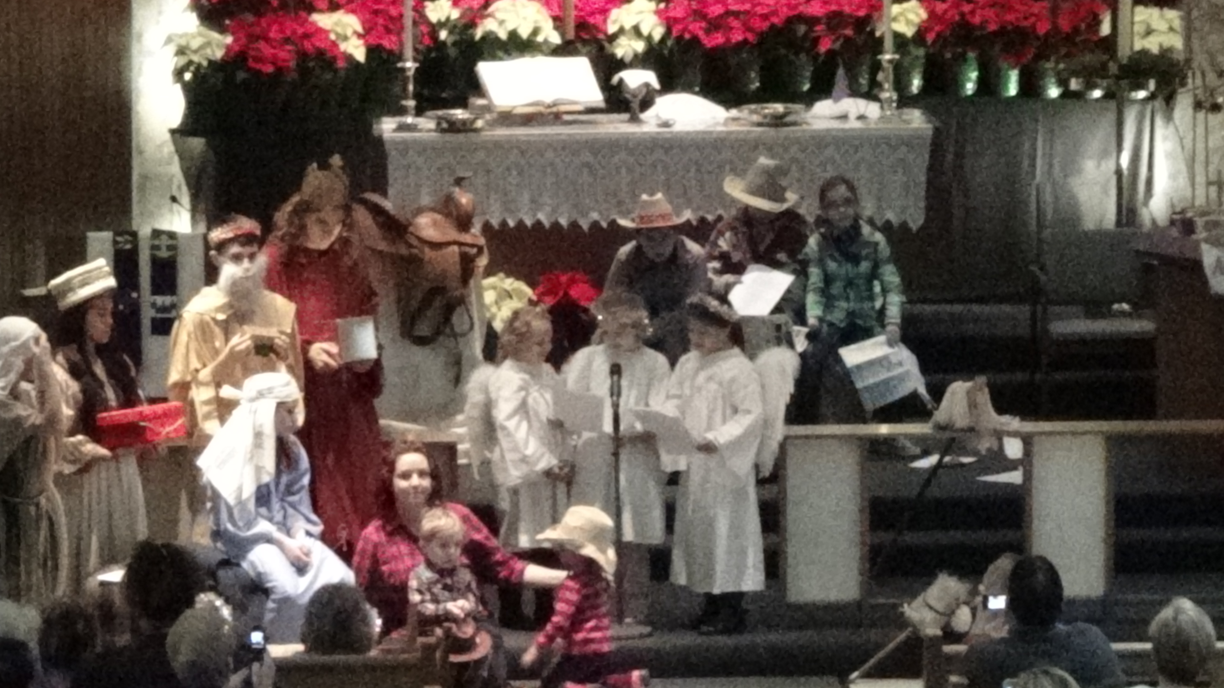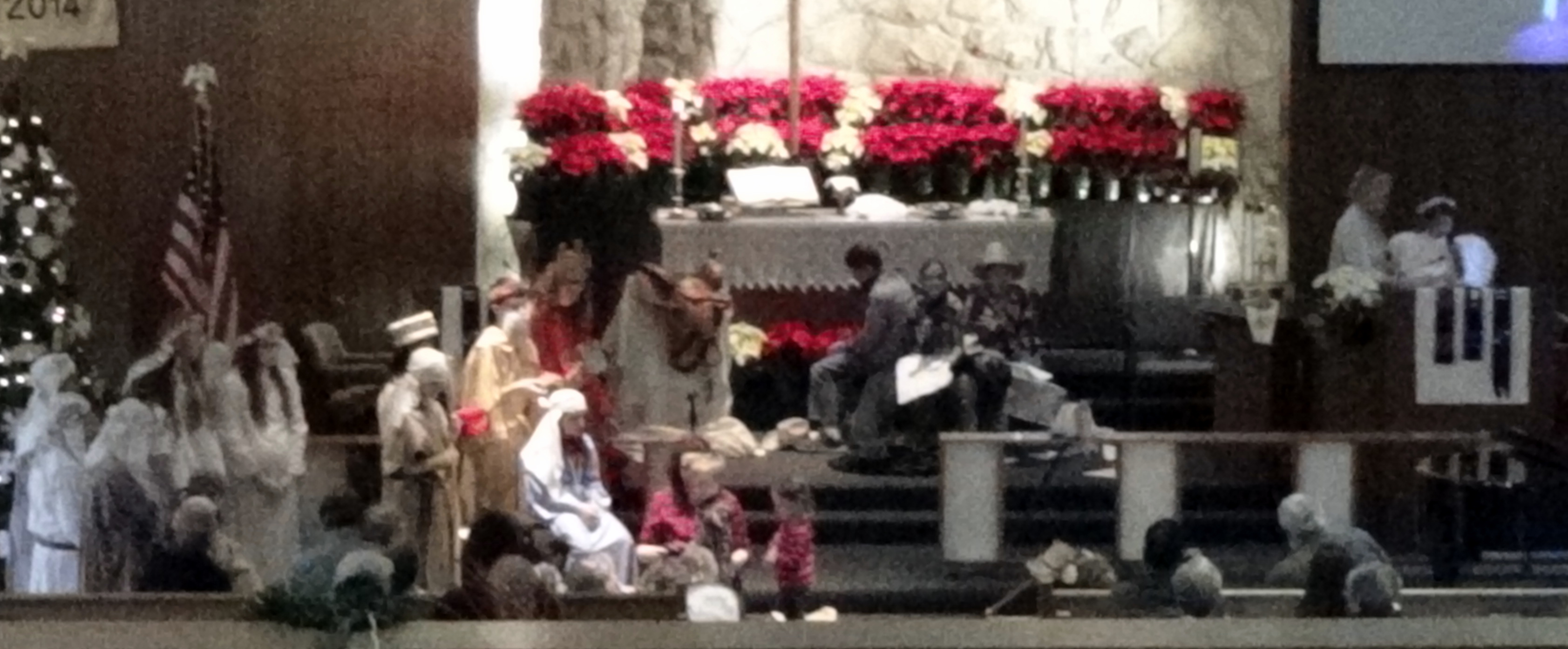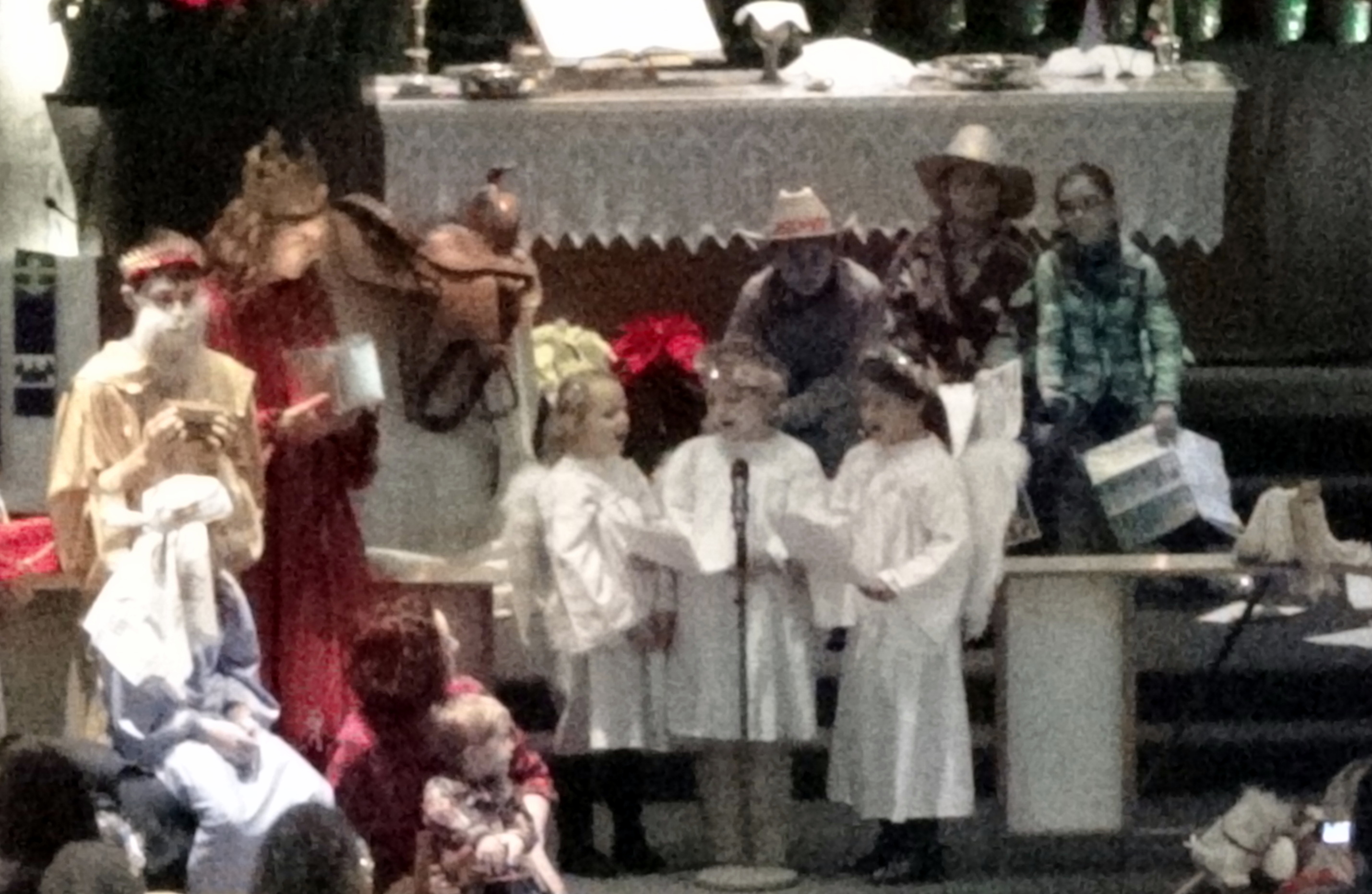 Today’s post is just a compilation of some blurry pictures from our church children’s Christmas Pageant. The tall king in red with long hair is my son. Taking pictures with a hand-held camera from the choir loft requires a little more resolution than I was using to get the best pictures.