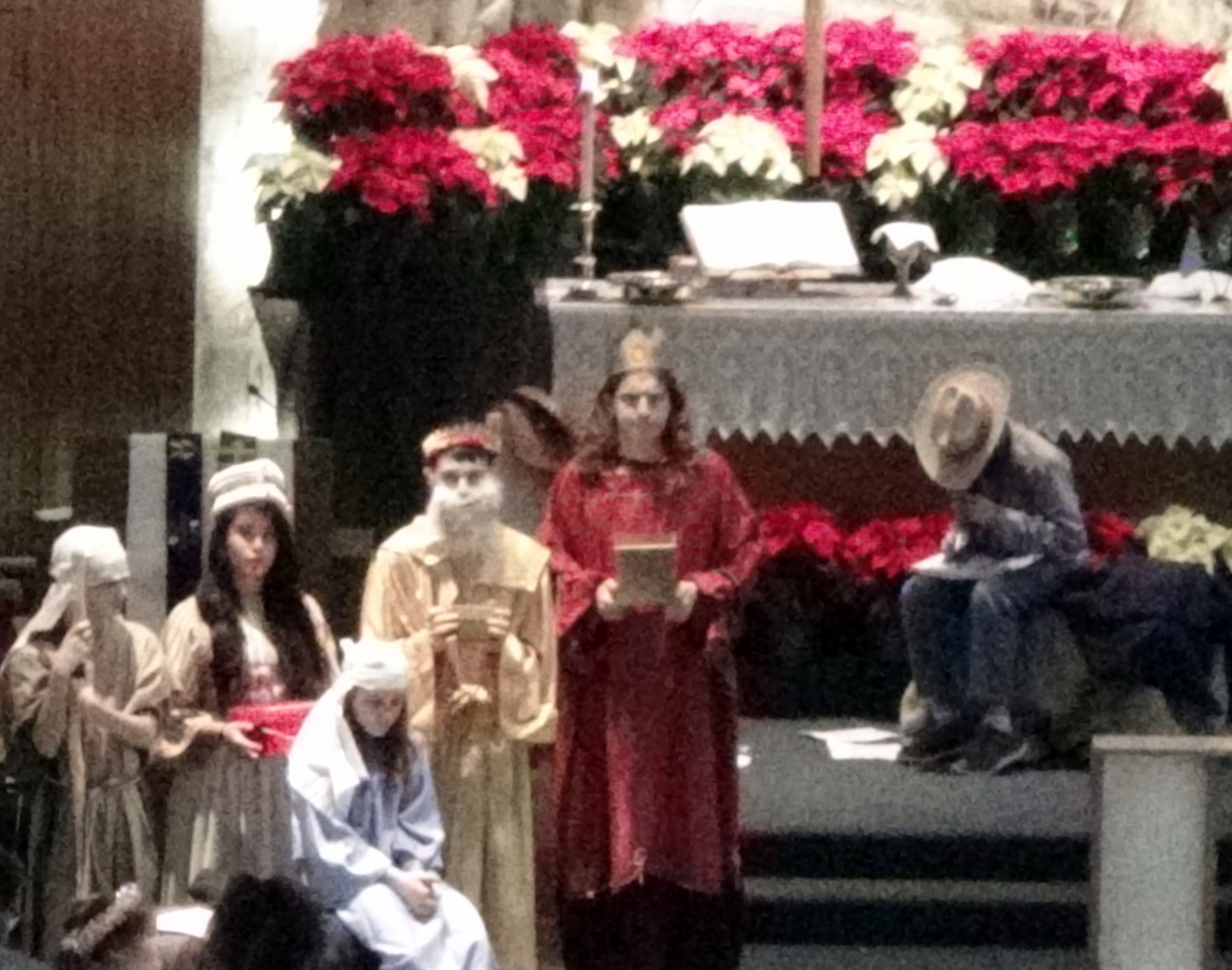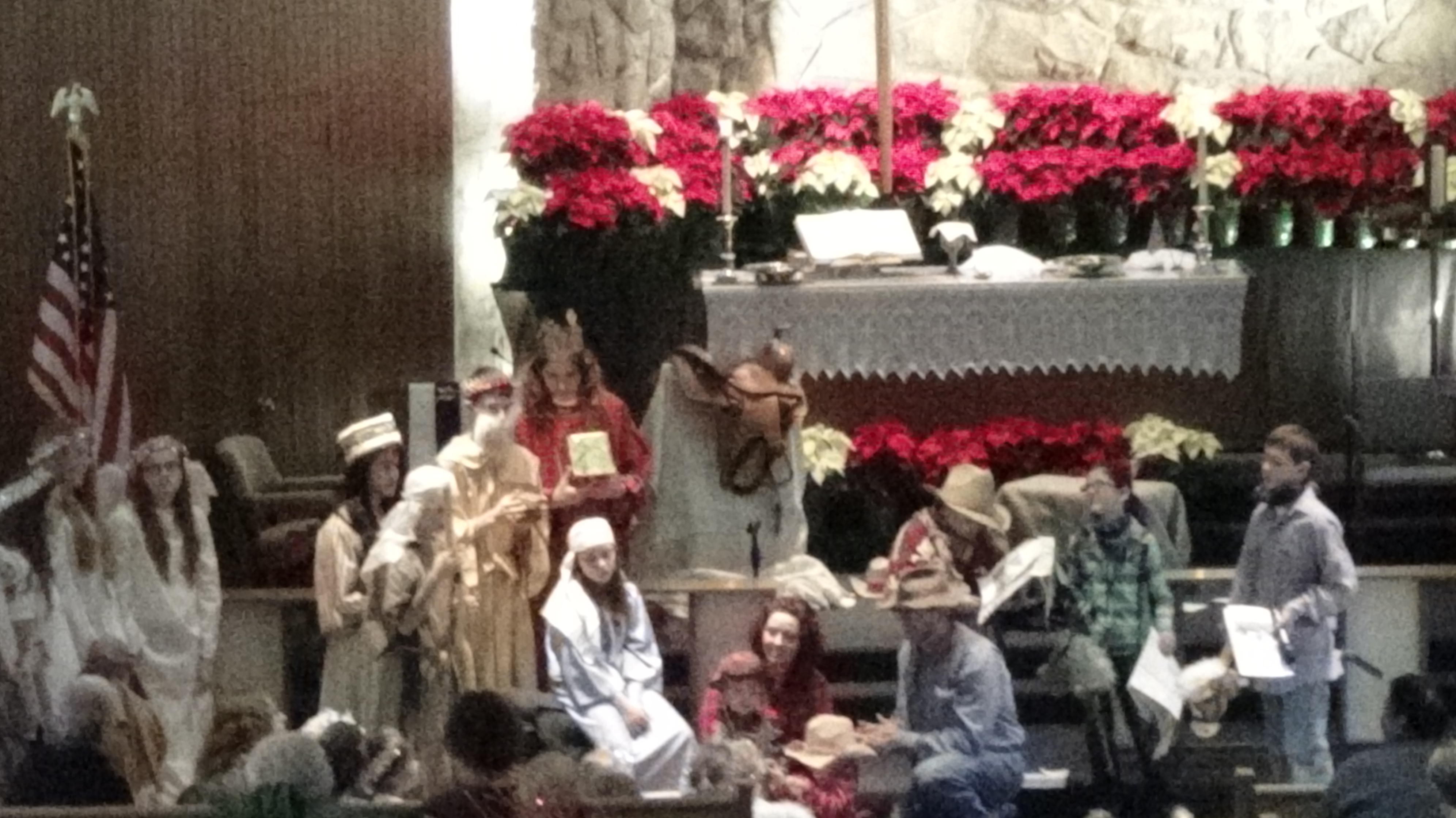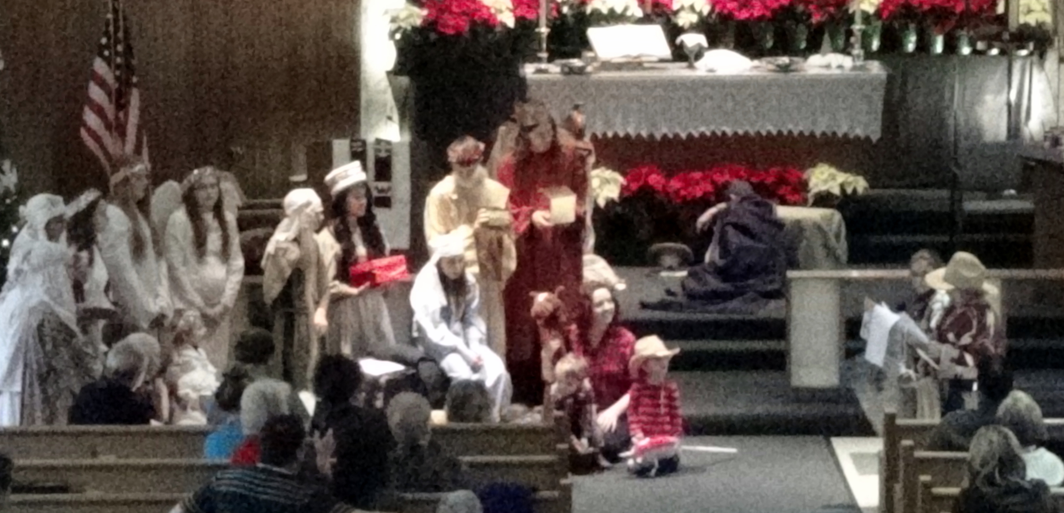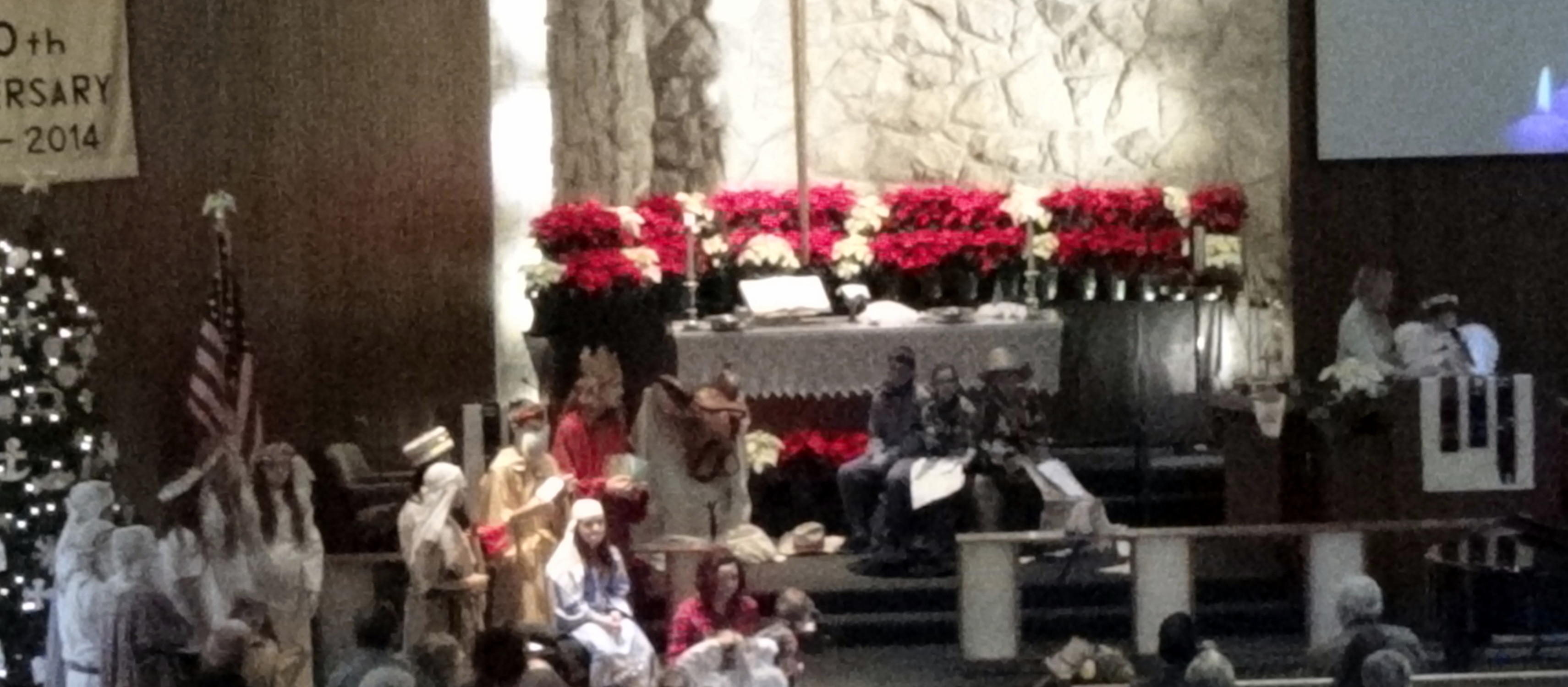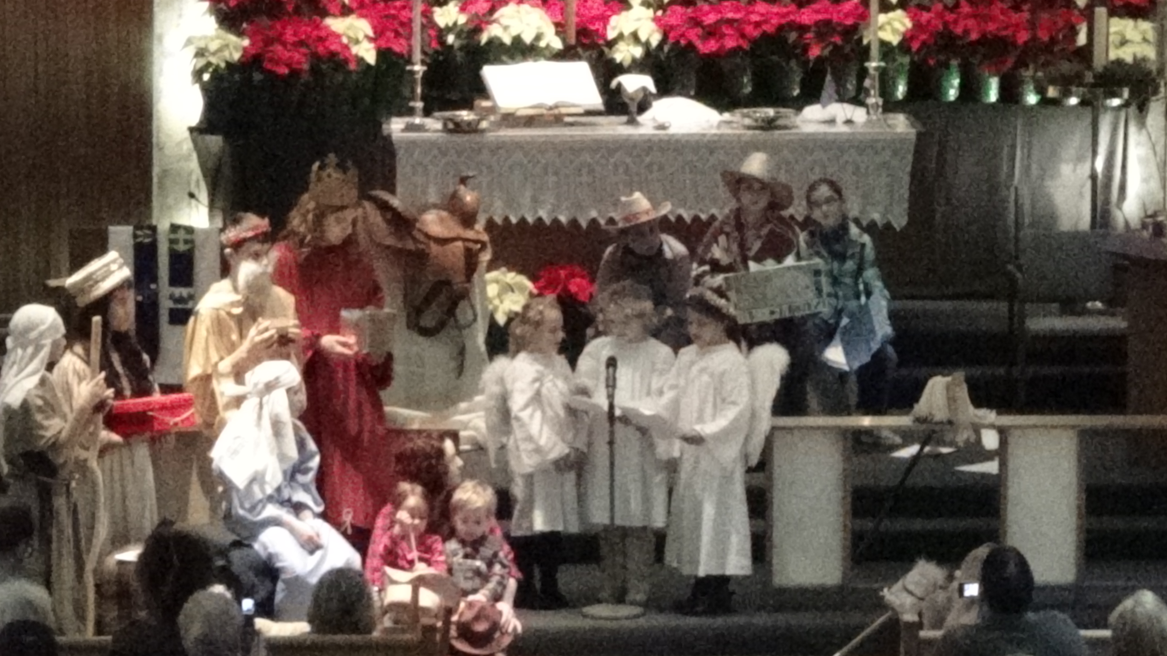 Today’s post is just a compilation of some blurry pictures from our church children’s Christmas Pageant. The tall king in red with long hair is my son. Taking pictures with a hand-held camera from the choir loft requires a little more resolution than I was using to get the best pictures.