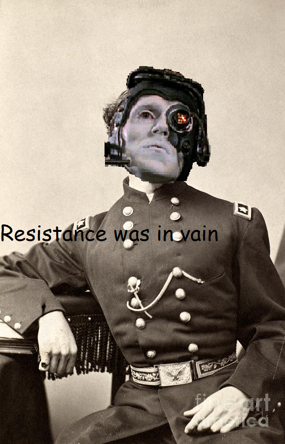 This final verse is the reason for the picture at the top of the post. Sherman’s army cut its “thoroughfare for Freedom” 60 miles wide and 300 miles long to stamp out Southern Treason. The boast of the song is an echo of a now famous statement from the Star Trek franchise: “Resistance is Futile.” Though in the Civil War it takes the more quaint phrasing “resistance was in vain.”