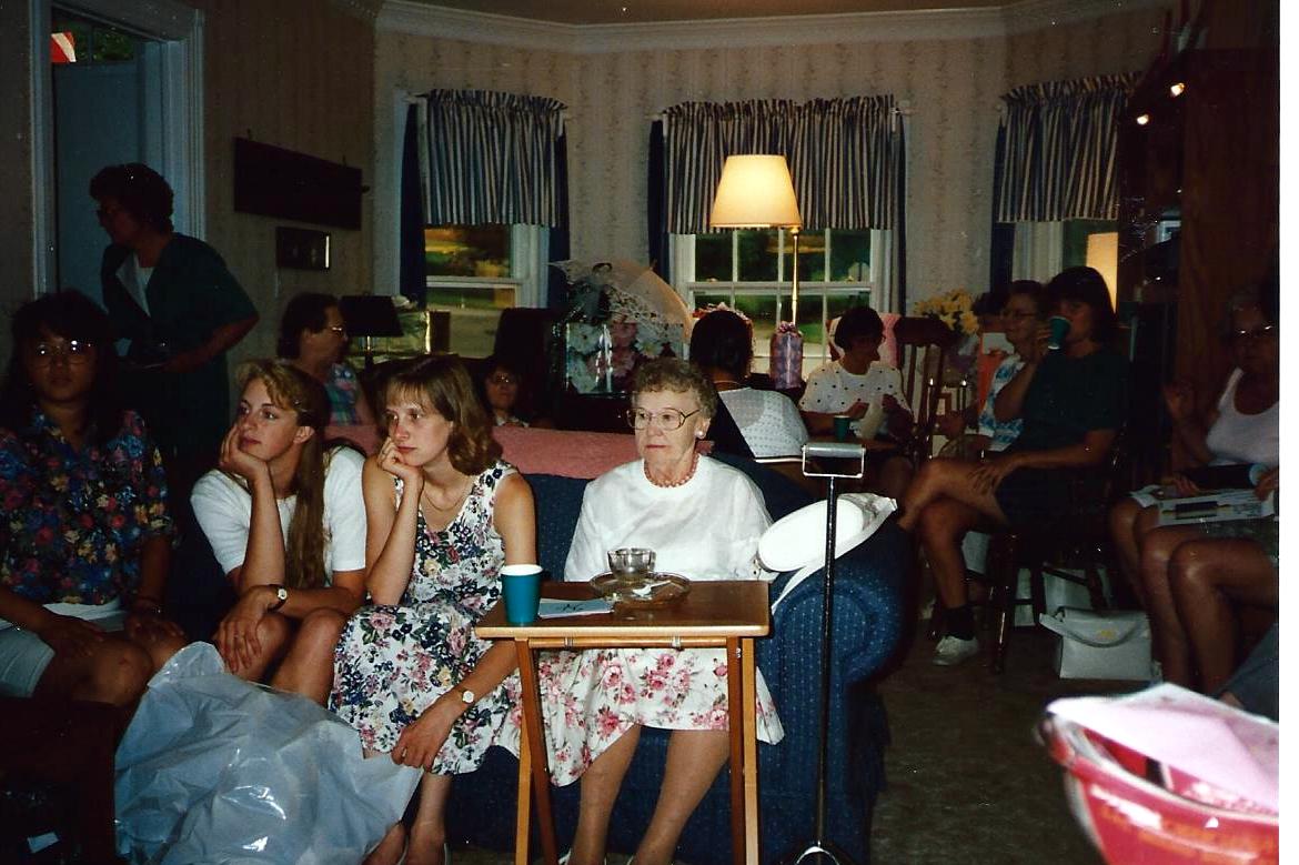 Here is another blast of the past. These pictures come from Corning, in 1995. I was living there with my family, and Betsy, then my fiance’ was living in Missouri. But the ladies of North Baptist Church banded together and put on a shower for her anyway, while she visited that summer.