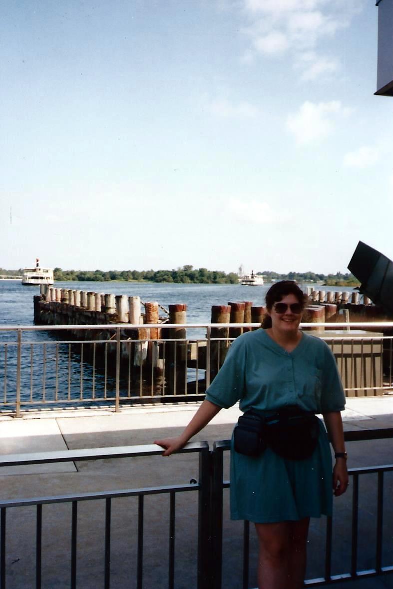 So below are two pictures taken that I have decided to show side-by-side, since the settings are very similar. When I look at the picture of me here, on the dock, I think about how much I liked that shirt, and how I haven’t been able to find one similar to it since. When I look at the picture of Betsy, I think how good she looks, and how she needs to have more outfits like that today, to show off how good she looks — hard to find those flattering fashions for her today, like it is hard to find the things I used to like.