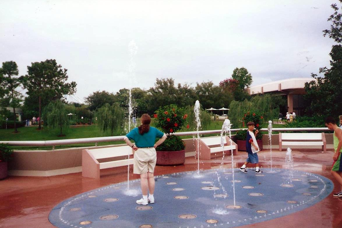One of the other persistent memories of the trip was Betsy playing in the water fountains — the ones where you jumped from place to place as the water sprayed up through the pavement in different patters. We did look for those, and still found them around, on the 2012 trip. Here below are a few pictures from the 1995 Honeymoon.