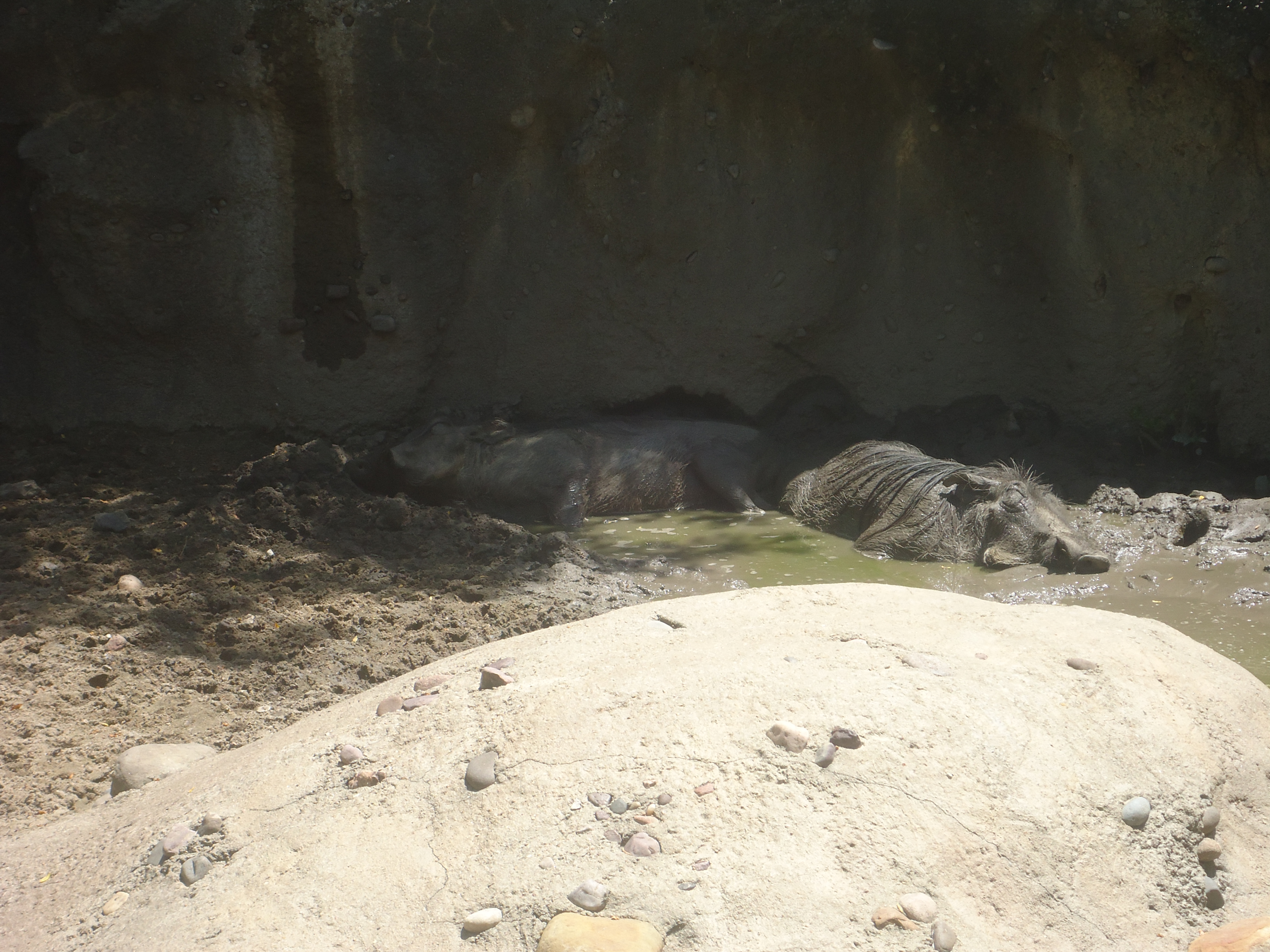 We saw various types of hogs, grazing animals, a cheetah, and then the iconic Wart Hog — burrowed into the mud, before coming back to the beginning of the Africa loop at the main plaza. Now we had to make another decision about where to go.