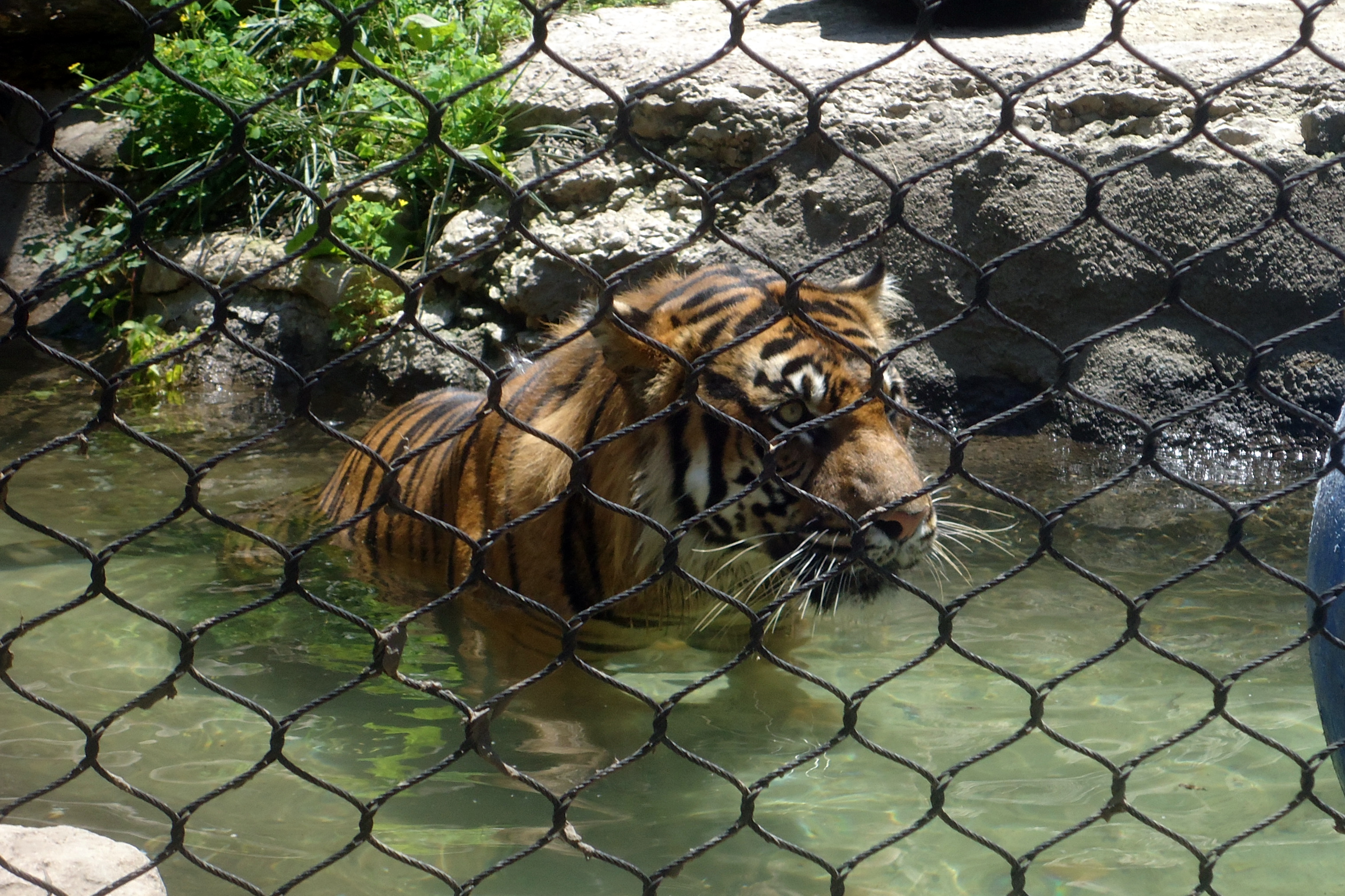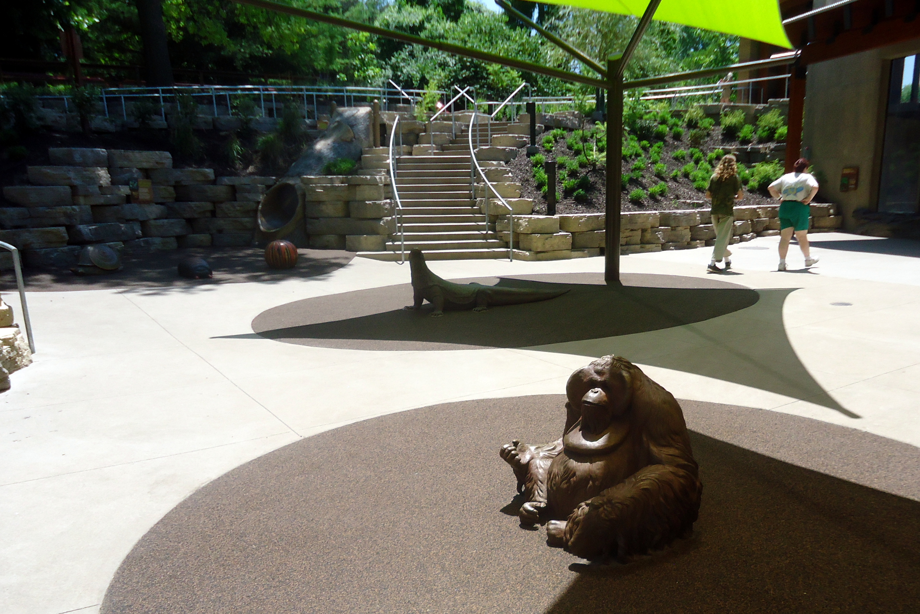 A new exhibit had opened on the Tiger Trail since Betsy and I had visited in April. The Tiger Trail used to have cages for the great tigers, but since they are going for more natural habitats, the cages are being replaced. The new habitat that open was the Orangatan Canopy.