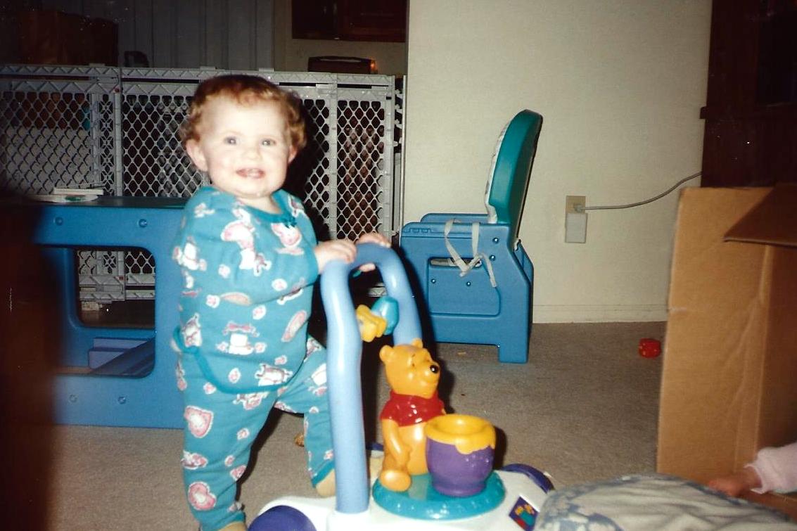 The above picture is probably the iconic family picture from Christmas 1997. Here Carly isn’t quite a year, and sits so sweetly with the M&M candy cane held in her hands.