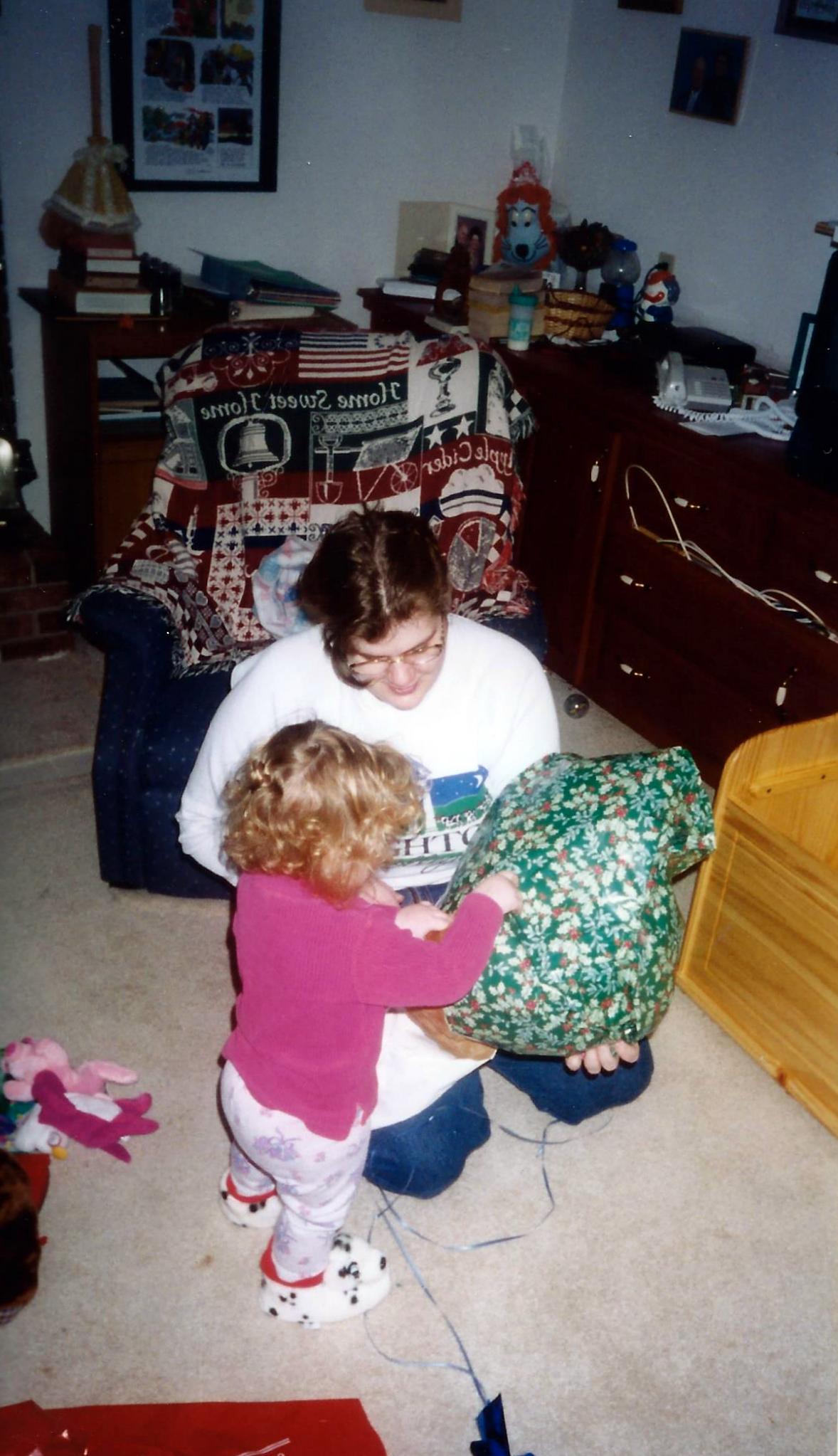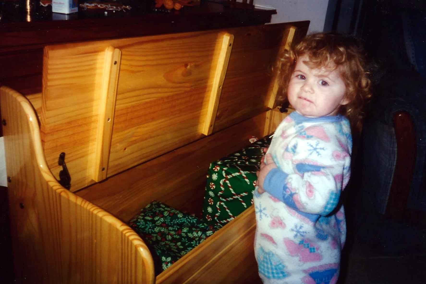 It was also the year we gave Carly the toy chest that she still has. We bought it unfinished and then I stained it for her, and stuffed it with her other presents to open.