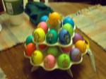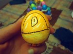 Here is a set of eggs colored and drawn by my daughter this year. The figures are Armless Bipedal Cycloptic Demons, or ABCDs. The ABCDs were created initially as part of an online project by the Talkhaus online gaming community for an event they titled A Super Mario Things (ASMT for short). Carly drew several of the characters from the ASMT, and created her own ABCDs based off the motif.
